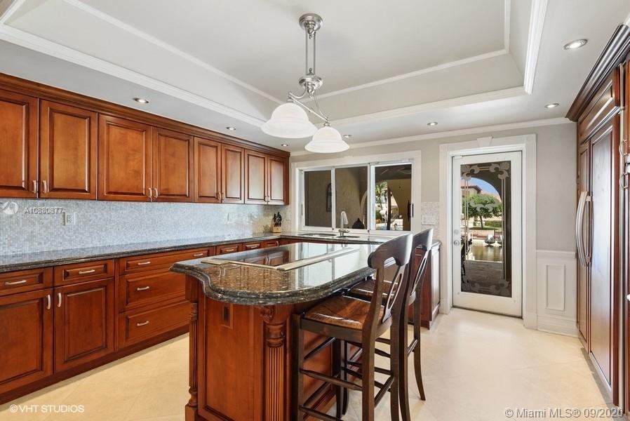 Elegantly appointed Gables by the Sea waterfront home w/ direct ocean access & no bridge to bay! Magnificent 5 bed/ 5.5 bath home is located in “Boater’s Paradise” sitting on an oversized lot w/ a 90 ft. linear dock & sparkling pool overlooking the waterway. Upon entry you are welcomed by water features, soaring volume ceilings, waterfront views, & a palatial living area wrapped in white marble. A true entertainer’s delight, features include a professional 2,500 bottle wine cellar, SONOS sound system, summer kitchen & sweeping covered verandas perfect for al fresco dining. Grand Master Bedroom en-suite w/ sitting room, walk-in closets, & private balcony will not disappoint! 3 BR upstairs/ 2 BR downstairs + den. Excellent waterfront value: total 6,949 SF! Guard gated & best public schools.