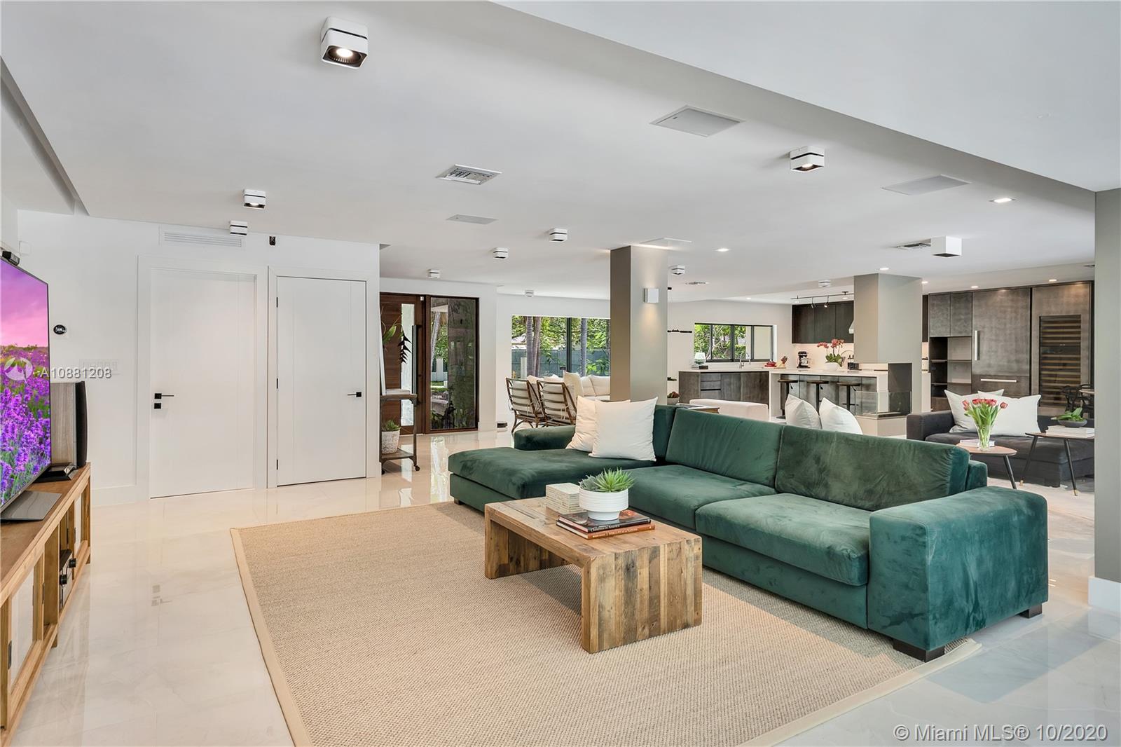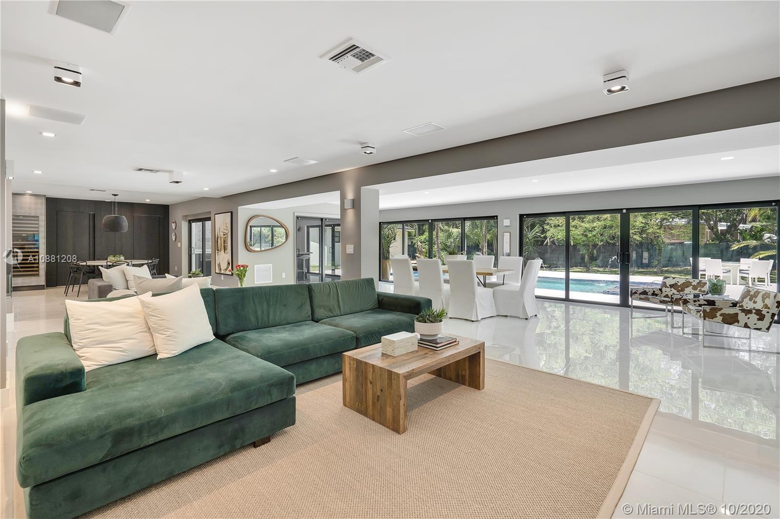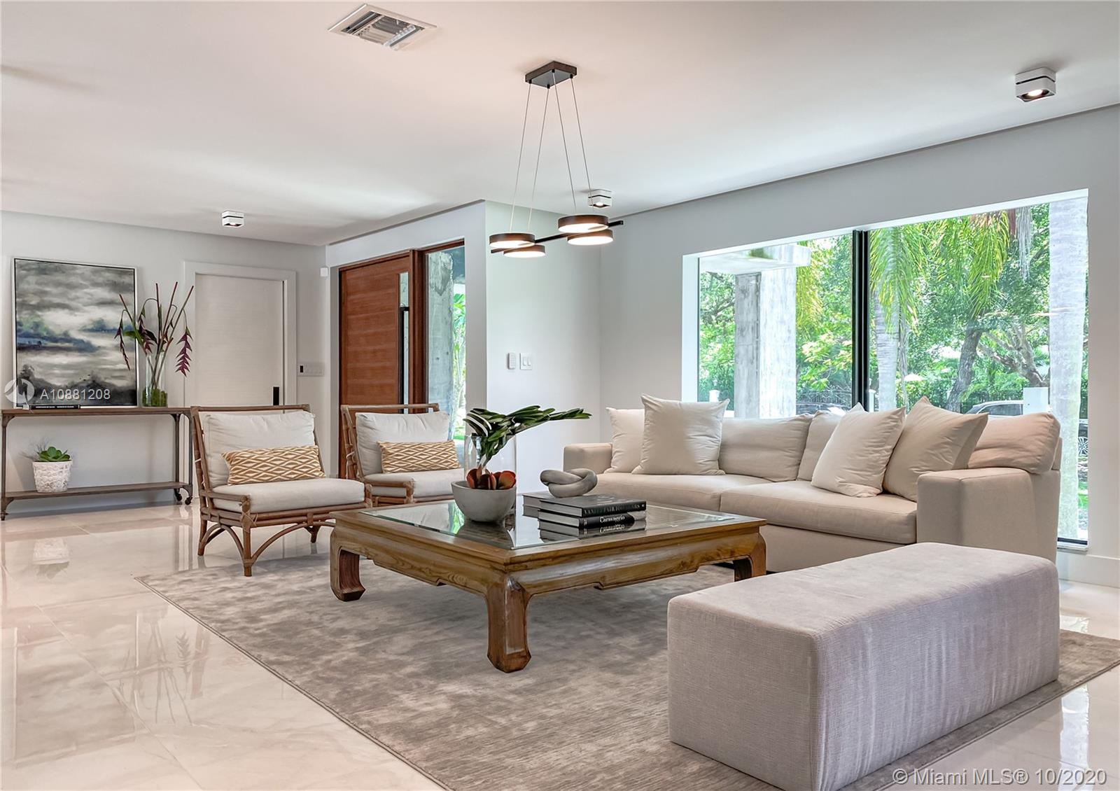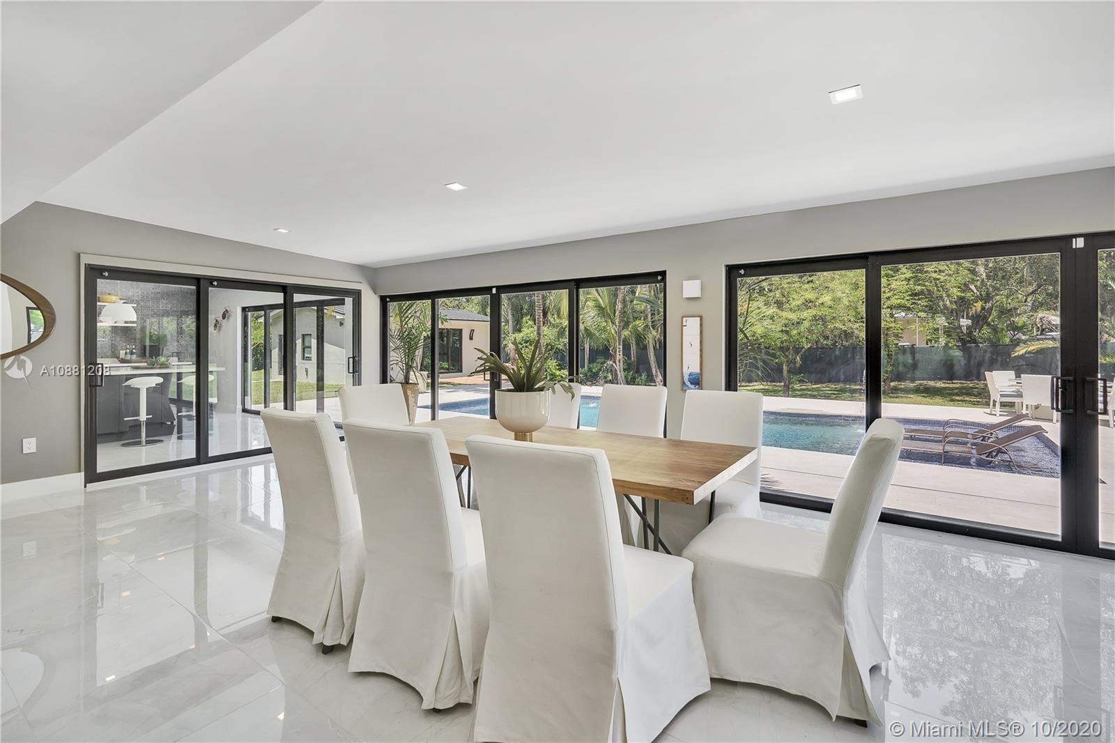 Fully remodeled home in Pinecrest. This residence offers a spacious and bright living area, a state-of-the-art gas-range Italkraft kitchen with Sub Zero, Wolf & Miele appliances as well as remodeled bathrooms with chromotherapy in the master shower. This expansive residence is located on an ample 38,769 SF Lot with a Pentair pool with UV sanitizer and a pond. Private 1be/1ba guest-house with a full kitchen. Other upgrades of this battery ready home include: a full summer kitchen under AC, solar panels, a 3-car garage, Porcelanosa-tile floors, LED lighting throughout, all CGI impact windows and doors, central vacuum, water filter with UV filter, SIW front pivot door, 4 Carrier A/C’s with nest controllers, new metal roof from 2018 and updated electrical and plumbing.