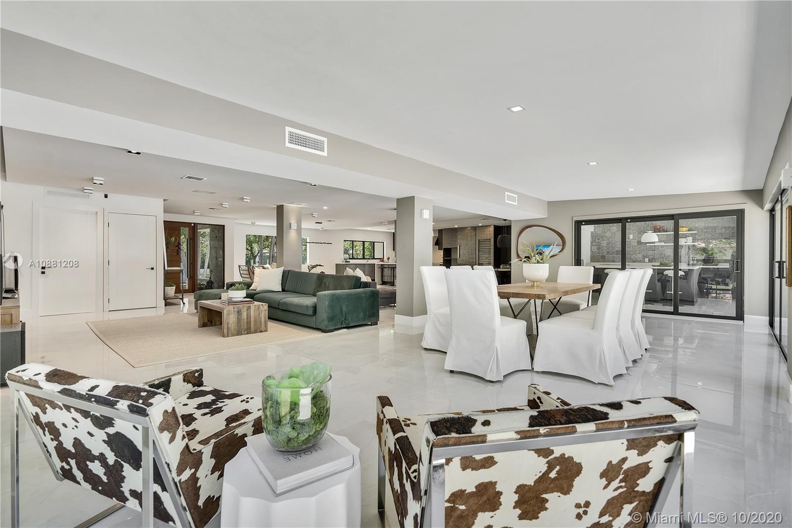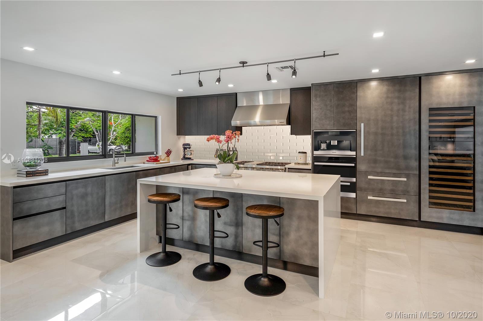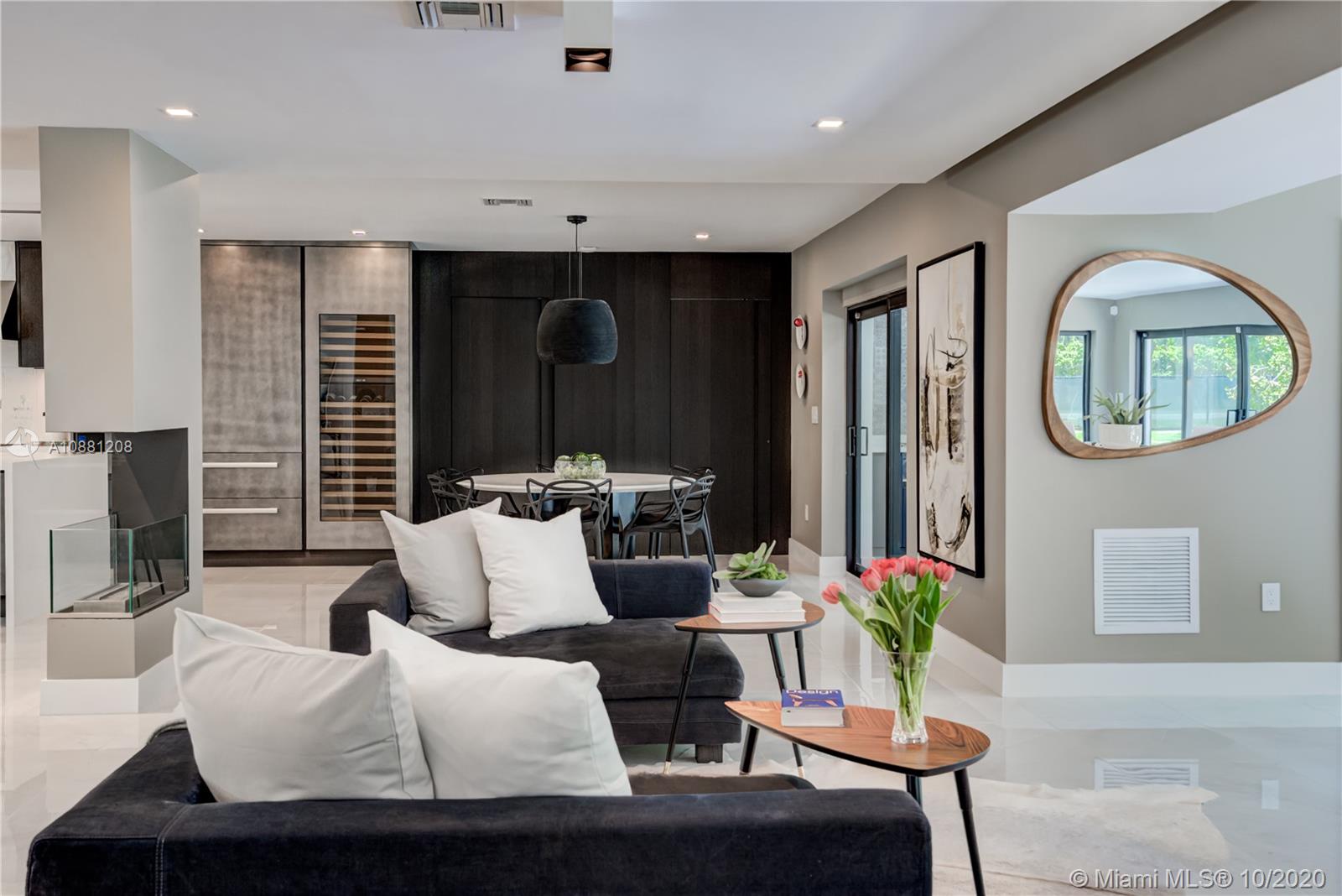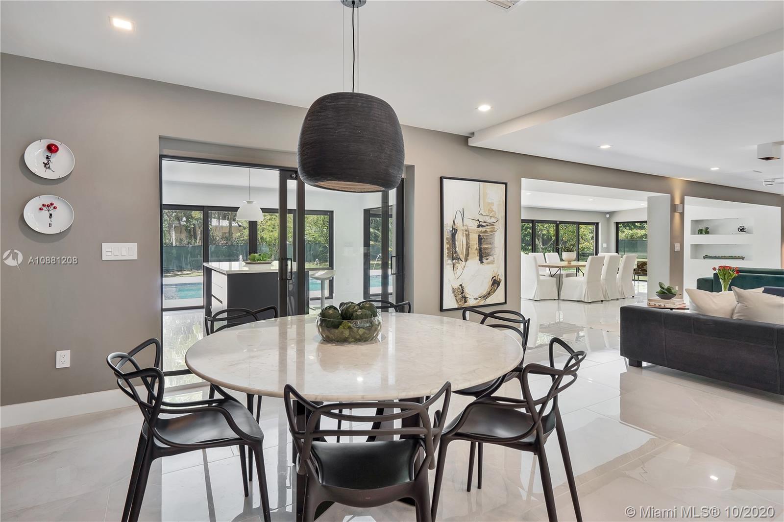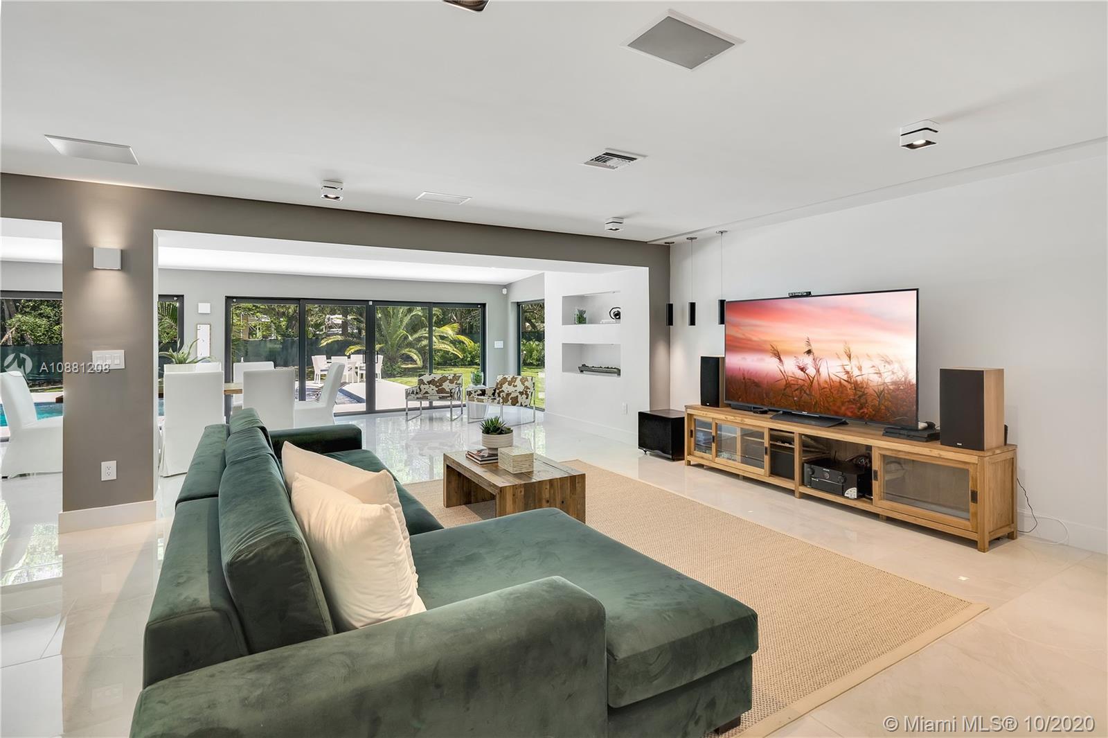Fully remodeled home in Pinecrest. This residence offers a spacious and bright living area, a state-of-the-art gas-range Italkraft kitchen with Sub Zero, Wolf & Miele appliances as well as remodeled bathrooms with chromotherapy in the master shower. This expansive residence is located on an ample 38,769 SF Lot with a Pentair pool with UV sanitizer and a pond. Private 1be/1ba guest-house with a full kitchen. Other upgrades of this battery ready home include: a full summer kitchen under AC, solar panels, a 3-car garage, Porcelanosa-tile floors, LED lighting throughout, all CGI impact windows and doors, central vacuum, water filter with UV filter, SIW front pivot door, 4 Carrier A/C’s with nest controllers, new metal roof from 2018 and updated electrical and plumbing.