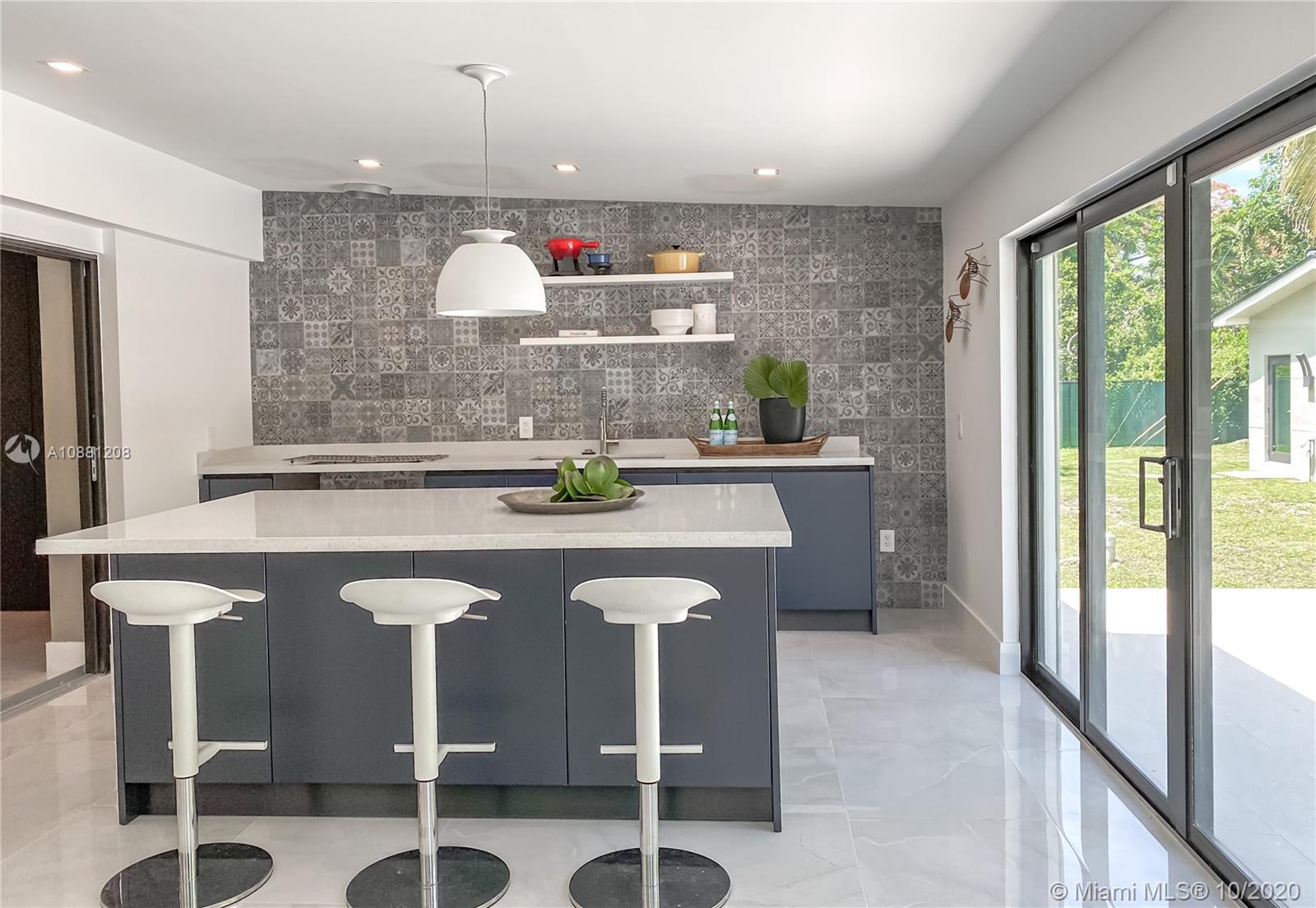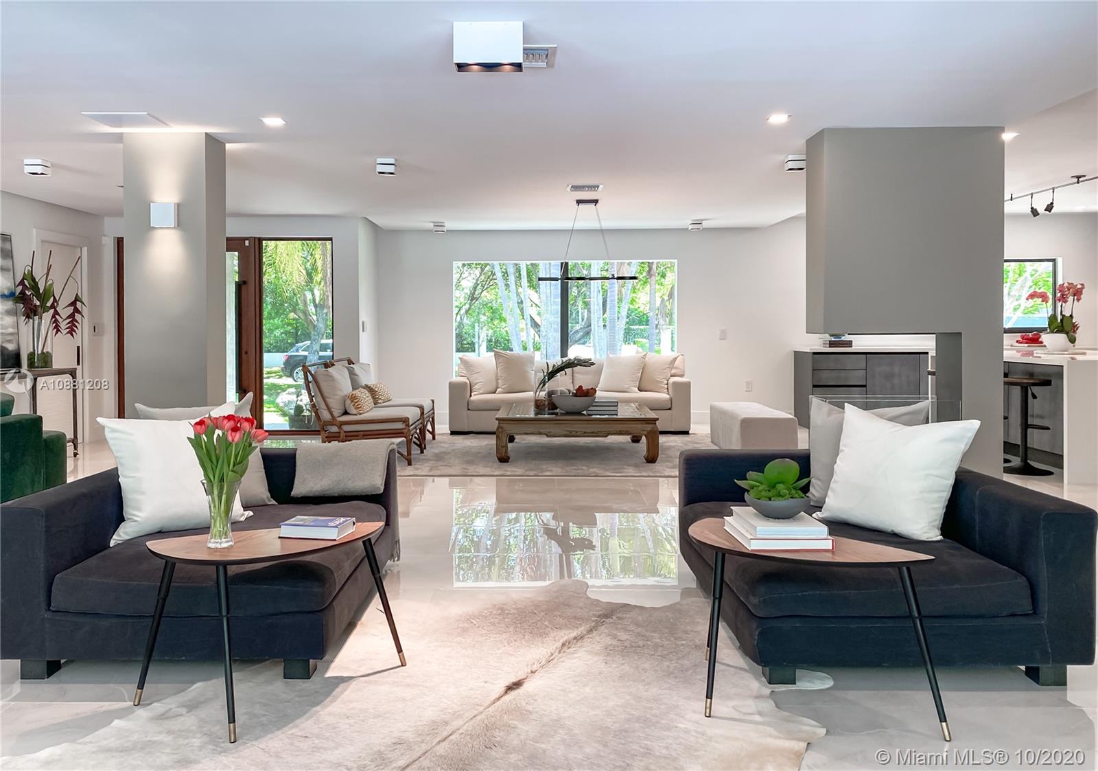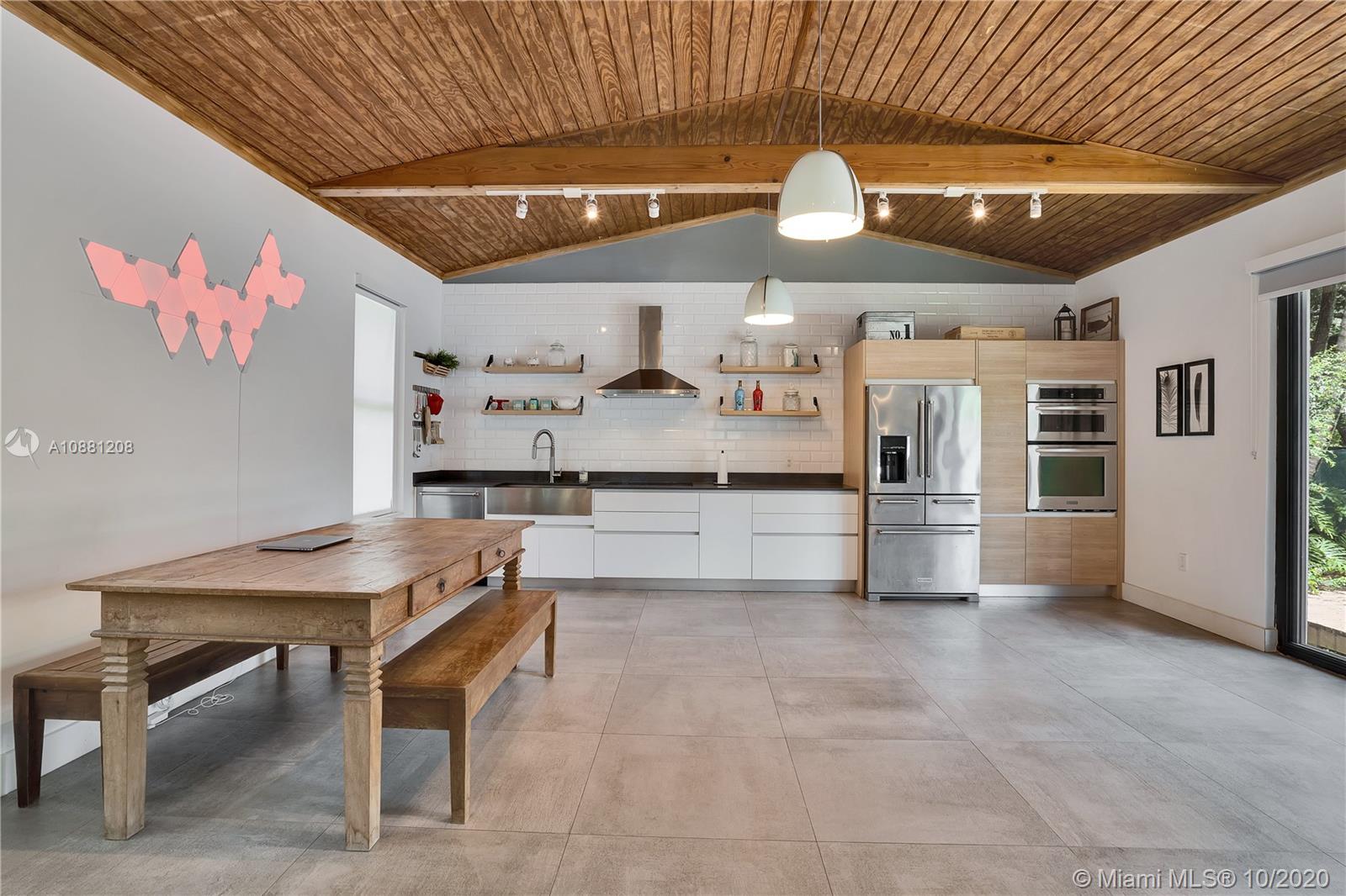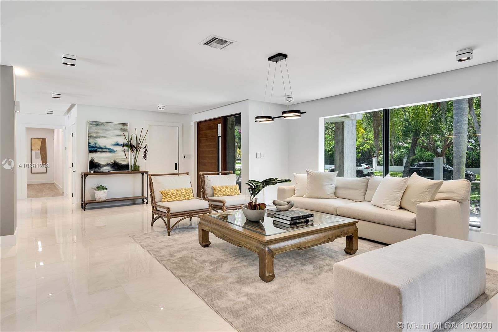 Fully remodeled home in Pinecrest. This residence offers a spacious and bright living area, a state-of-the-art gas-range Italkraft kitchen with Sub Zero, Wolf & Miele appliances as well as remodeled bathrooms with chromotherapy in the master shower. This expansive residence is located on an ample 38,769 SF Lot with a Pentair pool with UV sanitizer and a pond. Private 1be/1ba guest-house with a full kitchen. Other upgrades of this battery ready home include: a full summer kitchen under AC, solar panels, a 3-car garage, Porcelanosa-tile floors, LED lighting throughout, all CGI impact windows and doors, central vacuum, water filter with UV filter, SIW front pivot door, 4 Carrier A/C’s with nest controllers, new metal roof from 2018 and updated electrical and plumbing.