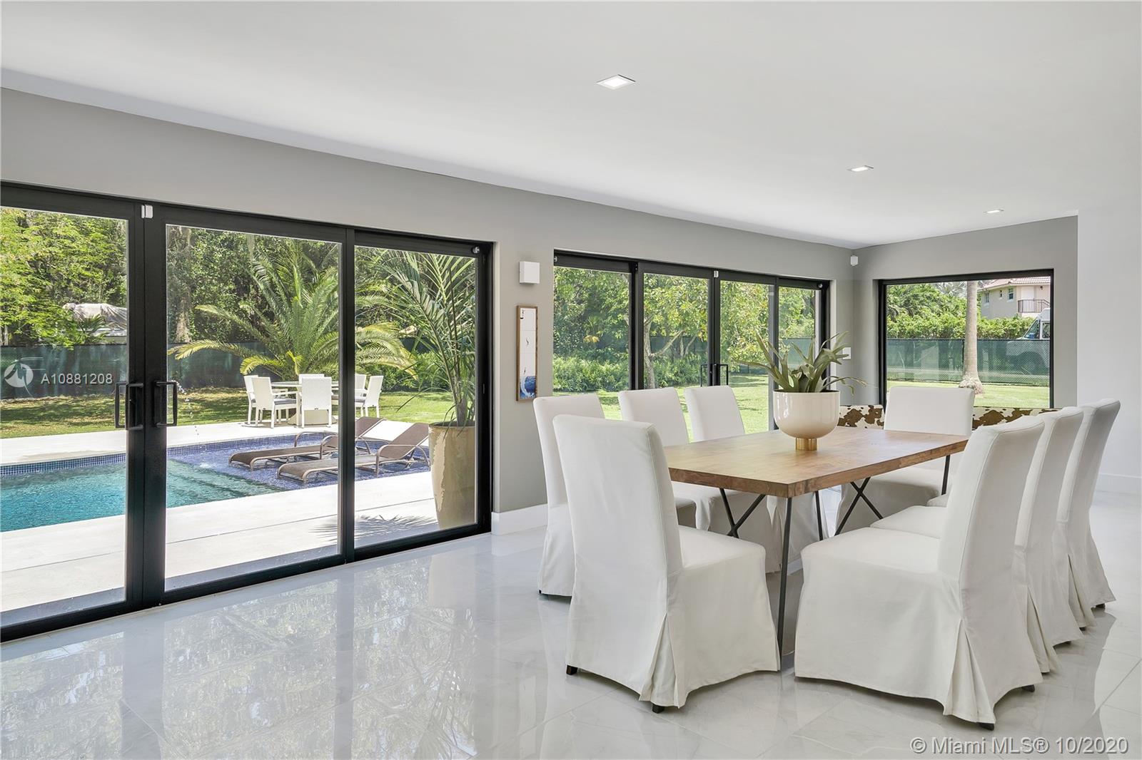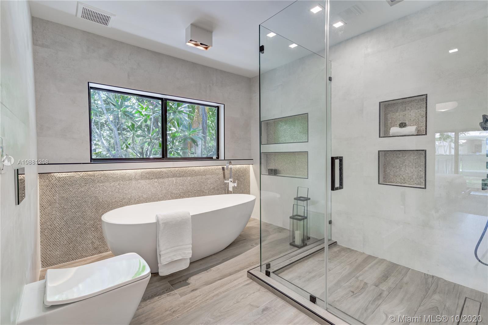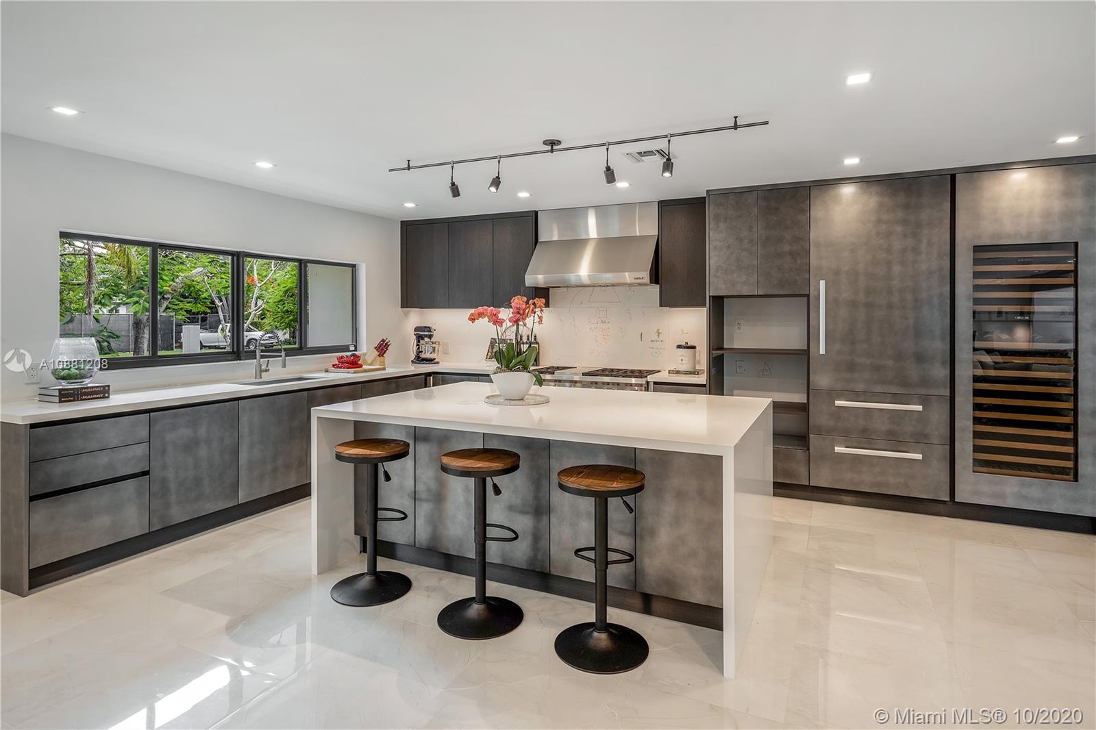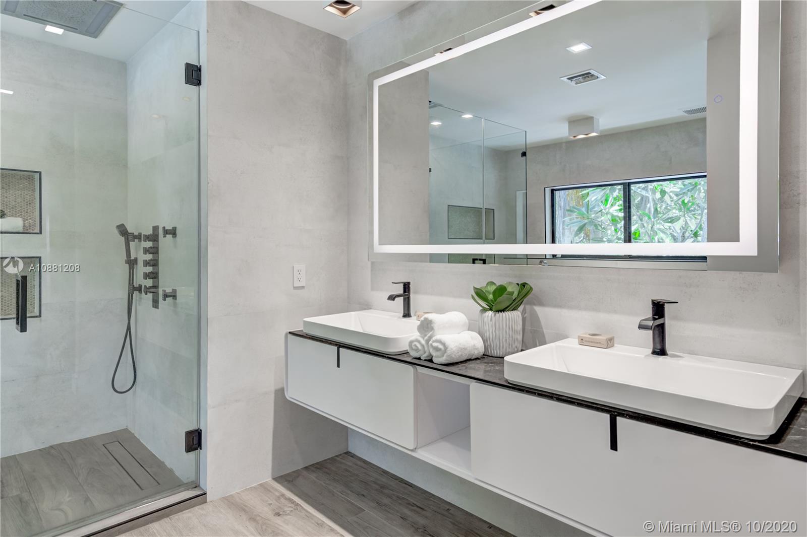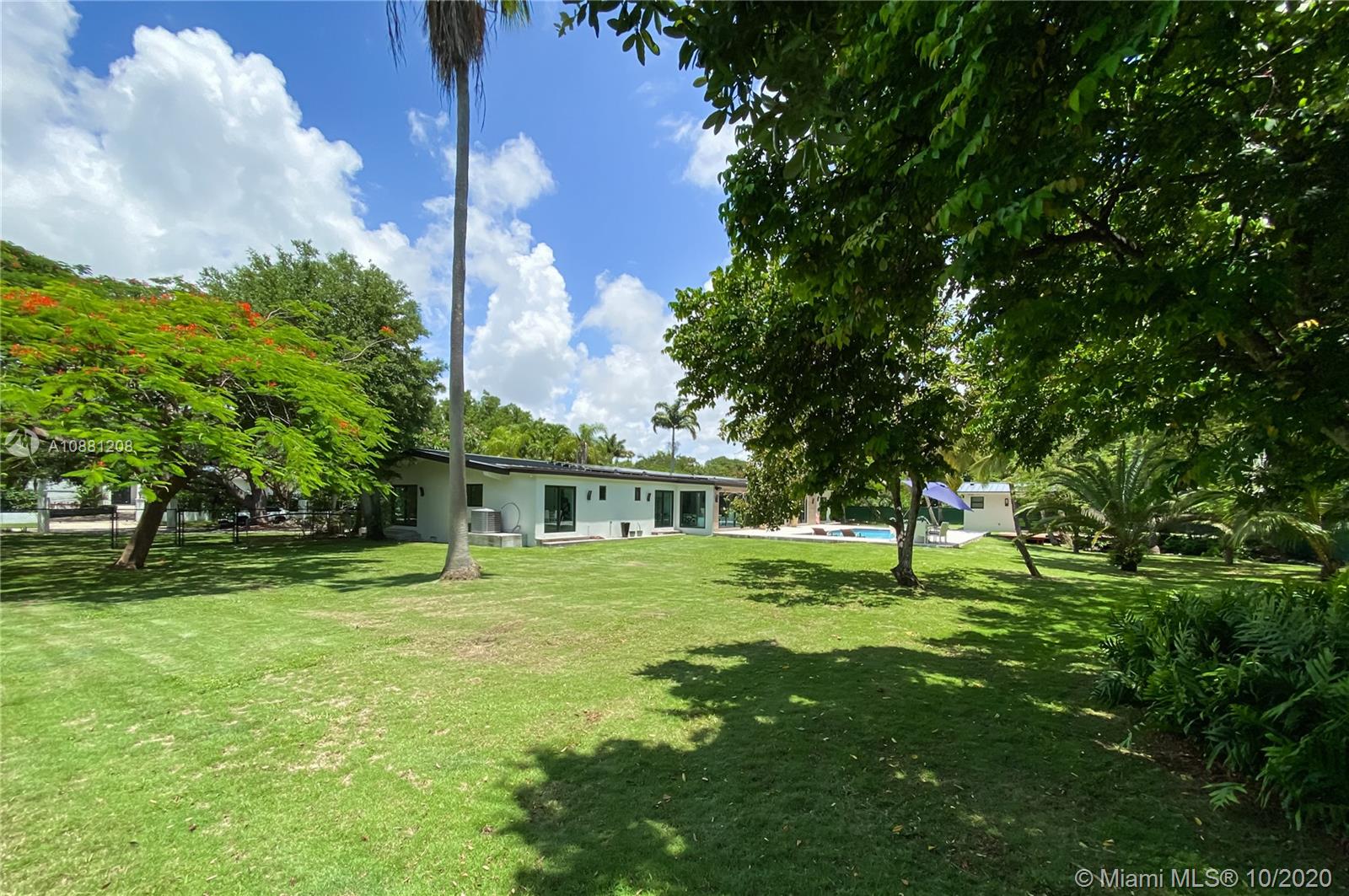 Fully remodeled home in Pinecrest. This residence offers a spacious and bright living area, a state-of-the-art gas-range Italkraft kitchen with Sub Zero, Wolf & Miele appliances as well as remodeled bathrooms with chromotherapy in the master shower. This expansive residence is located on an ample 38,769 SF Lot with a Pentair pool with UV sanitizer and a pond. Private 1be/1ba guest-house with a full kitchen. Other upgrades of this battery ready home include: a full summer kitchen under AC, solar panels, a 3-car garage, Porcelanosa-tile floors, LED lighting throughout, all CGI impact windows and doors, central vacuum, water filter with UV filter, SIW front pivot door, 4 Carrier A/C’s with nest controllers, new metal roof from 2018 and updated electrical and plumbing.