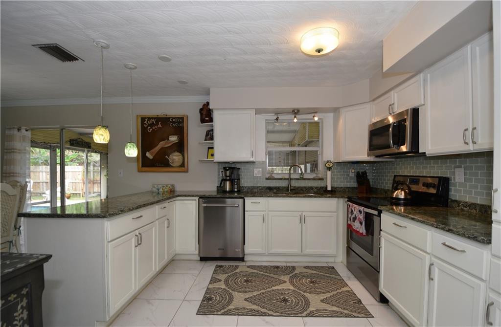 A Must See...Tons of Natural Light Pours into the Great Open Floor Plan Perfect for Entertaining, Updated Kitchen with Glass Tile and Granite, Stainless Steel Appliances, Beautiful Landscaped Open Saltwater Pool Area with Tumble Stone Deck!! New Pool Pump, , Newer Electric Panel, All Impact Windows Except for French Door. Crown Molding, Ceiling Fans, Stained Glass and Pendant Light Fixtures. Screened Porch with Roll Down Shutters, Well for Sprinkler System and Fully Fenced Yard for Fido!