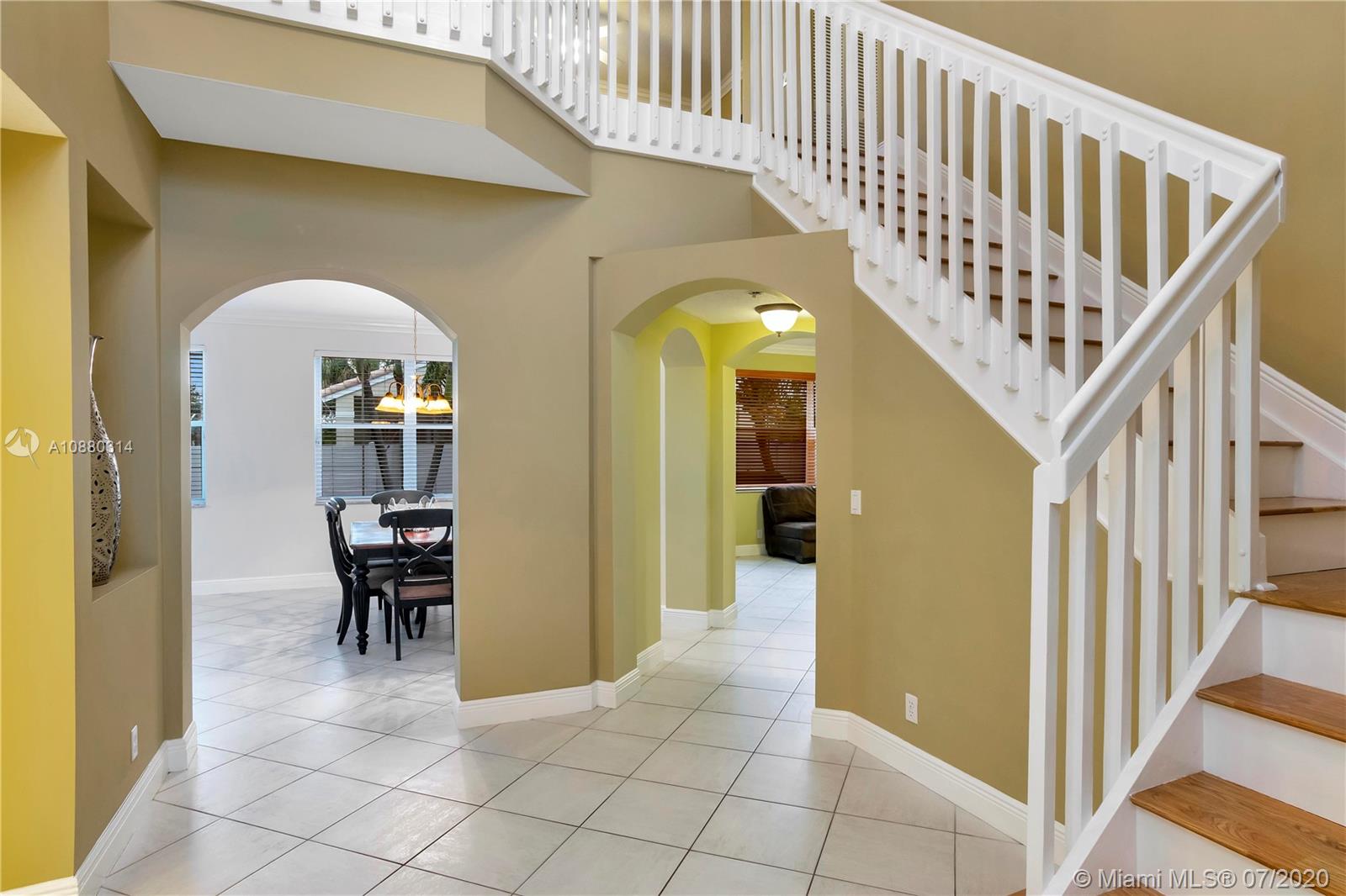 Spectacular corner lot,4/3(plus loft),3 car garage,pool home in manned gated community of Pembroke Shores in West Pembroke Pines.Remodeled kitchen:wood cabinetry,granite counter tops, spacious pantry, kitchen island, breakfast bar, & separate breakfast room.Upgraded bathrooms,two walk-in closets in master, walk in closet in the third bedroom.Large upstairs loft that can easily be converted into a 5th bedroom.Additional study nook in hallway.One bedroom w/full bathroom downstairs.Fully fenced tropical backyard,lagoon shape pool,rock waterfall feature,retractable awning w/multiple seating areas for entertaining.New Heater,fridge & newer AC.Zoned for grade A schools.Close to shopping,dinning,hospitals,& entertainment.Near hwy for easy commutes everywhere.