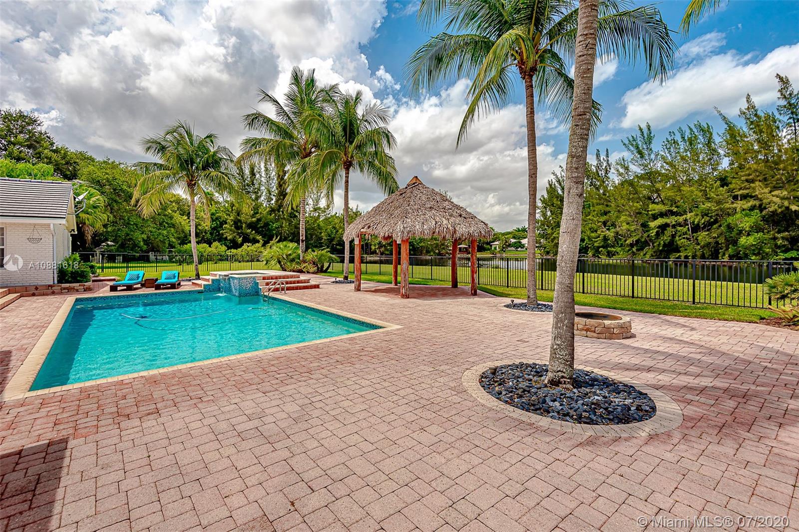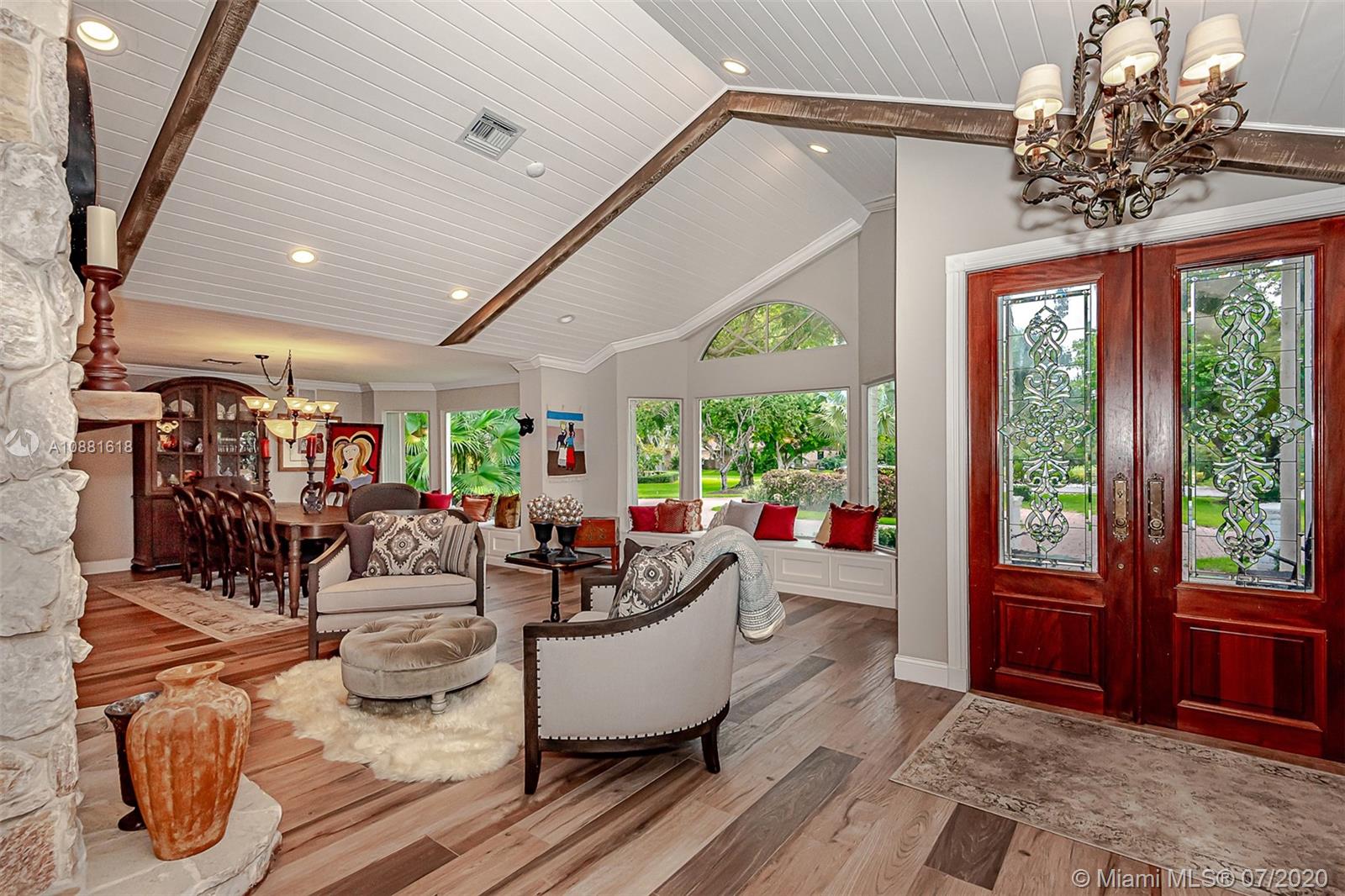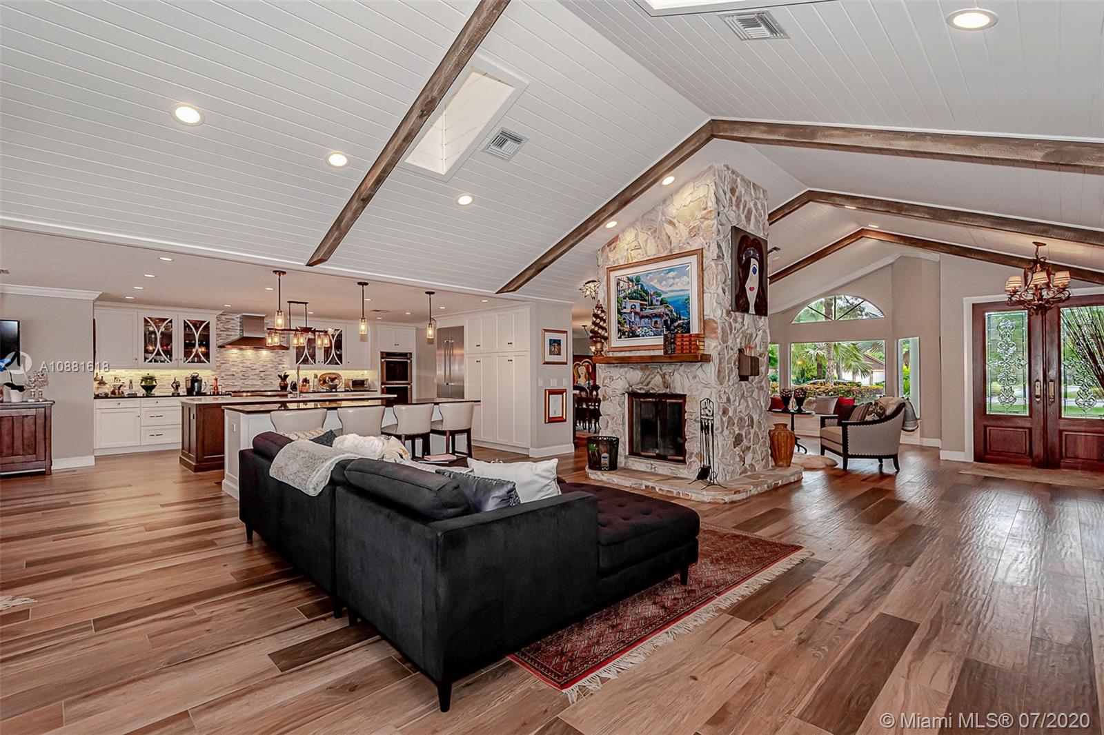 Incredible Estate on waterfront acreage and a private cul-de-sac in coveted Whispering Woods. The Absolute Best of Coral Springs. Exceptionally renovated with new plank flooring, superb professional grade Kitchen, luxurious Master Bath and more than 5,000 square feet of living and entertainment space. Massive Play Room perfect for a large family, private home fitness center, or in-law suite. Separate dining and family rooms, large bedrooms. Vaulted ceilings with wood beam design points and a central 2 sided fireplace offers both architectural touches and a bright, airy feel to this home. Impact windows and doors, beautiful new concrete roof. Stunning pool with tiki entertainment space on one of the largest lots in the community. Great curb appeal! Strong value and Easy to Show.