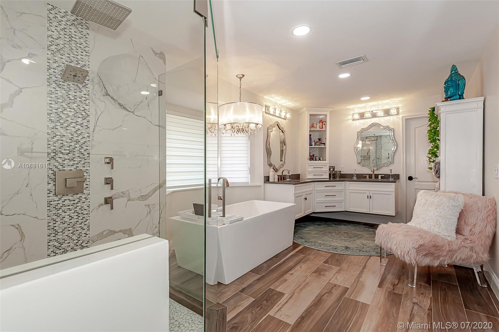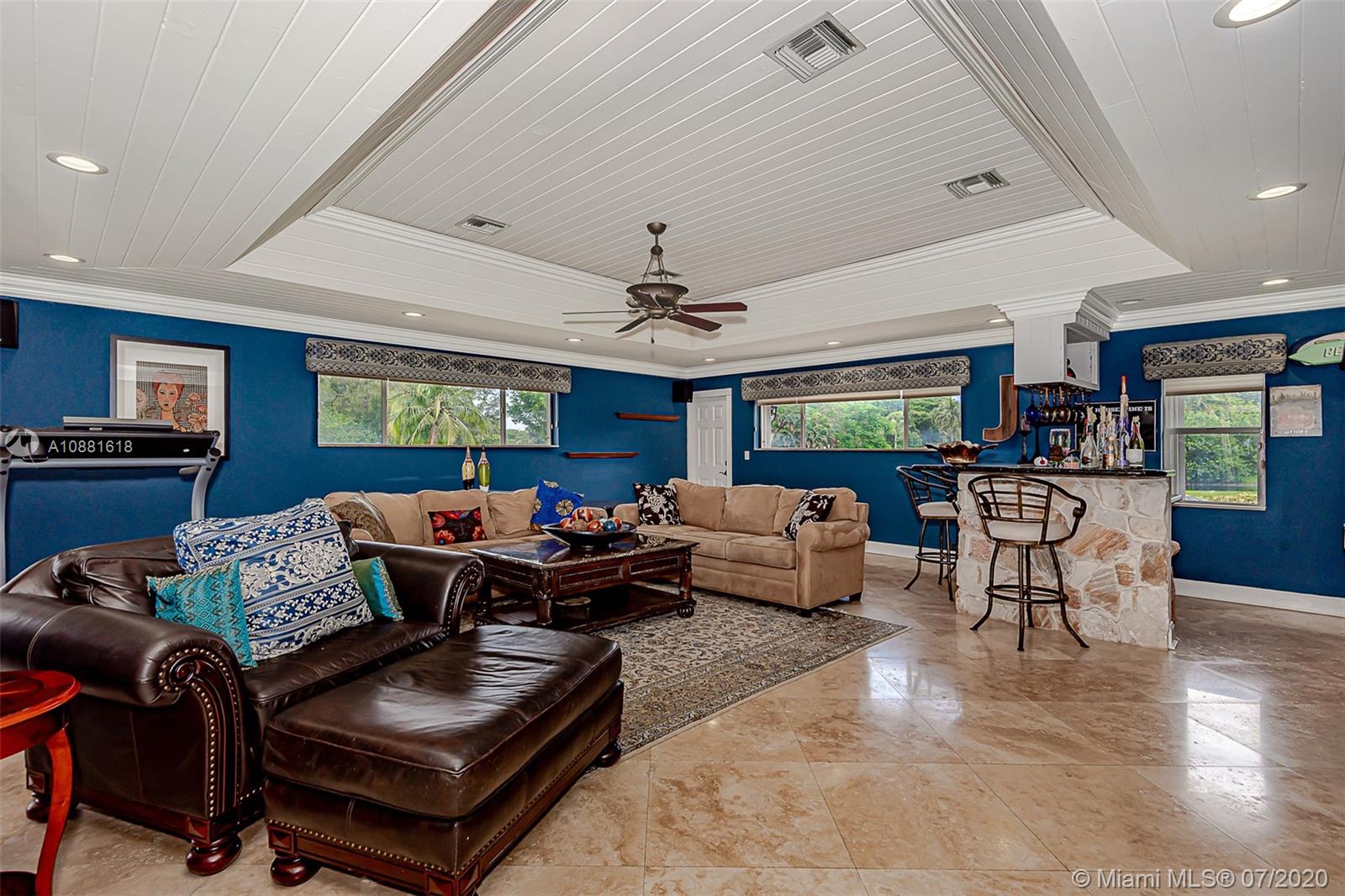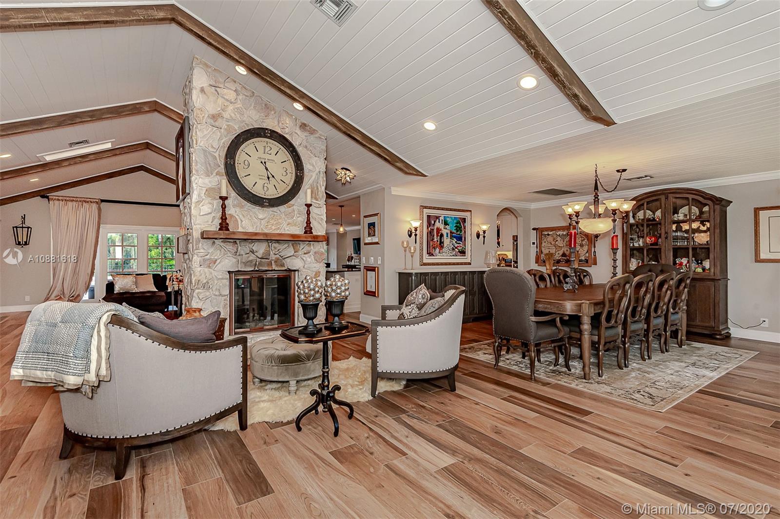 Incredible Estate on waterfront acreage and a private cul-de-sac in coveted Whispering Woods. The Absolute Best of Coral Springs. Exceptionally renovated with new plank flooring, superb professional grade Kitchen, luxurious Master Bath and more than 5,000 square feet of living and entertainment space. Massive Play Room perfect for a large family, private home fitness center, or in-law suite. Separate dining and family rooms, large bedrooms. Vaulted ceilings with wood beam design points and a central 2 sided fireplace offers both architectural touches and a bright, airy feel to this home. Impact windows and doors, beautiful new concrete roof. Stunning pool with tiki entertainment space on one of the largest lots in the community. Great curb appeal! Strong value and Easy to Show.