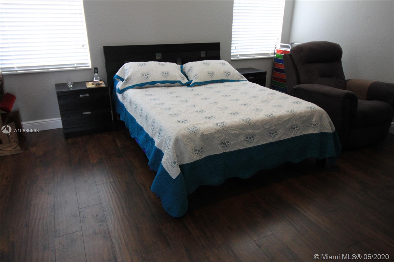 Beautiful 4/2.5 home located in a cul de sac. Open concept floor plan makes for entertaining and an inclusive family area and kitchen with granite counter tops and stainless steel appliances.Tile and laminate through out The den features a tiled wall .Master suite with 2 Custom Build-In walk-in closets.Master Bathroom just re- done with walking Shower and separate Roman tub with Temperature sensor that auto changes water color when water temperature changes Nice Patio terrace. Sprinkler with Purifying System.Tiled garage, Outside garage remote control. Impact Hurricane Windows on first floor, Accordion shutters on the second floor and high impact French doors. Brand new W/D. Gated community with pool, tennis court, basketball court, clubhouse and gym.Security video recording on premise.