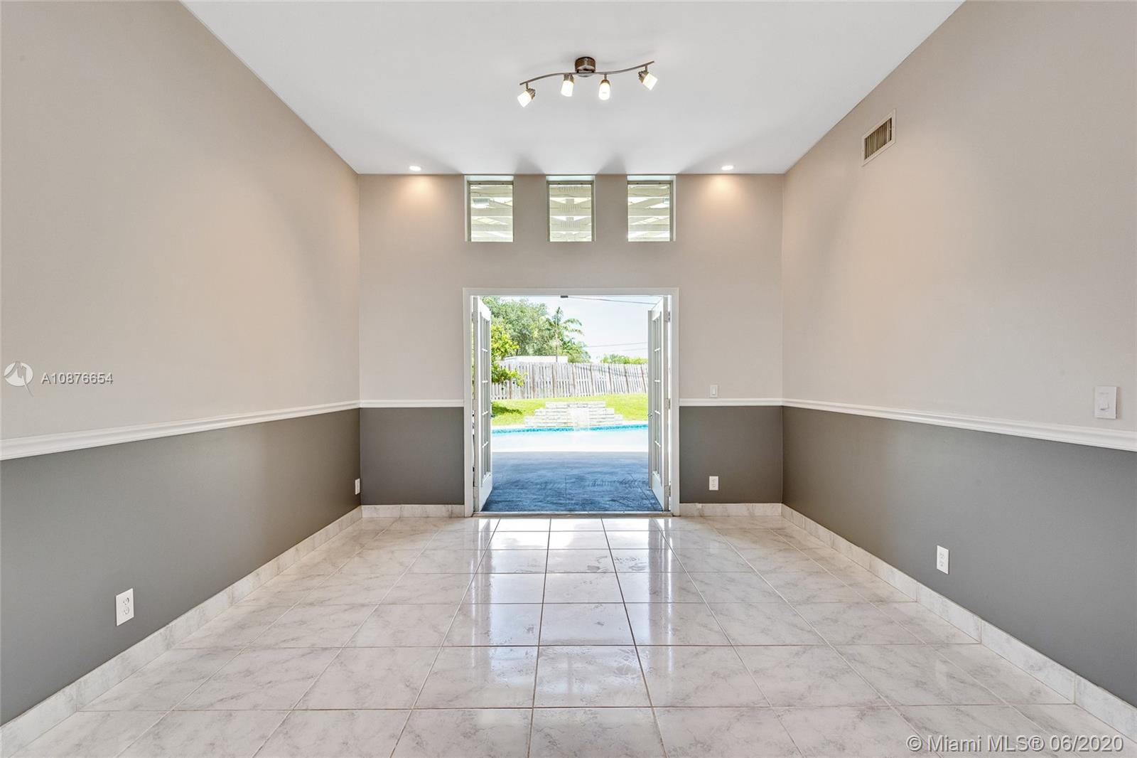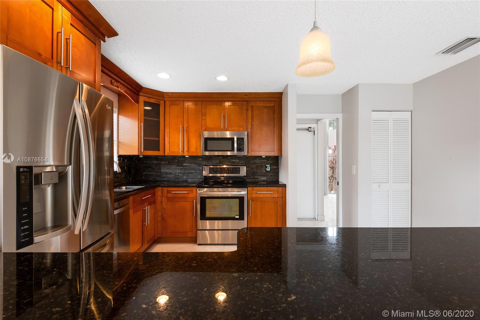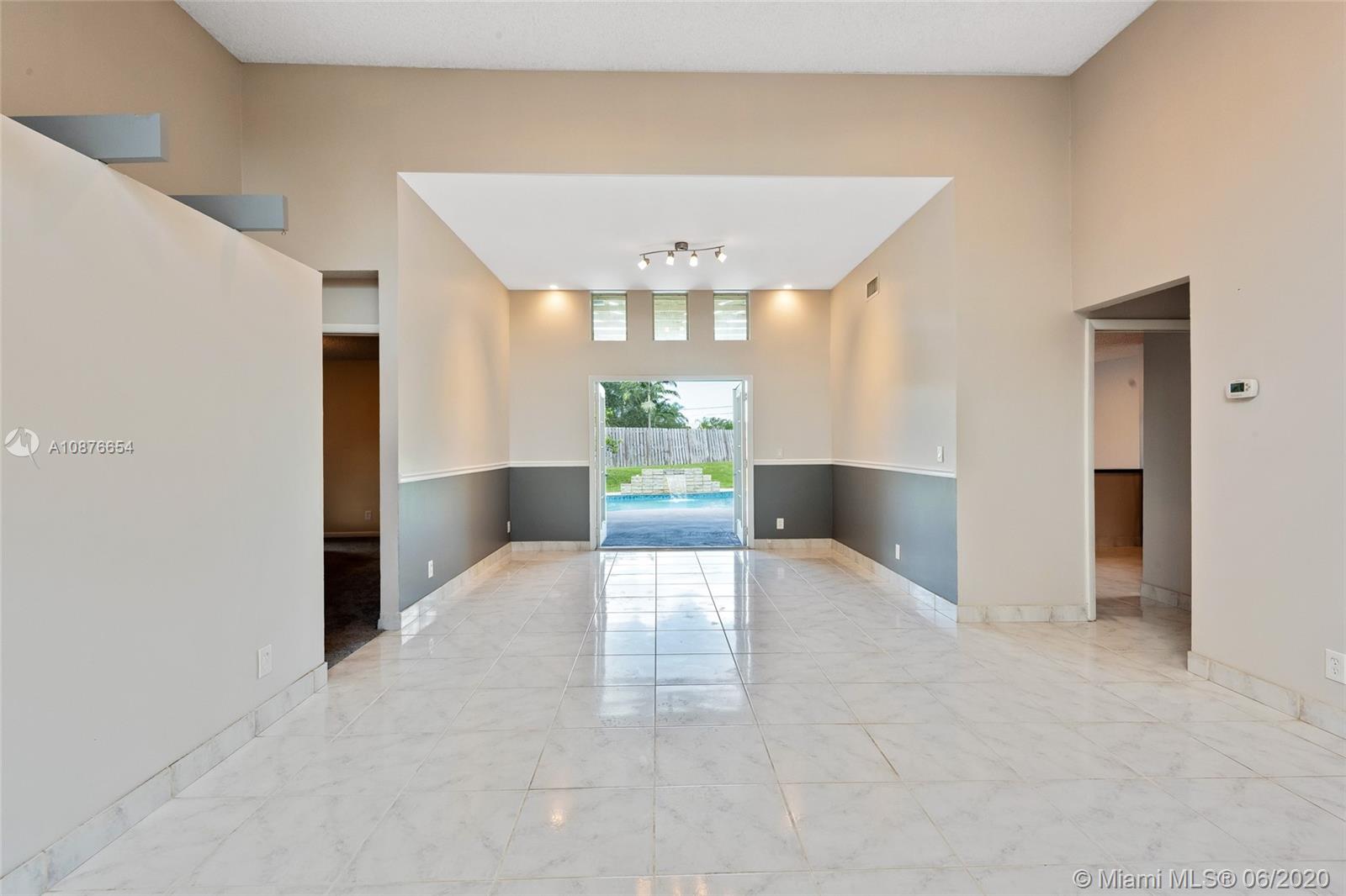 Lovely updated home on one of the largest lots in Springtree Lakes, 10000+sf of fully fenced yard + fruit trees. Pretty shaped salt water pool with cascading fountain. Covered patio with built in BBQ area. Storage shed on side. Interior living areas have been freshly painted. Updated kitchen with SS Appliances. Both baths updated – master has Jacuzzi tub & enhanced lighting. Bedrooms 2 & 3 can be opened up or kept as individual rooms. Spacious living areas with high ceilings & french doors. Home Warranty to buyer for one year at closing. Hurricane panels.