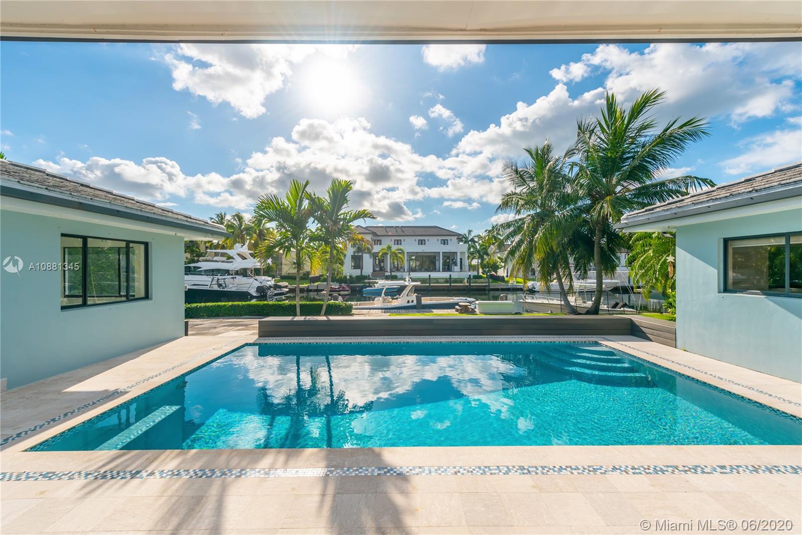 Experience life lived more beautifully in this waterfront setting nestled in the sophisticated gated enclave of Sunrise Harbour. Move right in or build new: 14,000 sq ft lot size w/ 100 ft water frontage, a mere 30-seconds to the bay with no bridges. This is a home filled with exceptional possibilities. Stunning water-facing pool area with sundeck & interior Florida room to take in the spectacular view. Updated finishes, kitchen & bath upgrades. For new-build, renderings & floorplans attached created by Coral Gables’ premier architect, Nelson de Leon of Locus Architecture in the tropical modern style. Idyllic South Florida boat-friendly lifestyle on the water in a beautiful, private community. Central location near top schools, Coconut Grove, parks, yacht clubs, minutes to downtown Miami.