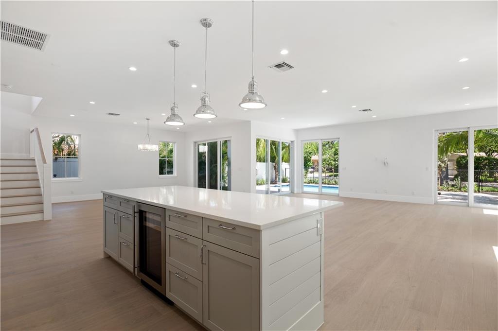 Remarkable new construction 4BR/4.5BA Key West contemporary. 3622 square feet of impeccably designed interiors. This open concept floor plan offers a ground level Den/Office, immense Living and Dining areas, a well-equipped Chef's kitchen and half bath. The second floor boasts a Master suite w private terrace plus three additional guest suites two of which share a balcony. All bedrooms have unbelievably proportioned closet space. The laundry provides a wall of additional cabinetry. The master bath has a double width spa shower with multi-heads and a separate soaking tub. Extensive hardwood cabinetry in Shaker design compliments both baths and kitchen. Premium brand stainless appliances in kitchen and laundry. Other features incl: a covered terrace with pool, a 2-bay garage with storage.
