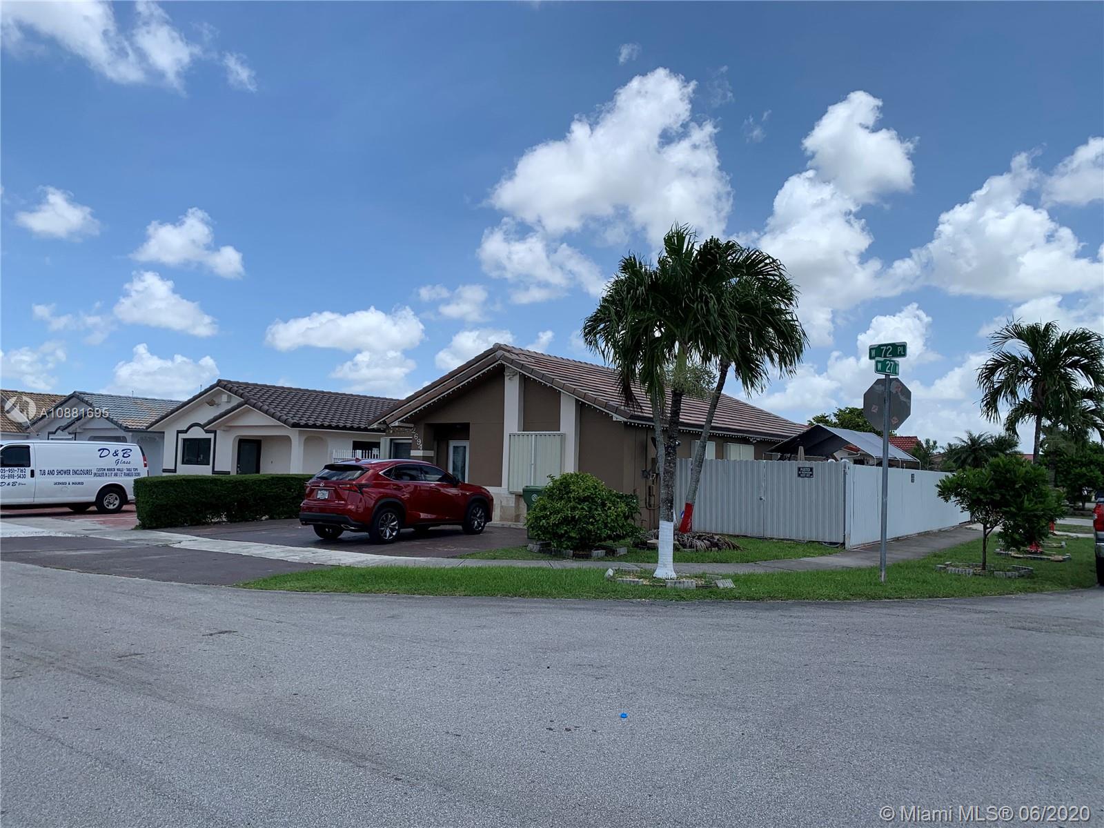 Gorgeous 3 bedroom 2 bath, 1,500 sf home located in Hialeah, FL. Corner lot with great features. A NEW ROOF, Beautiful porcelain tiled floors throughout, remolded bathrooms and kitchen with an floating island, spacious dining area and a large driveway. Private fully fenced in yard, excellent for outdoor entertaining and family enjoyment.