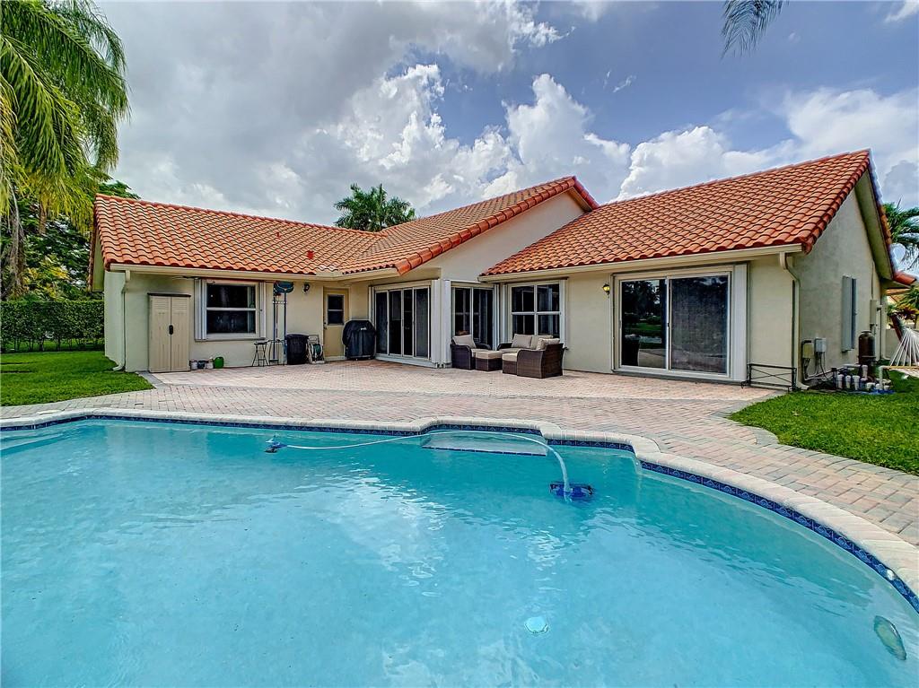 Beautiful one-story home - 4-bedrooms and 2-baths open floor plan home has natural light throughout and overlooks the pool and lake. 3 of the 4 bedrooms have walk-in closets. The spacious master bedroom has an en-suite bathroom featuring dual sinks with granite counters and a Roman Tub. The spacious kitchen has a cooking island open to the family room with a view to the large yard & pool & water with no neighbors behind. Lots of parking with the paver circular driveway. Inside laundry room with storage. Spring Valley Community Park offers a beautiful gathering space with tennis, community pool, tot lot & basketball. Close to shopping, dining, movie theater, schools, library, places of worship, hospitals. Voted happiest city 2016.
