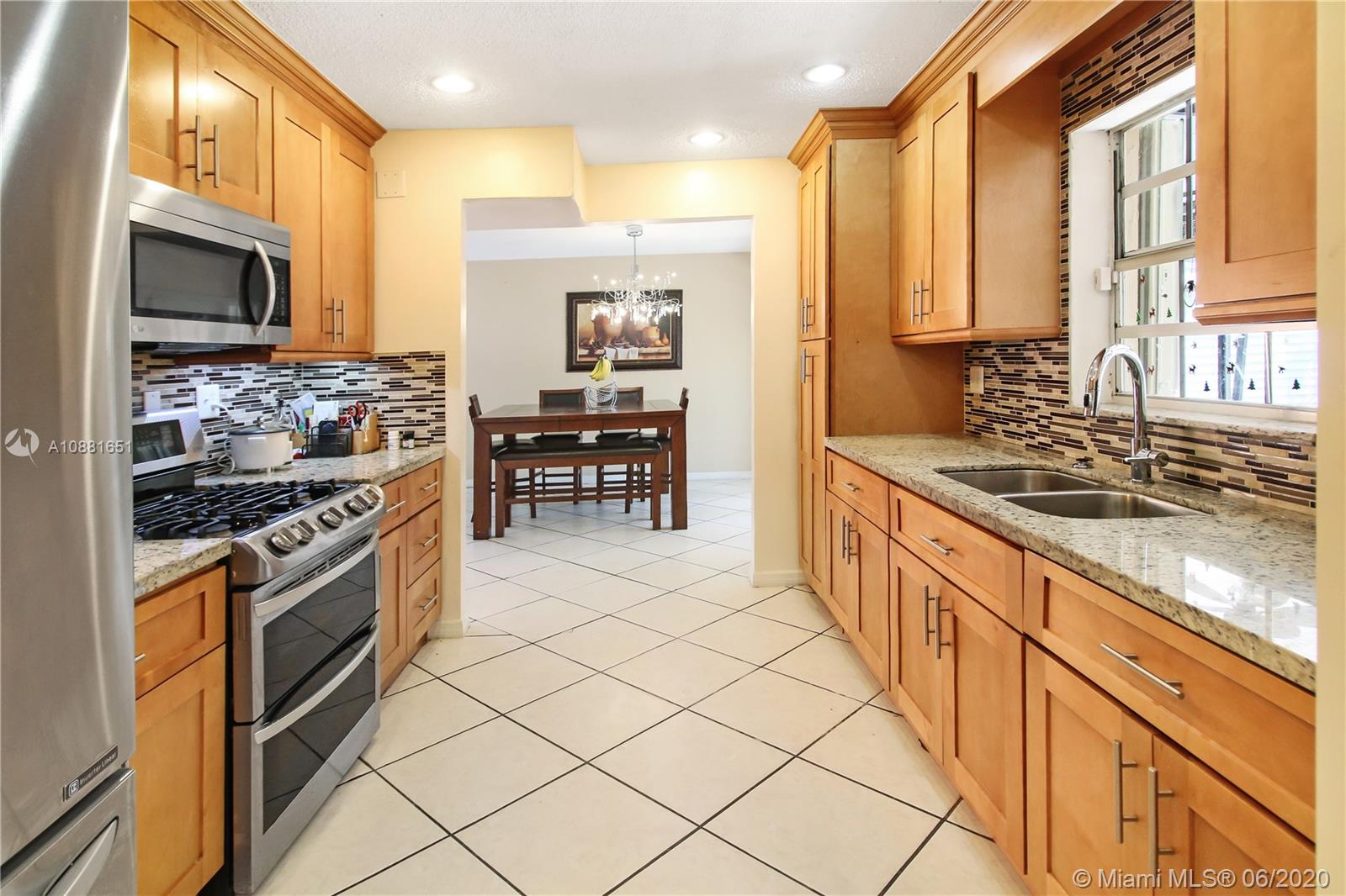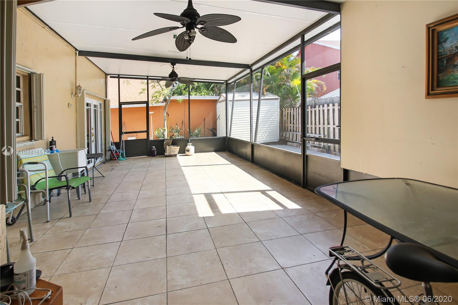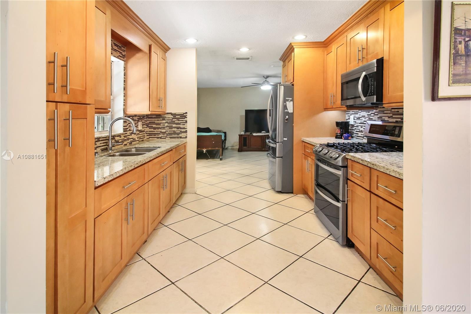 Welcome home! Beautiful front entrance leading into this 4 bedroom 2.5 bathroom single-family home with a stunning contemporary style remodeled chef's kitchen, equipped with gas range, stainless steel appliances and granite countertops. Spacious living room with high ceilings, tiled-floors and ample natural light throughout. Gorgeous hardwood flooring leading from staircase up to second floor. Large enclosed patio space with ceiling fans surrounded by fruit trees, perfect for enjoying the South Florida weather and entertaining guests. Large shed in the back for extra storage. Home has complete accordion shutters, impact doors and impact 2 car garage, ready for hurricane season. All plumbing is PVC. Conveniently located in Hialeah near plenty of shopping and dining. Definitely a must see!