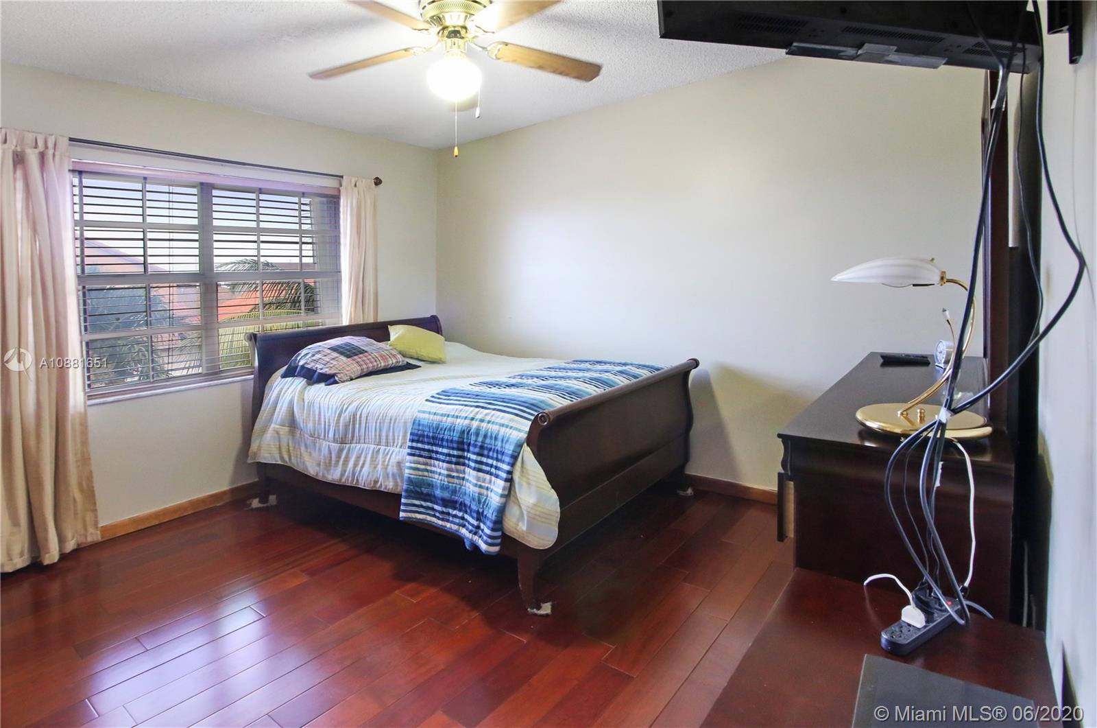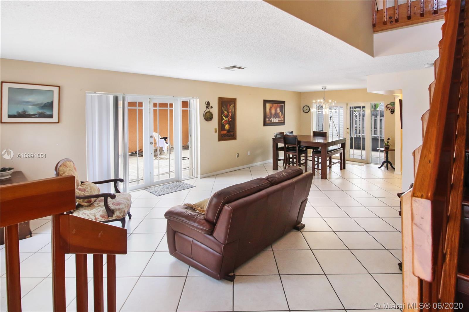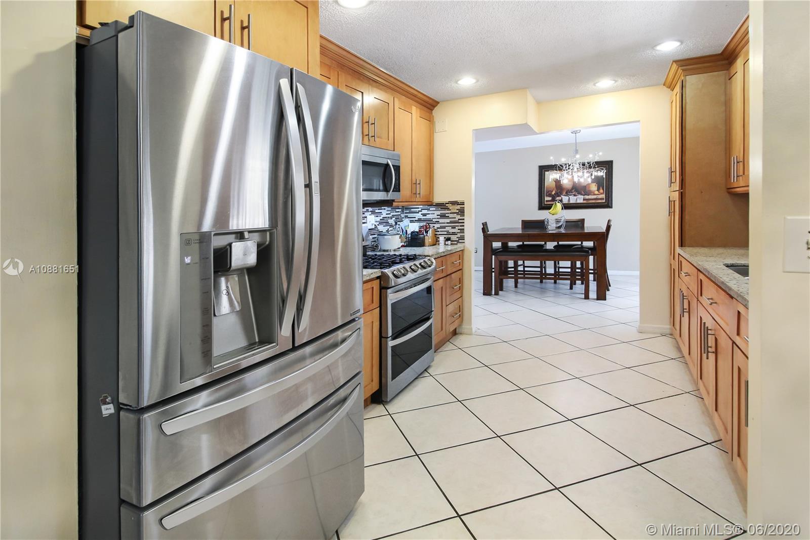 Welcome home! Beautiful front entrance leading into this 4 bedroom 2.5 bathroom single-family home with a stunning contemporary style remodeled chef's kitchen, equipped with gas range, stainless steel appliances and granite countertops. Spacious living room with high ceilings, tiled-floors and ample natural light throughout. Gorgeous hardwood flooring leading from staircase up to second floor. Large enclosed patio space with ceiling fans surrounded by fruit trees, perfect for enjoying the South Florida weather and entertaining guests. Large shed in the back for extra storage. Home has complete accordion shutters, impact doors and impact 2 car garage, ready for hurricane season. All plumbing is PVC. Conveniently located in Hialeah near plenty of shopping and dining. Definitely a must see!