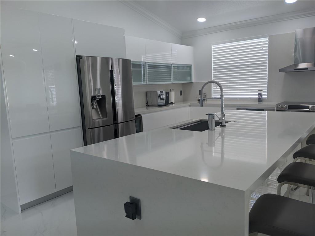 Modern & turn-key 4 bedroom / 3 bath single family home in Sunset lakes. This Albert model has completely redone kitchen & living areas with modern finishes & flooring. No spared detail. The kitchen is a dream. Features large quartz counter top island with high-end Samsung appliances including induction stove, wine chiller & more. LED lighting throughout. Smart systems and more. Private yard with no neighbors to the rear and easement for secluded feel. HOA includes alarm monitoring, basic cable & world class amenities including club house with updated gym, 8 tennis courts, tennis pro, basket ball, volleyball, zumba & more