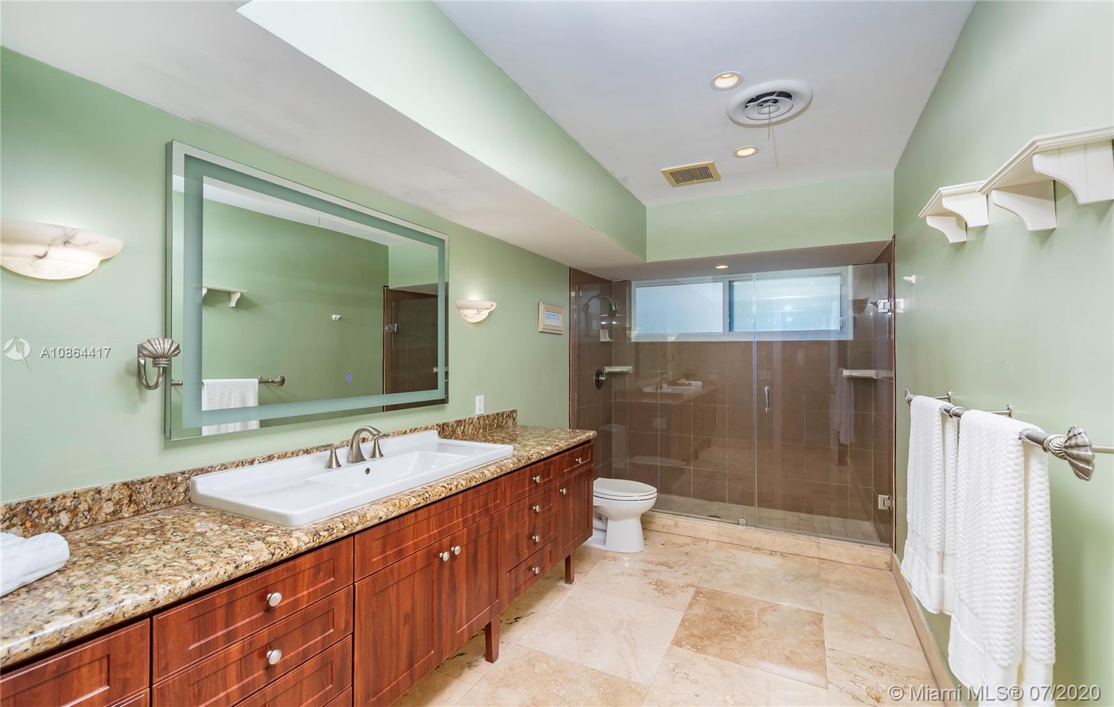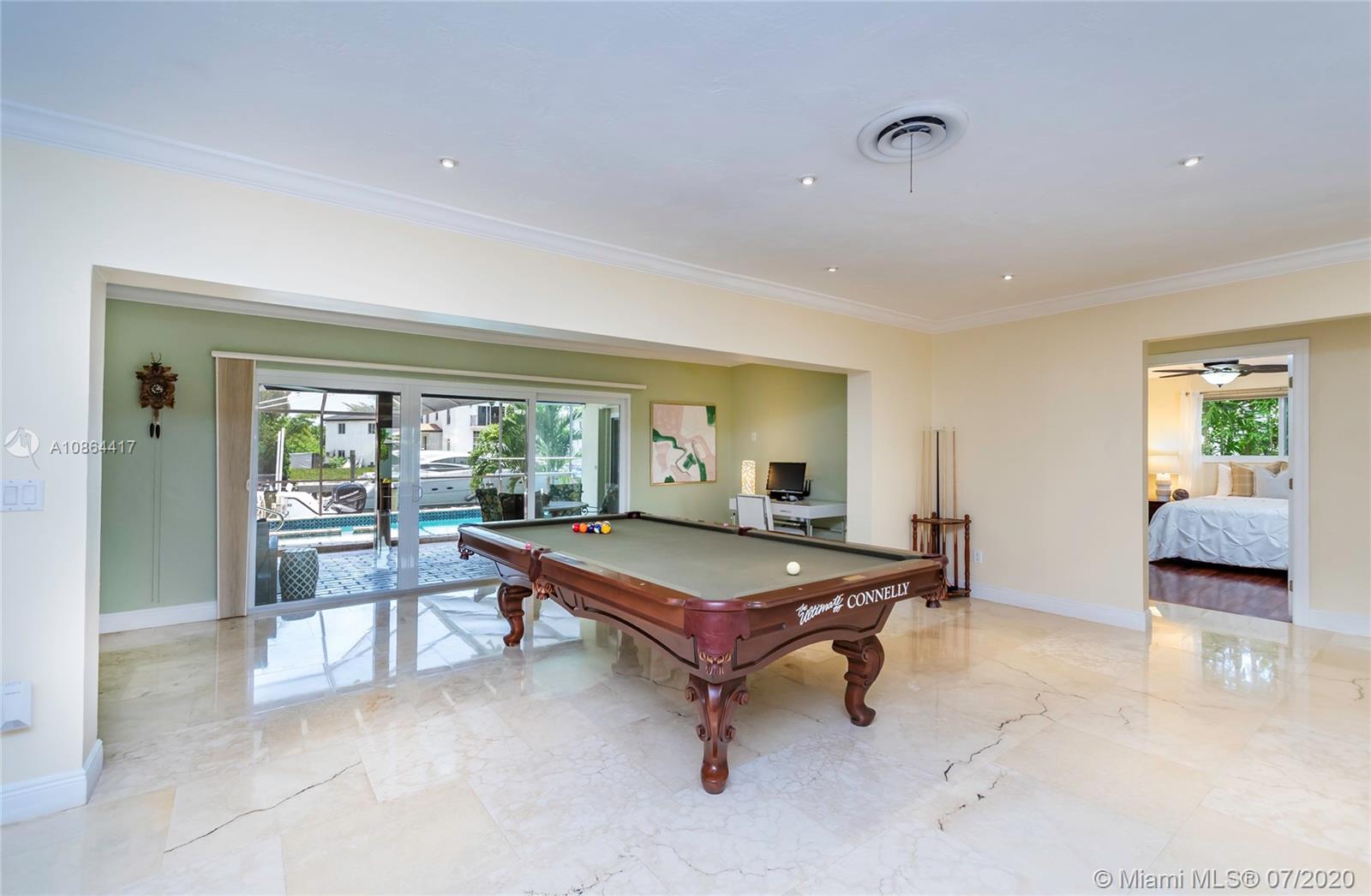 Dream Home in the Prestigious Sans Souci Gated Community. MOVE-IN READY! Enjoy the ultimate in waterfront living w/private dock & 75' w/f, no fixed bridges to ocean, 10 mins to Haulover Inlet. The master bedroom has custom walk-in closet, full bath, & private access to large covered patio & pool. This 3 bed/3 bath has high impact windows, doors, & garage door, polished travertine stone floors, hardwood floors, crown molding, granite countertops, central cooling & heating (installed 2017), wifi friendly appliances, jetted tub, built-in hot tub & heated pool. Natural light w/cellular shades, optional den office with canal views on quiet cul-de-sac street. Attached 2 car garage w/circle drive. Walking distance to tennis courts, LA Fitness, & Whole Foods. Perfect Location! Great Price!