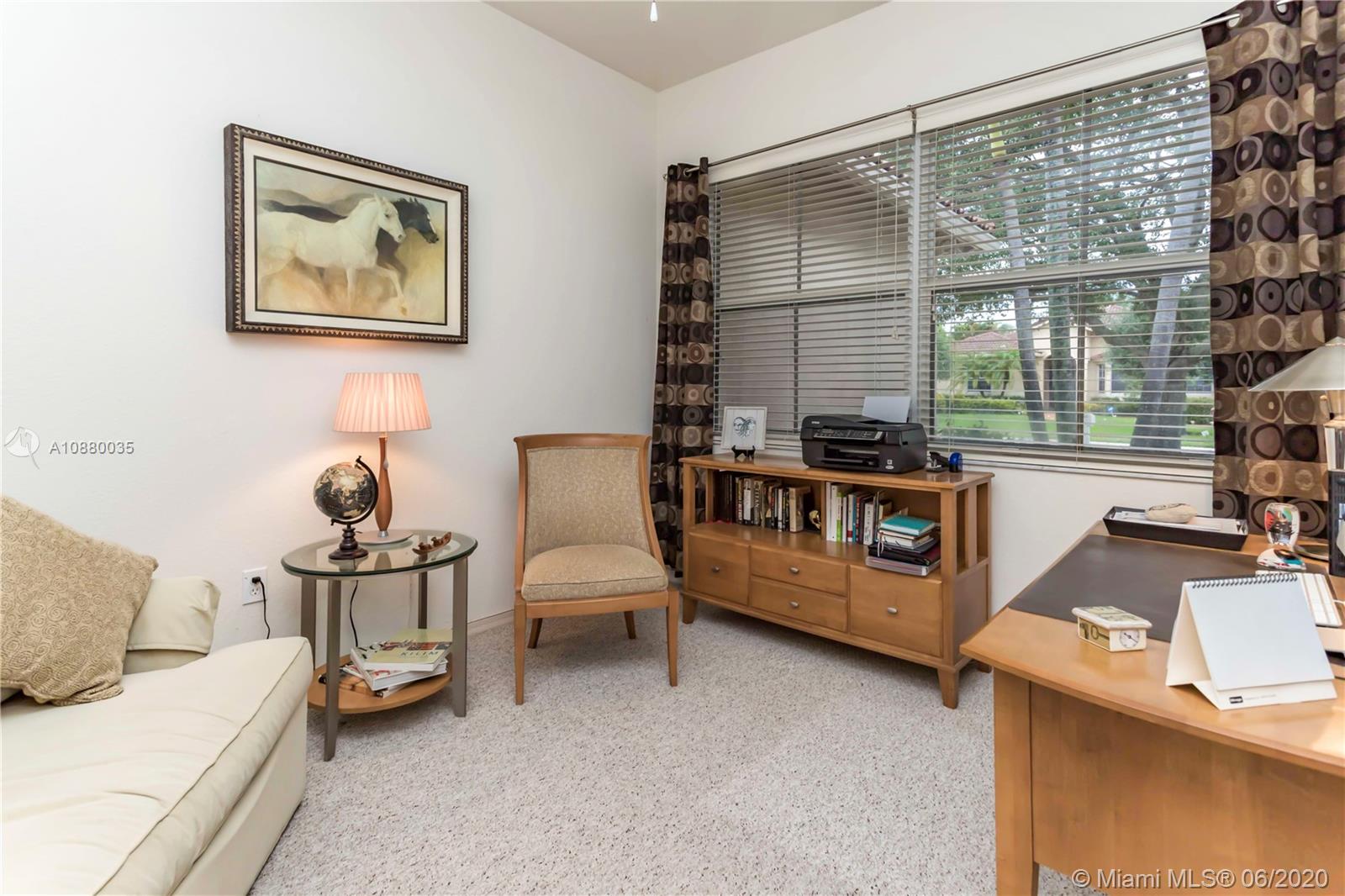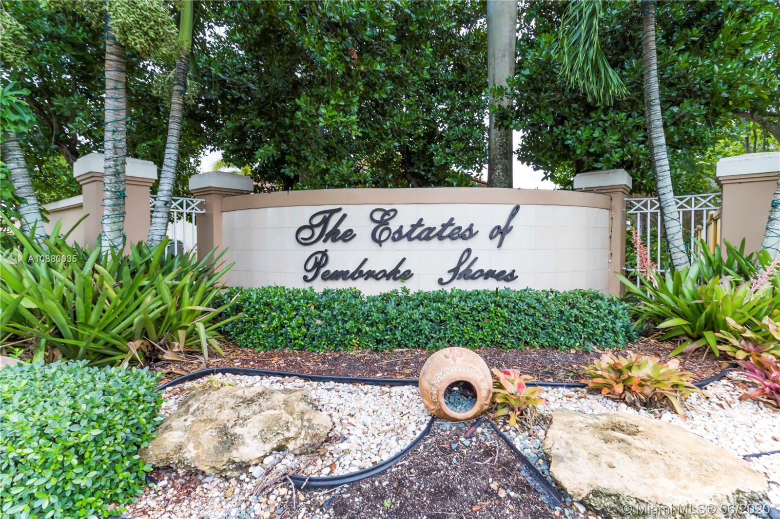 Impeccable one story home in the sought after community of Estates of Pembroke Shores. This 3 bedroom, 2 bath and a Den, which can be converted into the builder's 4th bedroom, is move in ready and well maintained. A/C is 2012 & water heater 2016. The desirable design features a split floor plan, master bedroom wing with double walk in closets and spacious master bath with soaking tub and separate shower, plus double vanities. The large kitchen with walk in pantry opens to an oversized family great room and dining. Outside the pool is surrounded by lush greenery along with a raised flower bed perfect for gardening. The extended pavers allow for plenty of entertaining area as well as a private screened porch perfect for a quiet evening. 24 hr manned guard gate.