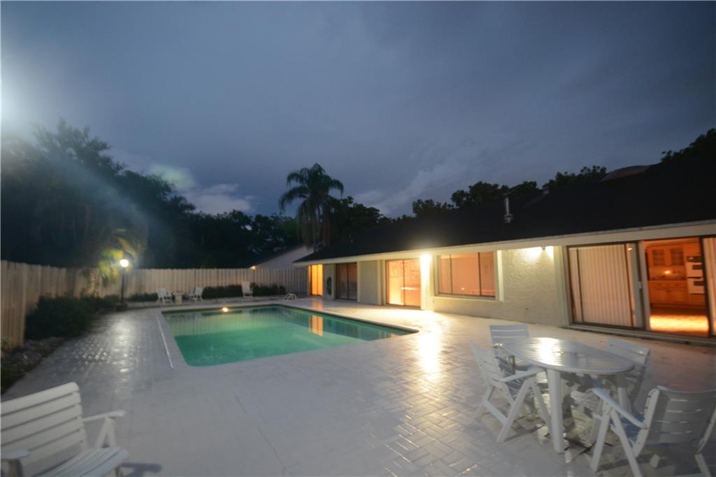 Great corner lot featuring beautiful cedar vaulted ceilings in kitchen/family, living, dining rooms and master bedroom. Large open kitchen, interior laundry room, sunken conversation area and living room with fireplace. Perfect for entertaining viewing a huge patio with over sized pool to enjoy the Florida lifestyle. Master bedroom has large walk-in closet with Roman shower/tub in bath. This spacious home has been impeccably maintained with an ideal location with easy access to I595, shopping and exercise Greenway for biking, walking and jogging. Jacaranda Golf Club is available for public or private membership - better yet fast occupancy is OK!