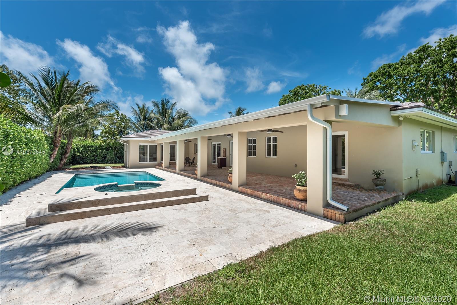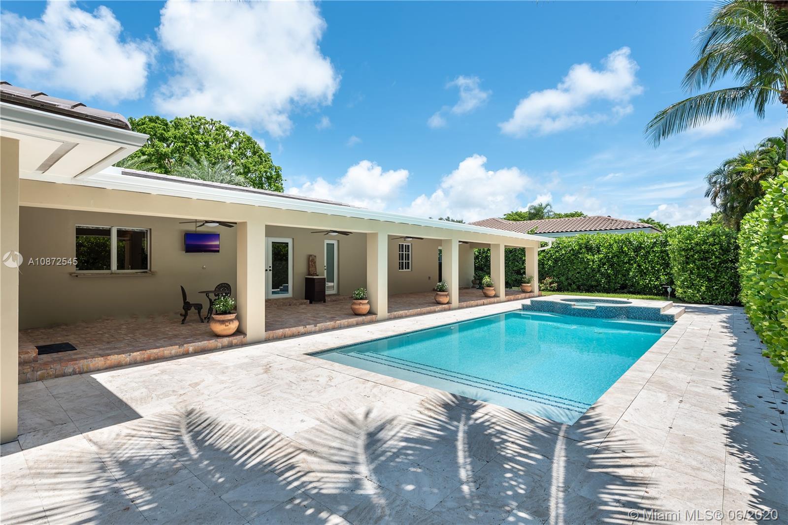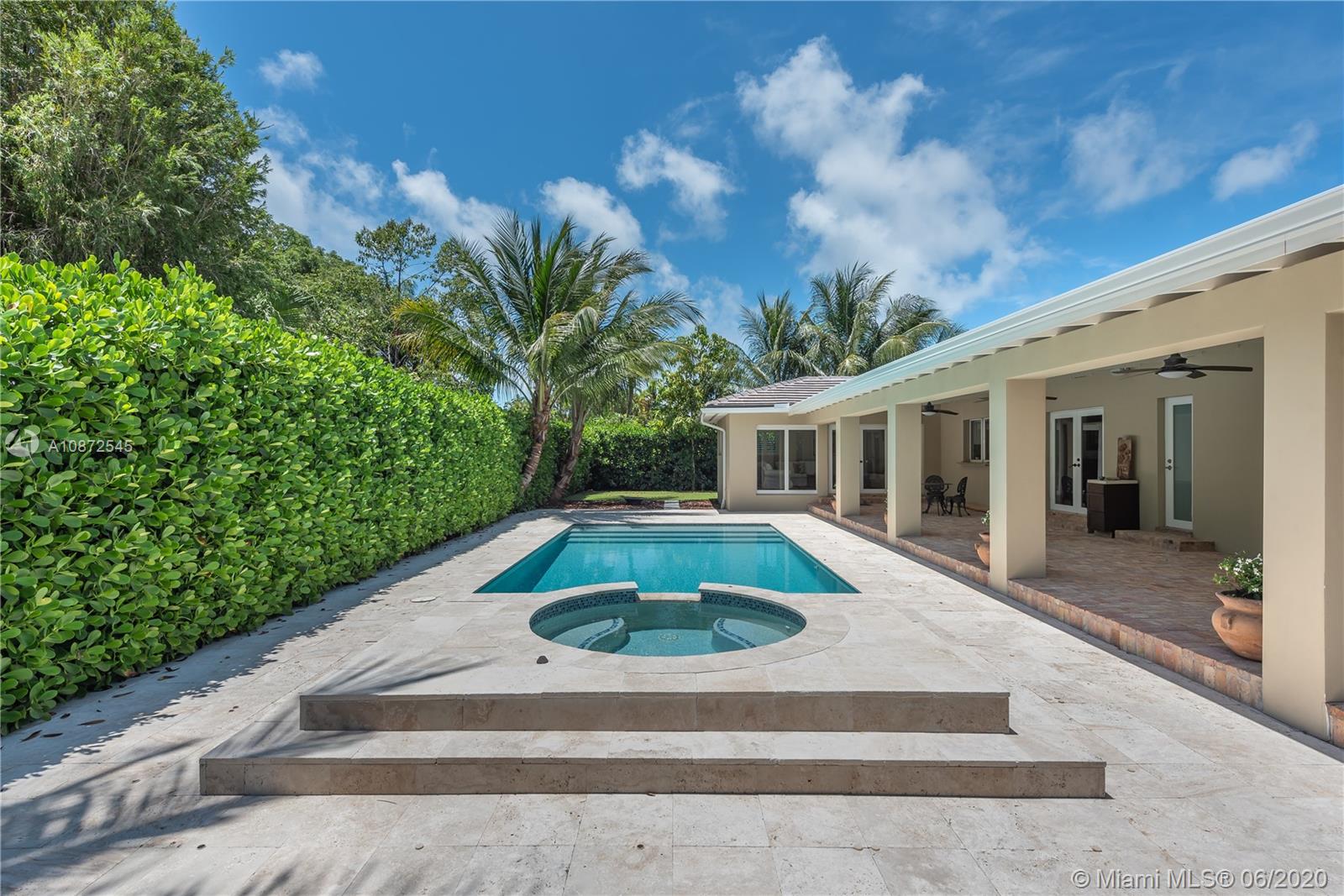 This charming & updated home is located in the guard gated community of Pinecrest By the Sea. Close distance to the best private/public school district in the area. Throughout this beautiful property with an excellent floor plan, you’ll find Brazilian teak wood floors, impact windows & doors, plantation shutters to give it that cozy home feel. With top of the line quality finishes, like brand new flat tile roof, custom built chef’s kitchen, 25x23 bonus room that could be used as a home office/game room, family room with views of the 2016 heated pool & hot tub perfect for entertaining guests or lounging by the pool. Side patio entrance with double Iron gate & Turf grass soccer court. Manicured landscaped, circular Chicago Brick driveway. This home is fit for family and built to last.