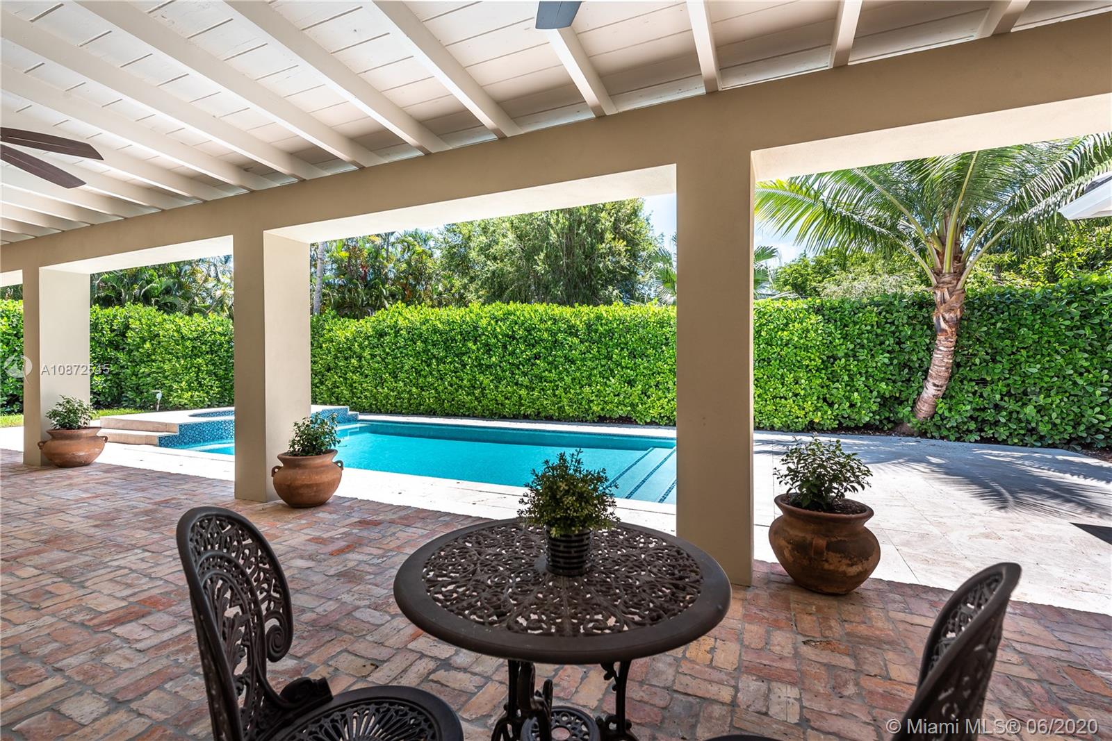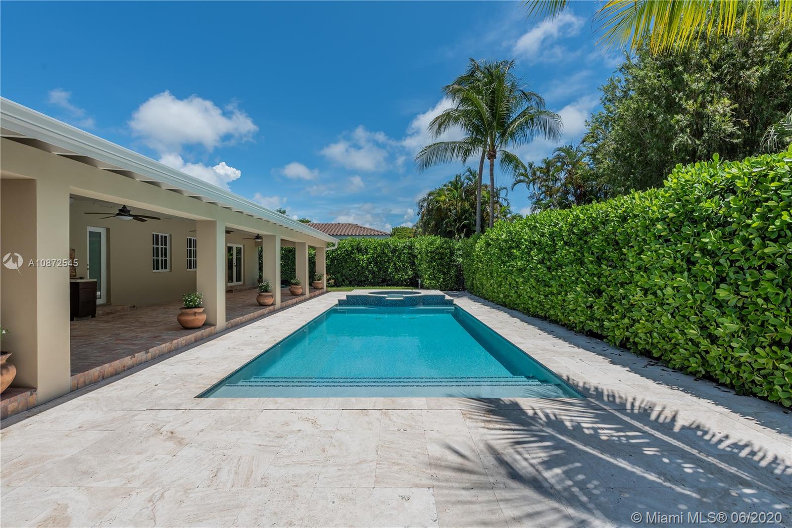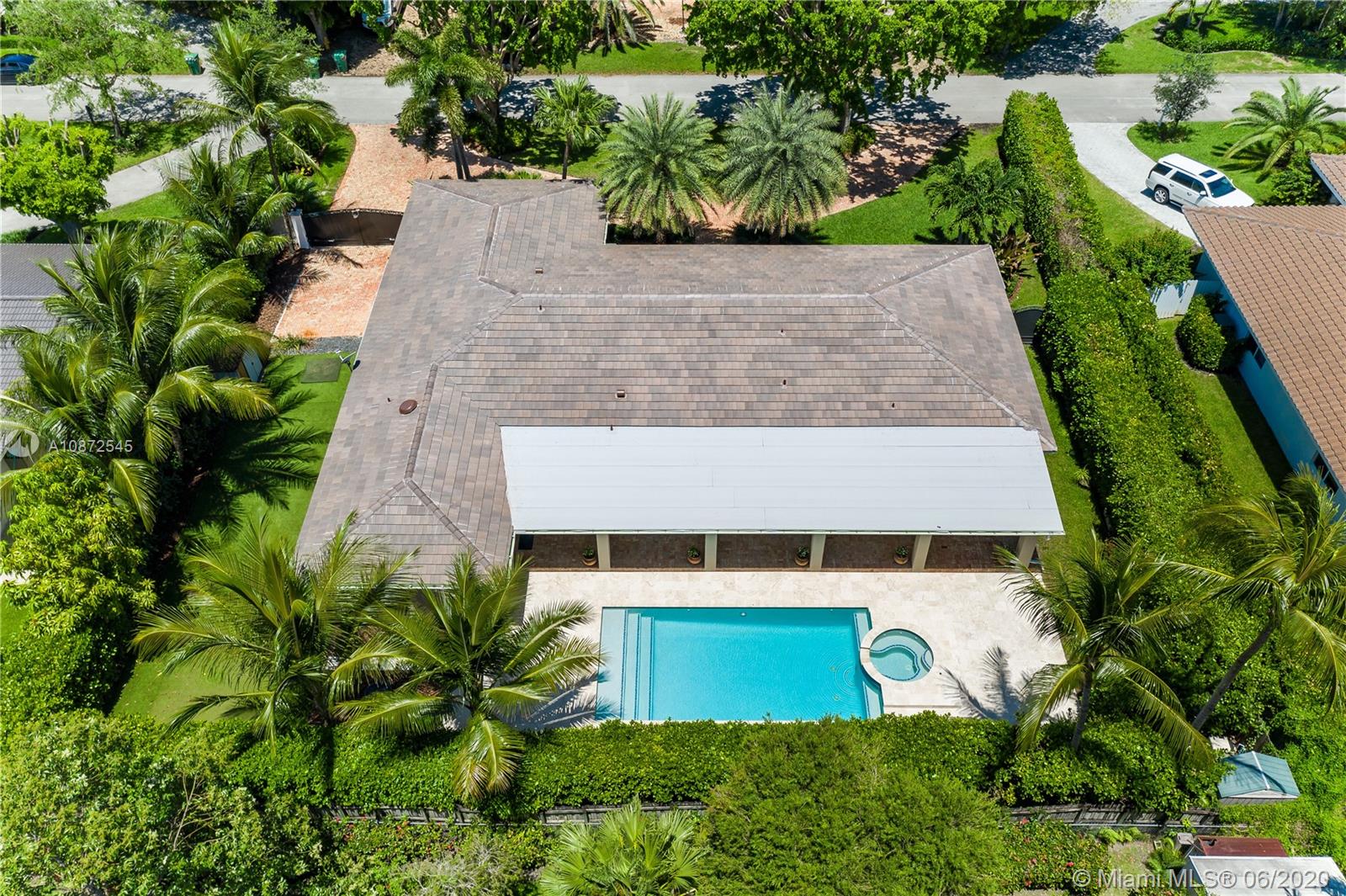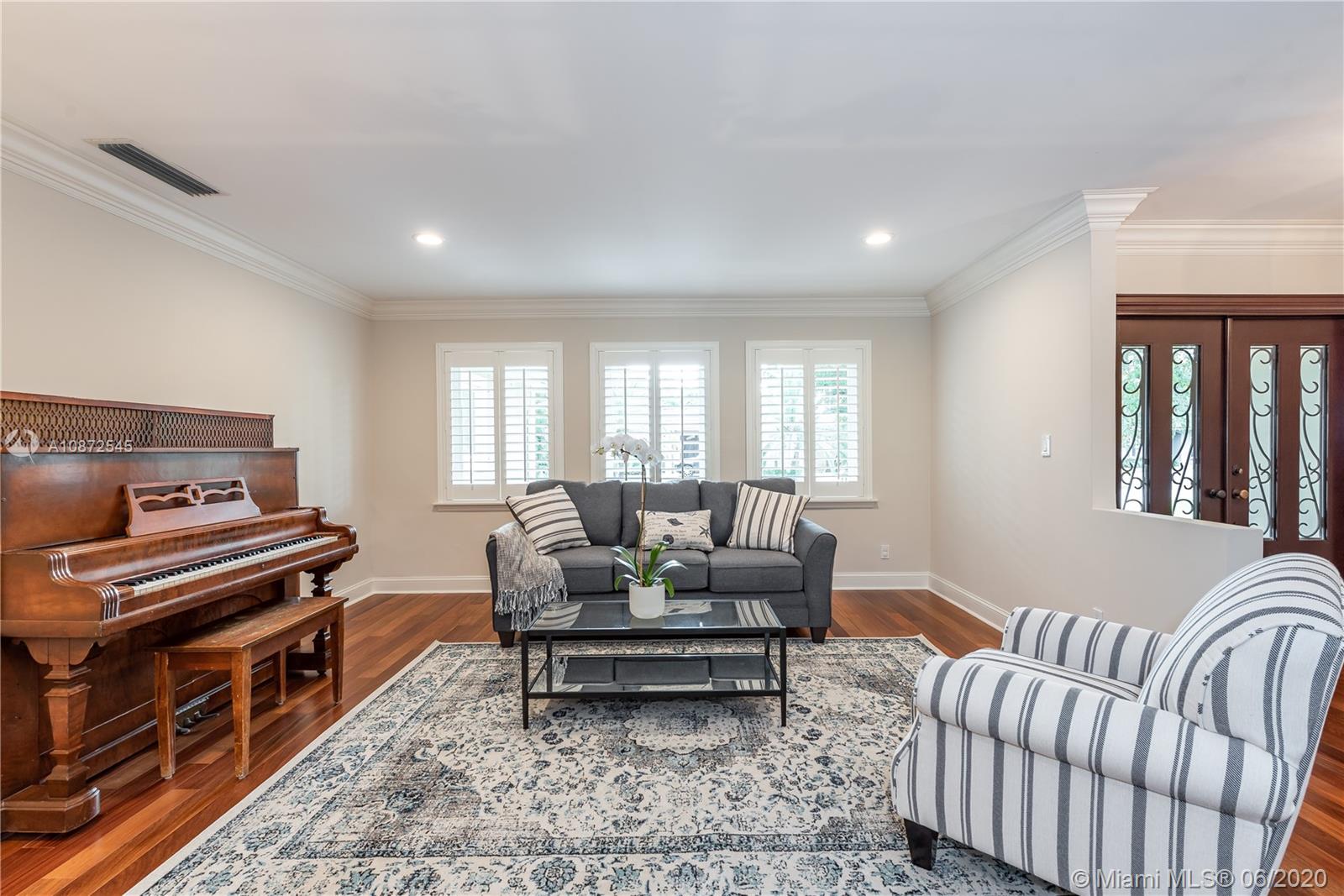 This charming & updated home is located in the guard gated community of Pinecrest By the Sea. Close distance to the best private/public school district in the area. Throughout this beautiful property with an excellent floor plan, you’ll find Brazilian teak wood floors, impact windows & doors, plantation shutters to give it that cozy home feel. With top of the line quality finishes, like brand new flat tile roof, custom built chef’s kitchen, 25x23 bonus room that could be used as a home office/game room, family room with views of the 2016 heated pool & hot tub perfect for entertaining guests or lounging by the pool. Side patio entrance with double Iron gate & Turf grass soccer court. Manicured landscaped, circular Chicago Brick driveway. This home is fit for family and built to last.