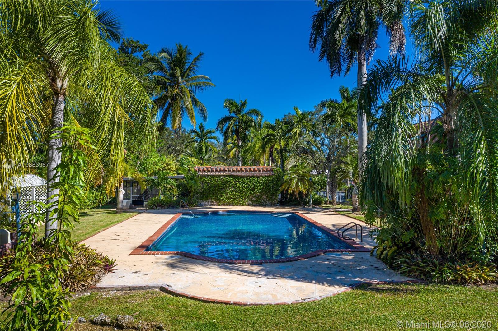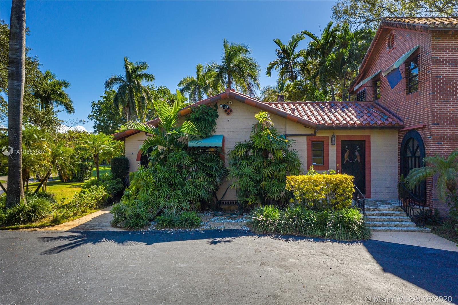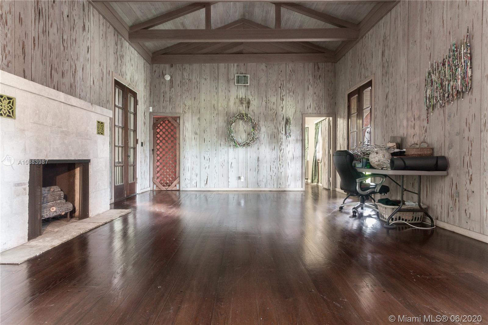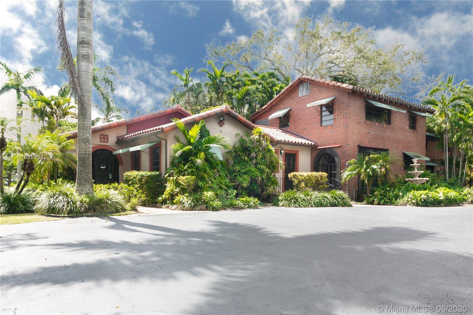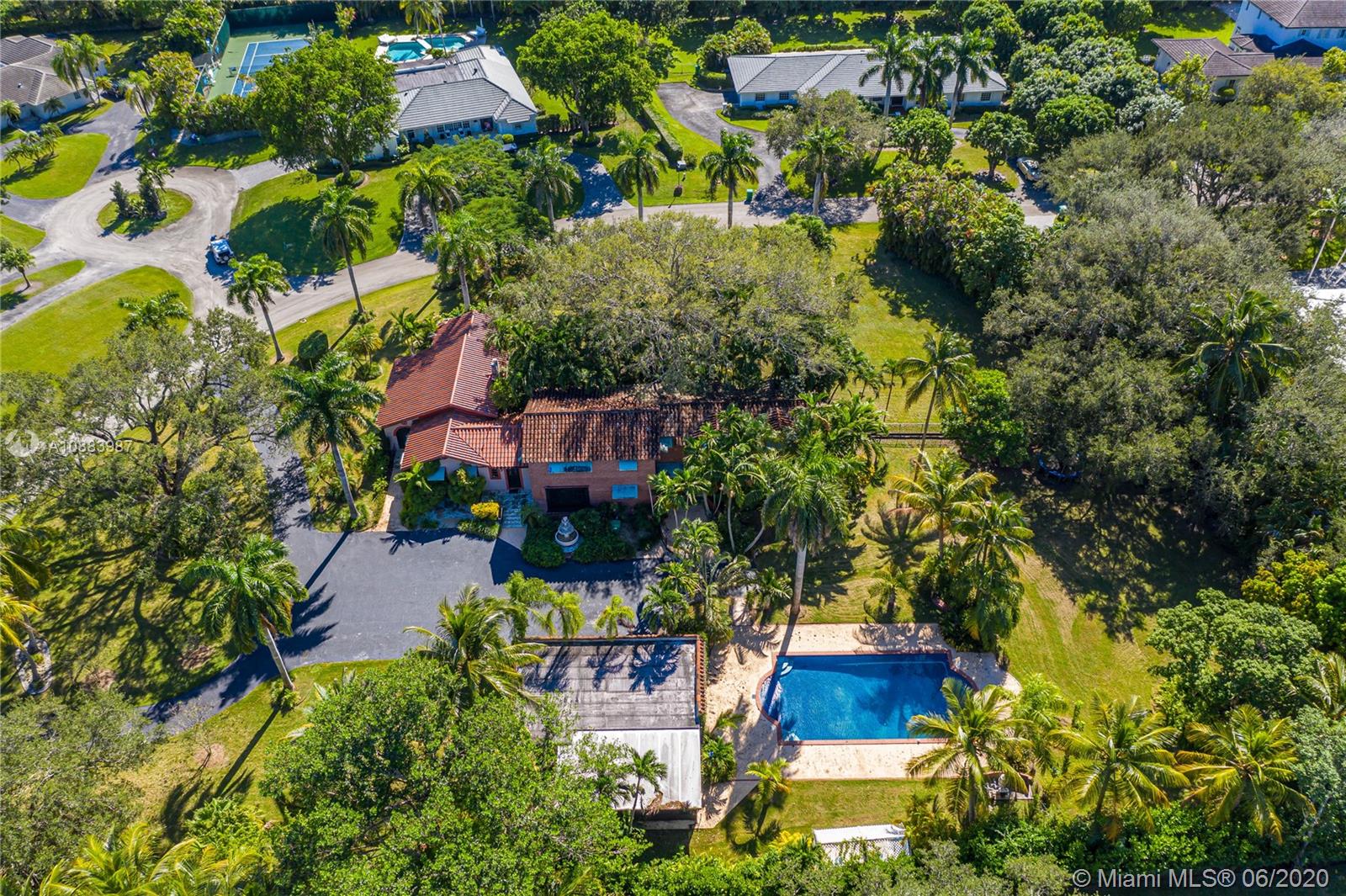 Magnificent Pinecrest Mediterranean estate on a nearly one and a half acre lot in the sought after walled in community of The Elysium. Originally built in 1934 this property is uniquely elevated above the street with lush landscaping including large mature oak trees, royal palm trees, mango and avocado trees. This 4 bedroom 4 bathroom house features a very rare below ground cellar, pecky cypress walls, red oak and marble floors, coral rock fire place, large bedrooms, screened in balcony off the master suite and oversized family room. Other features include a detached 3-car garage with converted office, over sized tiled pool & separate irrigation pump house. This is the perfect home for renovating or to build your dream home on the spectacular lot. Motivated Seller. Bring all offers!