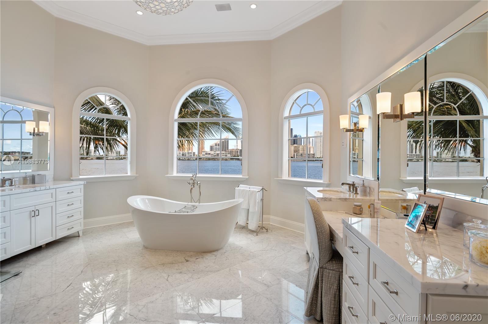Island Estates-Modern Mansion has 6 Bds, 6.5 Bths 6200+ SQFT,PLUS a 3 car garage, soaring ceilings & vast balconies bringing the home to 7200 SQFT! INCLUDES A 50' ASSIGNED yacht slip!Great for entertaining w/ the formal bar/wine area, vaulted ceilings, wood floors throughout,coiffured ceilings,custom built-ins & open floor plan. Two first floor guest rms w/ full bathrms, LG formal dining rm w/ a custom atrium & fountain, formal living rm, wood burning fire place, separate den, chef's gourmet eat-in kitchen, cabana bath & full laundry facilities on both floors. The grand staircase or elevator will take you to the 2nd fl w/ 2 XL guest bedrms & bathrooms & the vast mstr bedrm & bathrm, custom walk-in closets,HUGE balcony & calming water views. Come experience the home!
