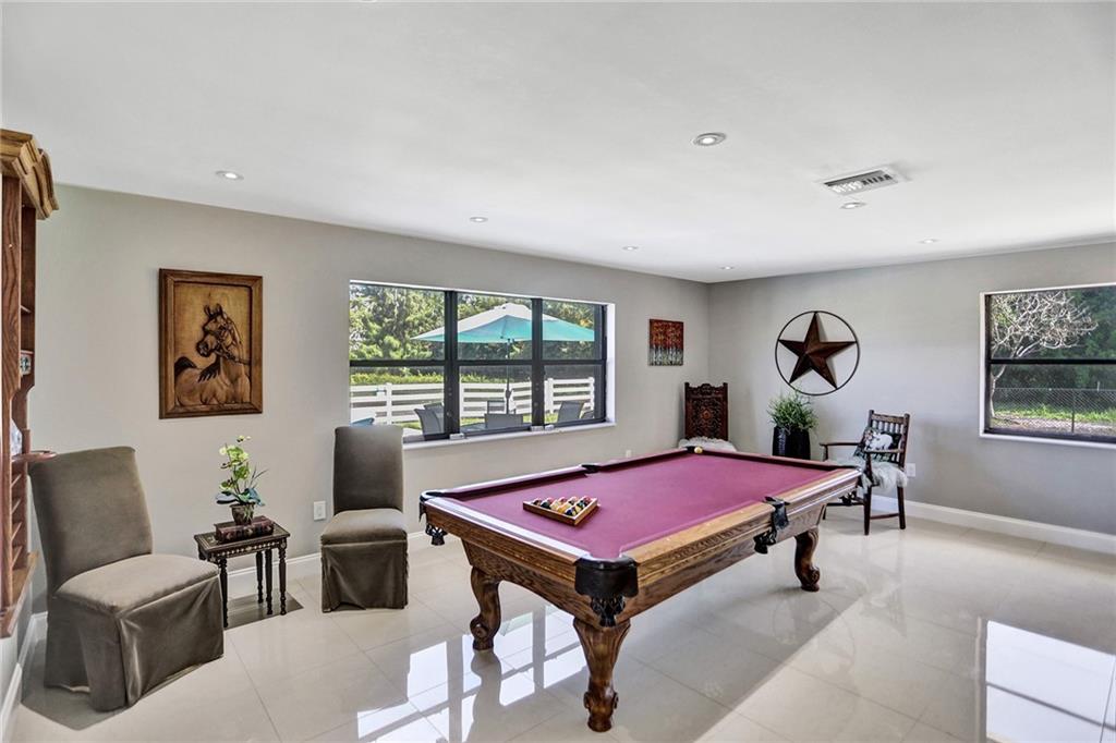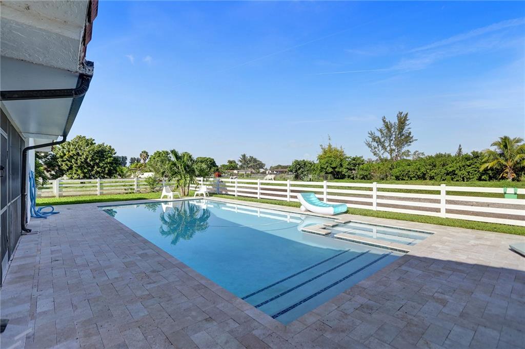 This beautifully updated and bright ranch home in Country Club Ranches is situated on over 2 acres and in close proximity to the best Miramar has to offer. Private electric gate and lush landscaping on the perimeter of this property provide lots of privacy. This home features 3 large bedrooms with gorgeous views from all the windows. 3 full bathrooms have all have been recently updated. Beautiful tile floors throughout the whole home. The kitchen features tons of cabinets, granite counter tops, s/s appliances and an oversized island perfect for entertaining! Large laundry area off the kitchen adds even more storage space. The most recent additions to the home include an updated septic tank, new well, oversized salt water pool and spa, updated electrical!