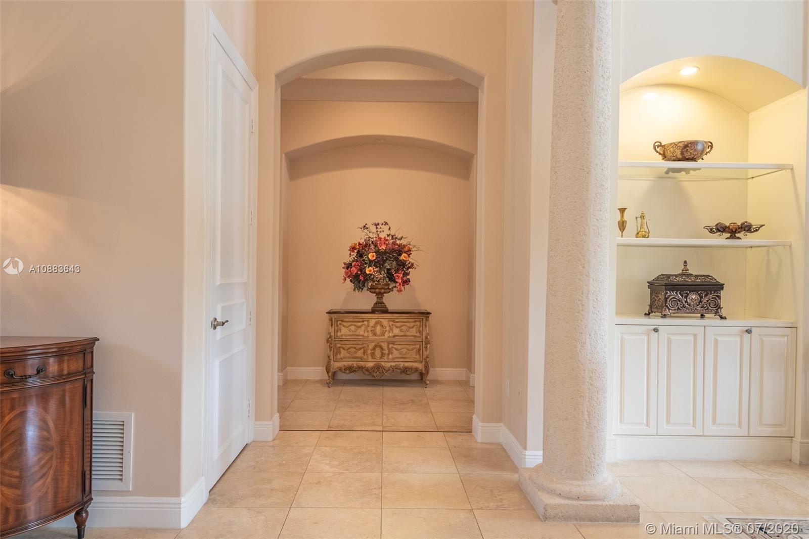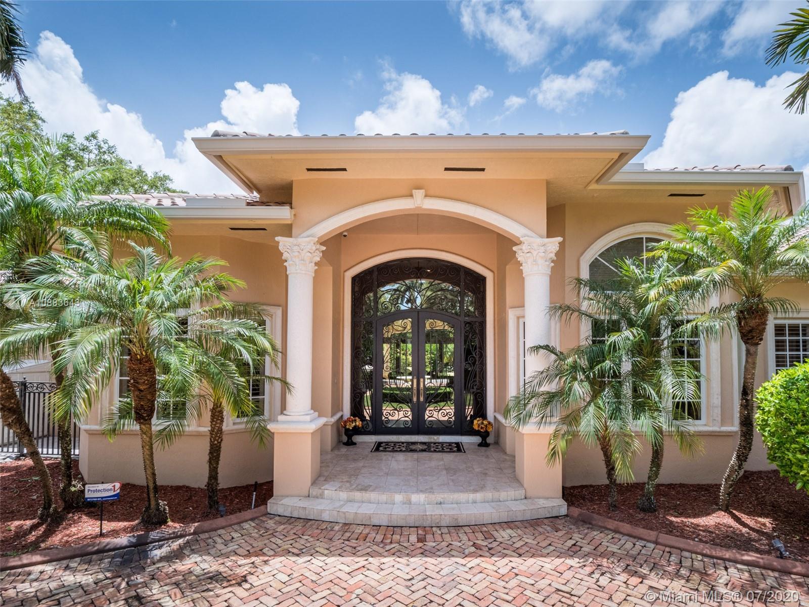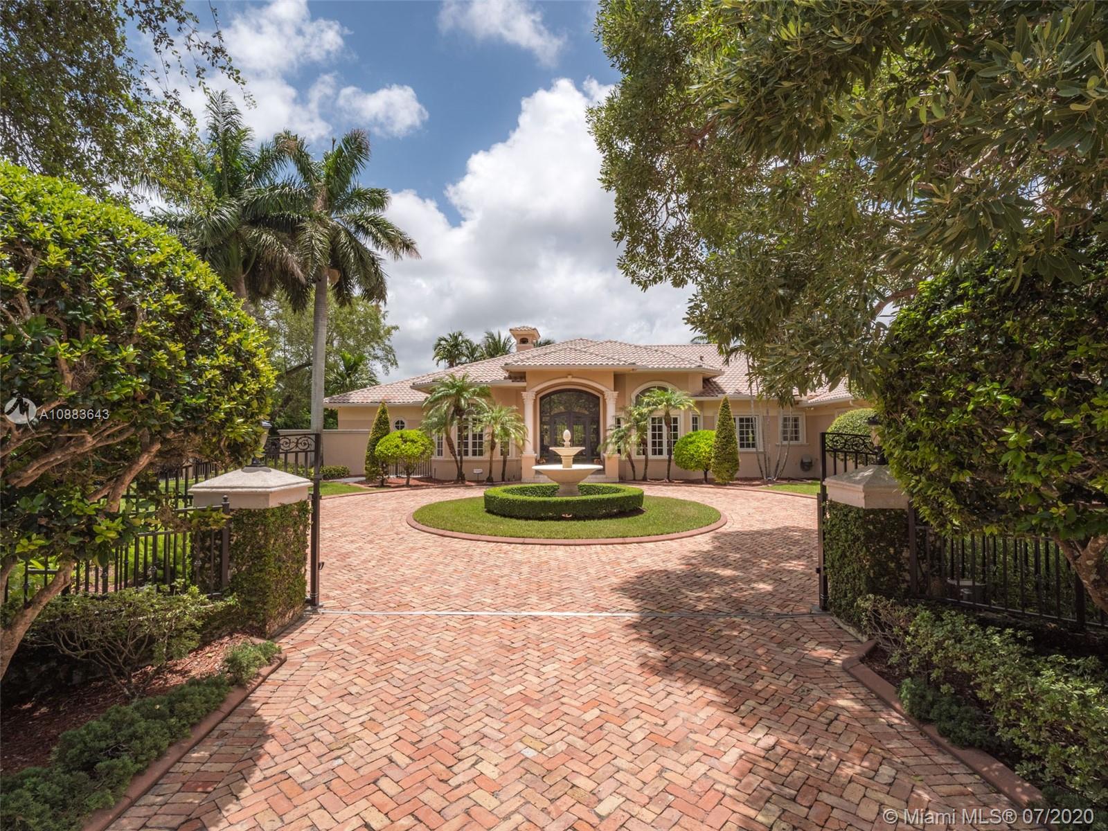 This custom Kenner gated estate sits on an acre lot surrounded by a canopy of lush trees, exuding elegance. Enter this European-style home via your circular Chicago brick driveway adorned with a beautiful fountain. This sophisticated residence features exquisite marble floors throughout, crown molding, and expansive living room with French doors bringing abundant natural light. The owner's suite wing located on the south side features a spacious en-suite bathroom, large walk-in closet, and office. The north wing of the split floor plan offers plenty of space for everyone and a second family room. The main family room comes with a bar and leads to the chef’s kitchen and breakfast area. Step out into the oasis and enjoy your own private putting green and renovated pool with travertine deck.