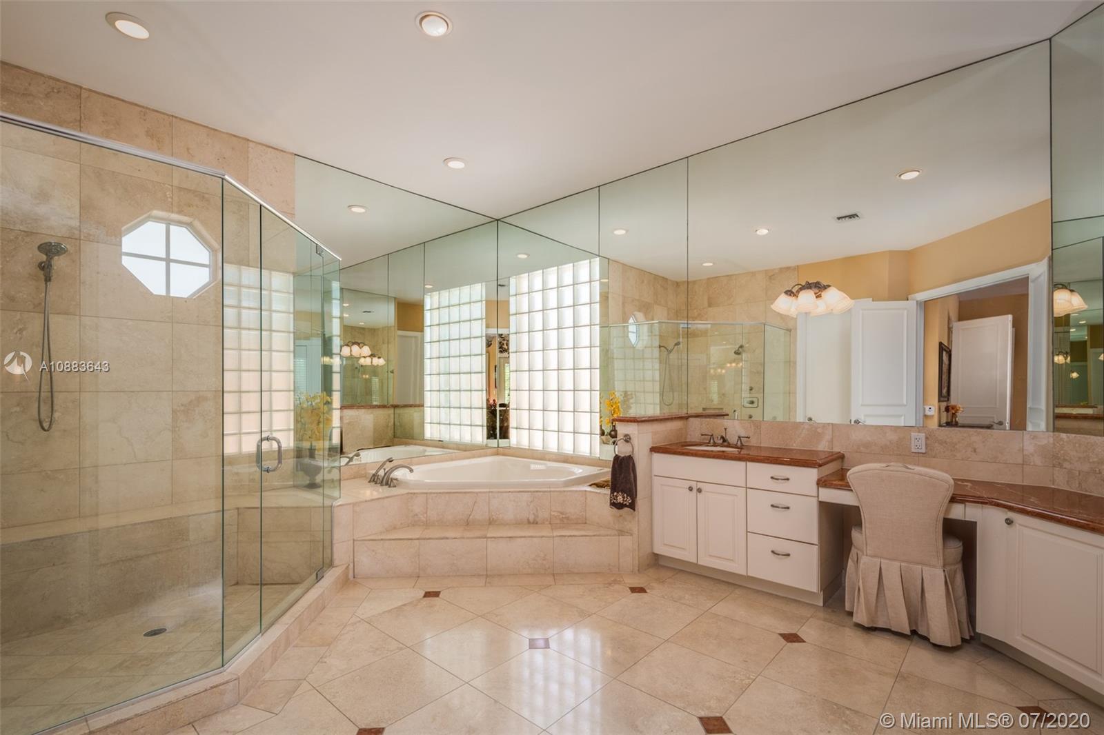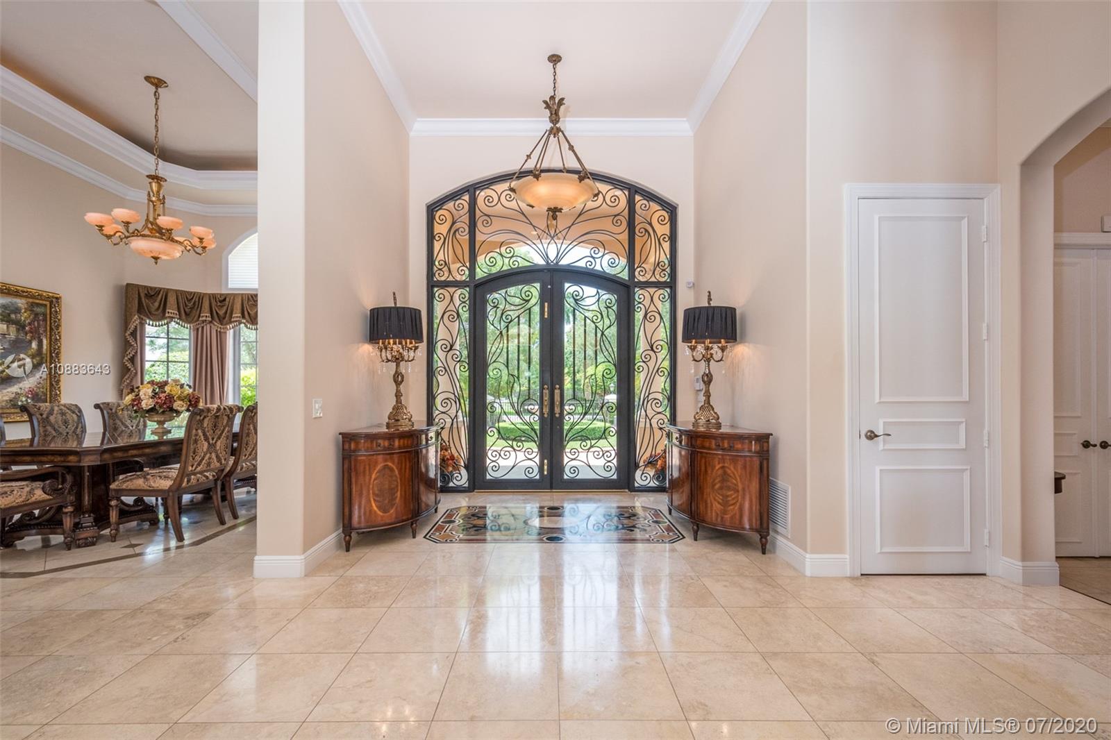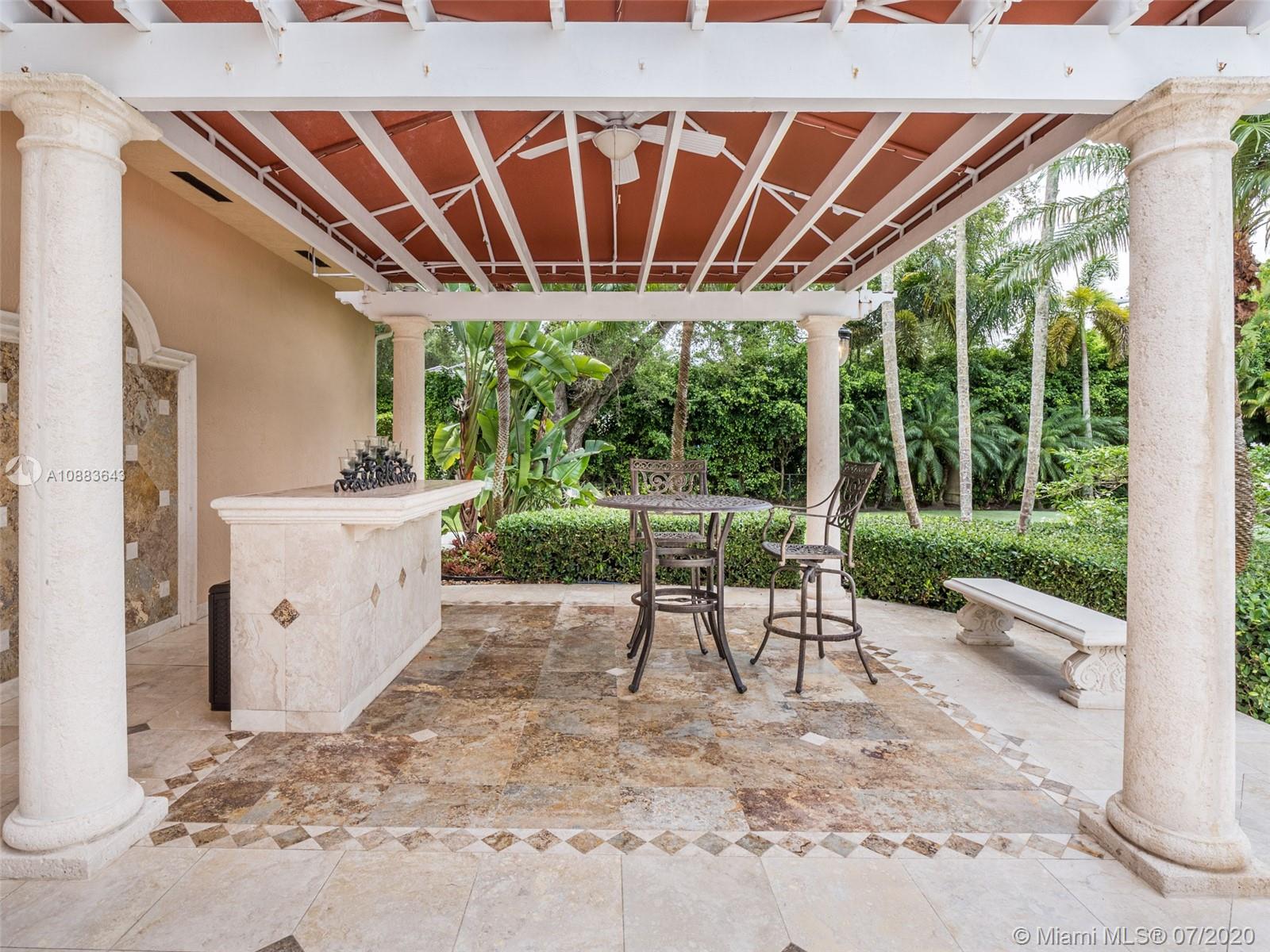 This custom Kenner gated estate sits on an acre lot surrounded by a canopy of lush trees, exuding elegance. Enter this European-style home via your circular Chicago brick driveway adorned with a beautiful fountain. This sophisticated residence features exquisite marble floors throughout, crown molding, and expansive living room with French doors bringing abundant natural light. The owner's suite wing located on the south side features a spacious en-suite bathroom, large walk-in closet, and office. The north wing of the split floor plan offers plenty of space for everyone and a second family room. The main family room comes with a bar and leads to the chef’s kitchen and breakfast area. Step out into the oasis and enjoy your own private putting green and renovated pool with travertine deck.