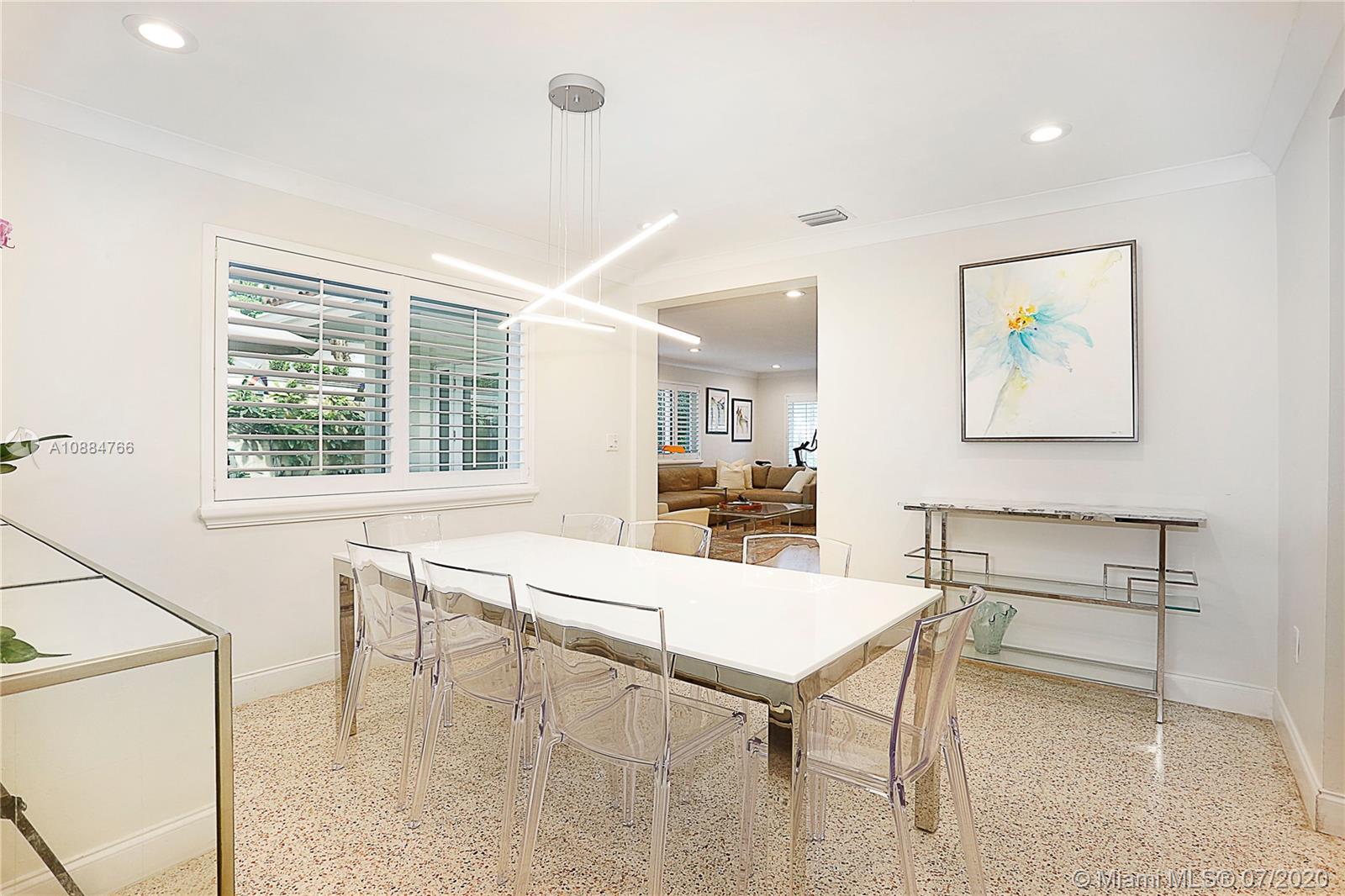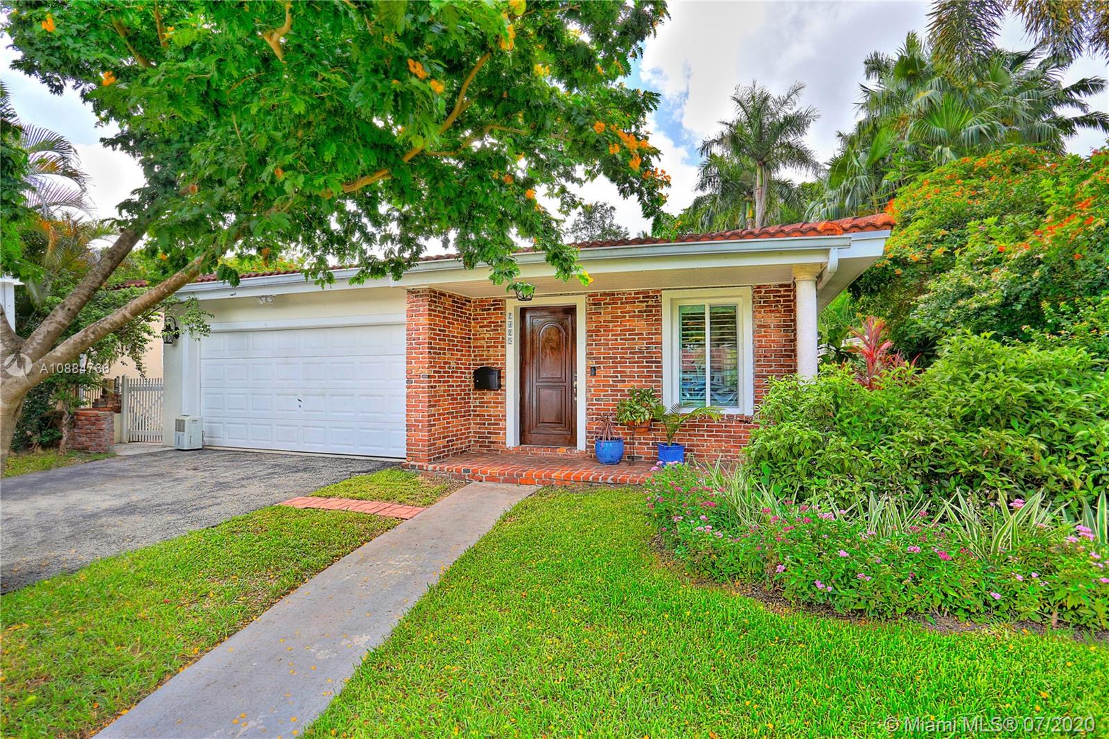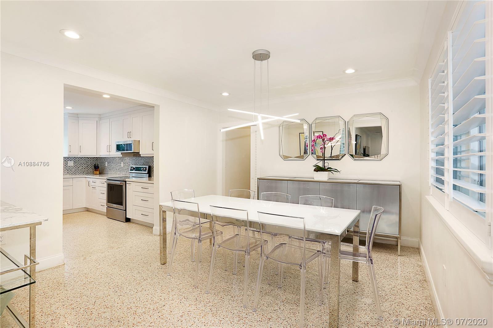 Ideally situated on this quiet & special street just blocks from the Biltmore Hotel is this jewel of a home that has been beautifully updated & finished w/ a cool, modern flair! Spacious great rm w/ lots of natural light, impact drs & windows, plantation shutters, LED lights & refinished terrazzo flrs. The dining rm & new kitchen are adjacent offering great flow for entertaining. Sleek, white kit has lovely backsplash, quartz counters, stainless steel appliances & wood cabinets. Both baths are gorgeous & in keeping w/ the modern style. 3 bd/2.5 ba + office/nursery w/ just over 2000 sf. Chicago brick patio on side & backyard overlooking gracious yard w/ lots of room to play. Steps from St. Theresa & St. Philips. 2 car gar, Nest Thermostat, Ring video doorbell & motion lights.