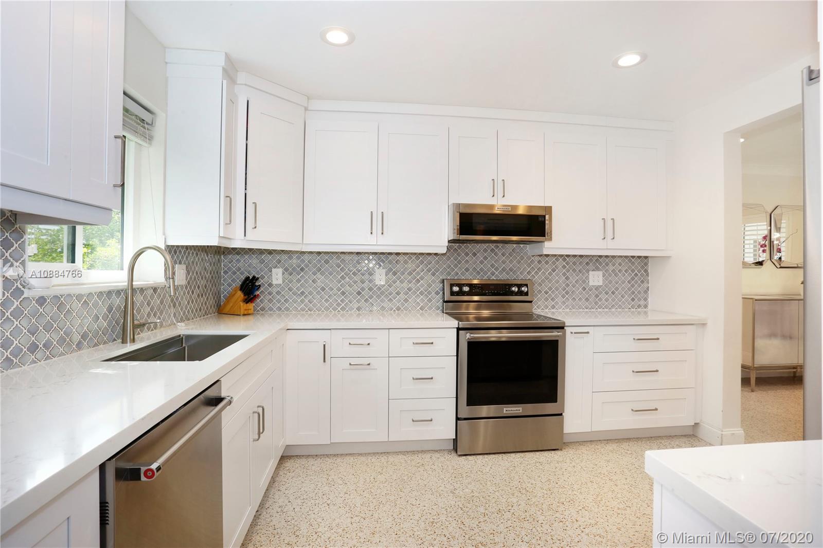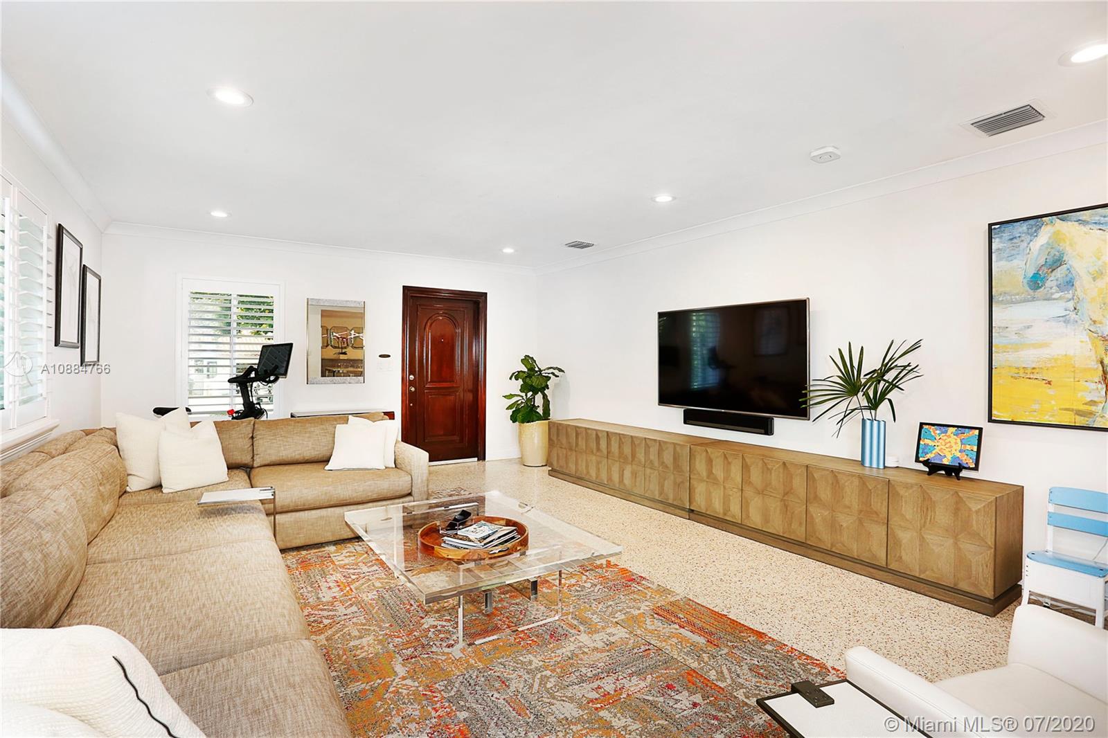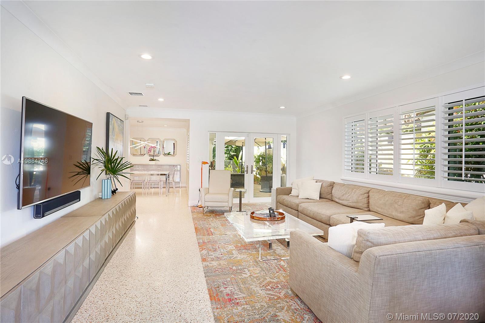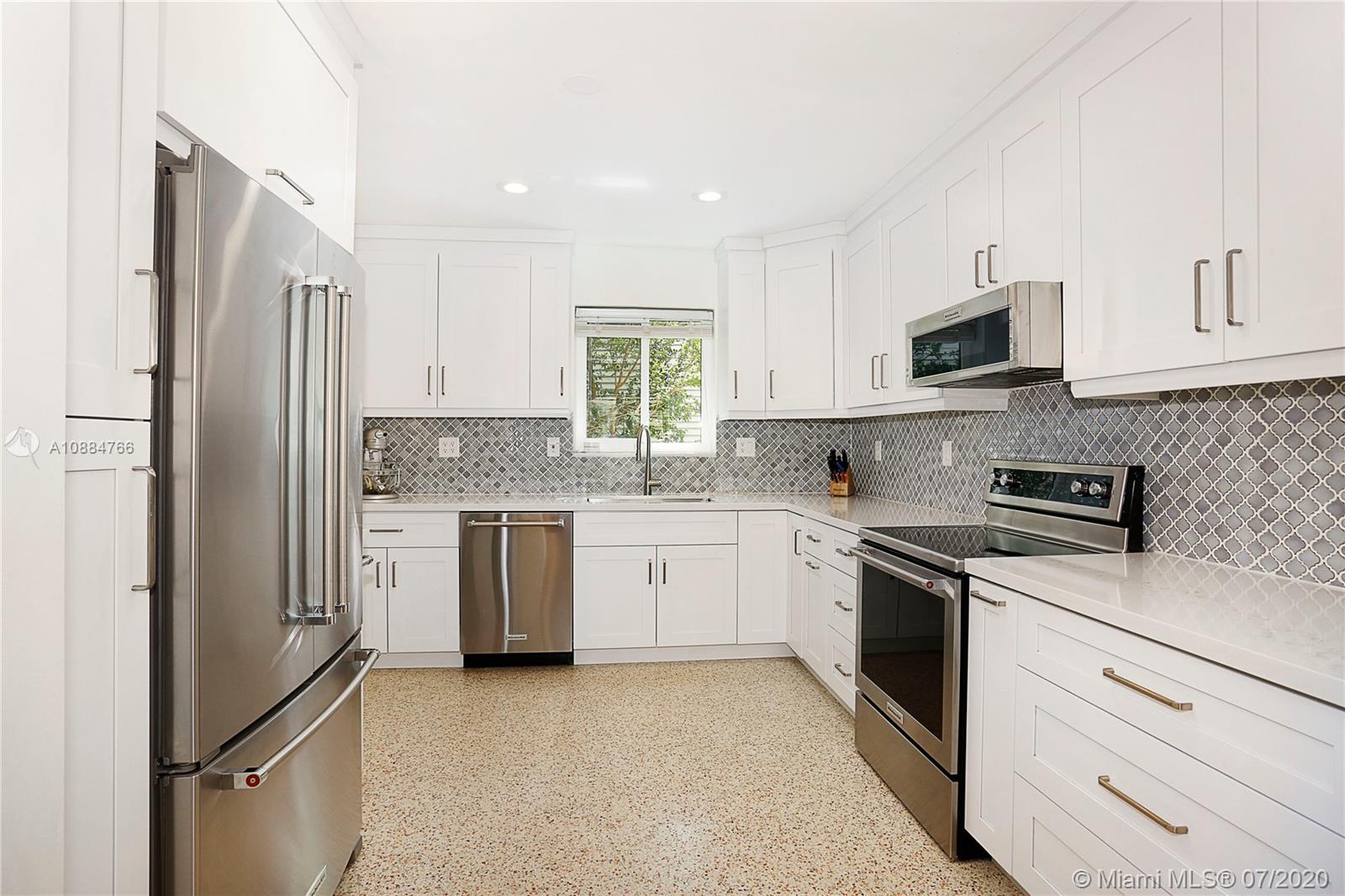 Ideally situated on this quiet & special street just blocks from the Biltmore Hotel is this jewel of a home that has been beautifully updated & finished w/ a cool, modern flair! Spacious great rm w/ lots of natural light, impact drs & windows, plantation shutters, LED lights & refinished terrazzo flrs. The dining rm & new kitchen are adjacent offering great flow for entertaining. Sleek, white kit has lovely backsplash, quartz counters, stainless steel appliances & wood cabinets. Both baths are gorgeous & in keeping w/ the modern style. 3 bd/2.5 ba + office/nursery w/ just over 2000 sf. Chicago brick patio on side & backyard overlooking gracious yard w/ lots of room to play. Steps from St. Theresa & St. Philips. 2 car gar, Nest Thermostat, Ring video doorbell & motion lights.