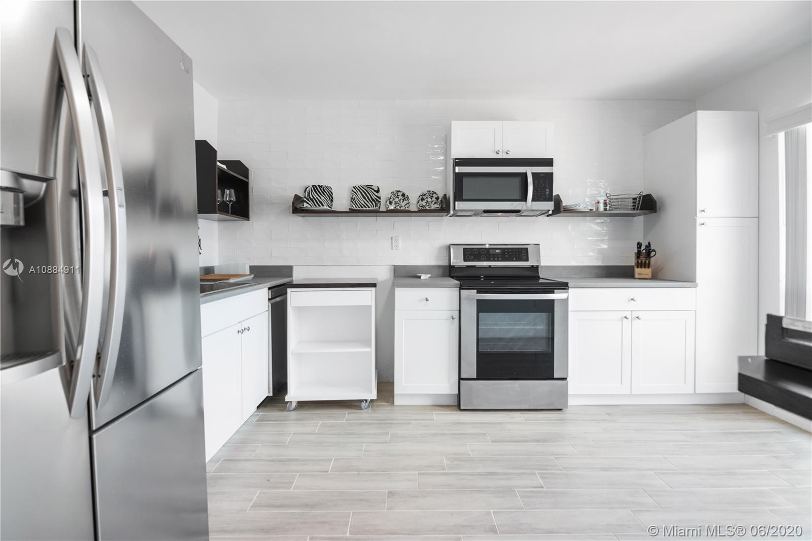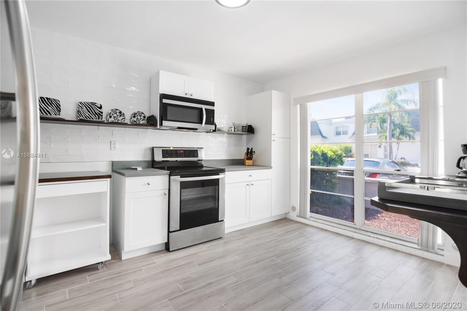 Reduced!! Absolutely stunning 3 bedroom, 2.5 bathroom fee simple townhome in desirable Hallandale Beach. Completely remodeled with countless upgrades including a new kitchen with new stainless steel appliances, new cabinets, a custom-made chef cart, custom designed open shelving and appliance shelf, a new sink, faucet and garbage disposal. Brand new moden-style tile flooring through-out, freshly painted including smooth ceilings and renovated bathrooms and washer/dryer. A spacious back patio and balcony off the master bedroom overloooks a serene lake and gardens. 2 assigned parking spaces directly in front of the home, community pool and clubhouse. Close to the beach, shopping, all major highways and houses of worsip. HURRY WON'T LAST!