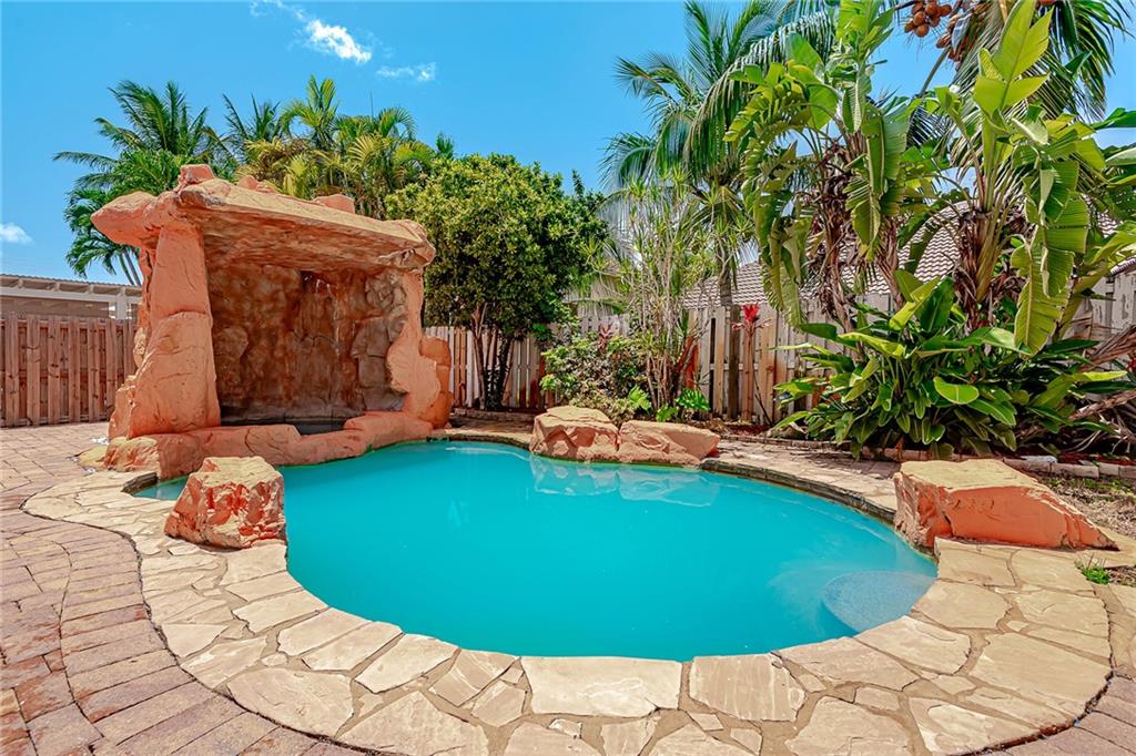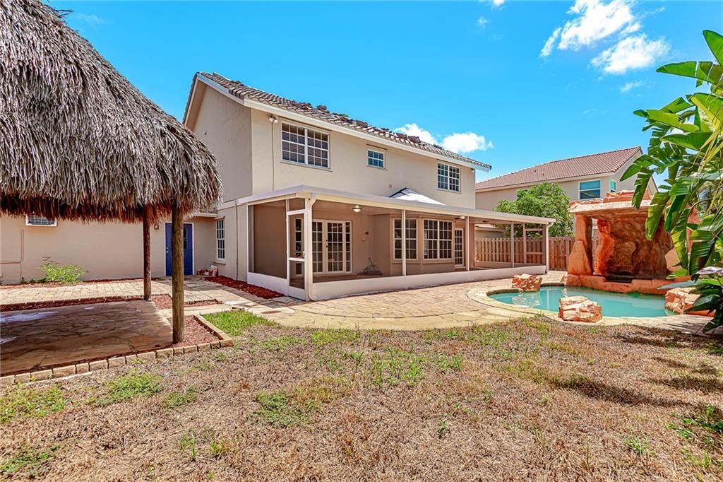 You finally found it- a one of a kind home in Davie's desirable Shenandoah community with A rated schools! Come bring your family to this beautifully redone 4/2.5 home w/ NEW ROOF, an awesome backyard oasis, featuring a rock grotto pool with waterfall, jetted spa, huge tiki bar with outdoor kitchen, outdoor shower, covered/ screened patio, mango tree, fully fenced yard, & still yard space for your pets/ kids to play! Upon entry, you will be welcomed by soaring ceilings in the foyer, plus plenty of living space with a separate formal living room, formal dining room, & a family room/ den. Kitchen features honey cabinetry, granite counters, & new stainless steel appl. Master suite has a double-door entry, fully redone bathroom with dual vanity, separate tub & shower, & a large walk-in closet.