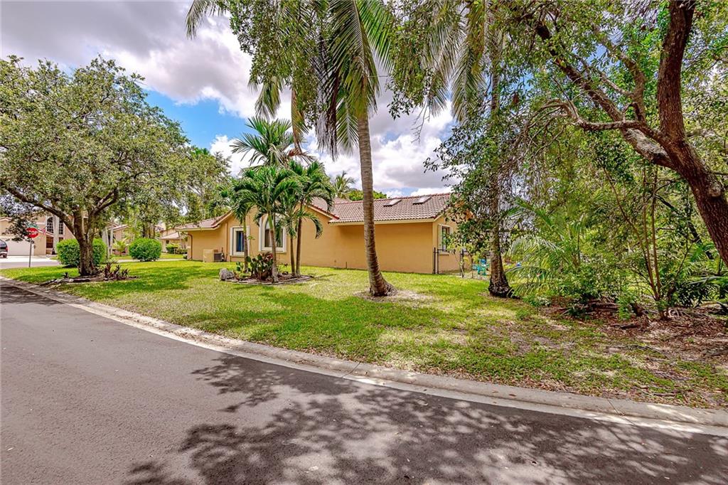 BEAUTIFUL 4/2 HOME IN NORTH CORAL SPRINGS. HUGE CORNER LOT. FEATURES KITCHEN WITH STAINLESS STEEL APPLIANCES. VAULTED CEILINGS. WOOD FLOORS IN KITCHEN & FAMILY ROOM WITH SKYLIGHTS. FORMAL DINING AREA. SPLIT BEDROOM FLOOR PLAN. MASTER BEDROOM WITH 2 CLOSETS, ONE A WALK IN CLOSET. MASTER BATH HAS DOUBLE SINKS WITH GRANITE COUNTERTOPS & CABANA DOOR. SCREENED IN BACK PATIO TO RELAX, WITH SALT WATER POOL & CHILD GATE. SPACIOUS FENCED BACK YARD FOR KIDS TO PLAY SAFELY, HOST PARTIES, DO BAR-B-Q OR SIT BACK & PLAY MUSIC. BARREL TILE ROOF - 2006. A/C - 2014. HURRICANE ACCORDION SHUTTERS. BRICK PAVERS ON DRIVEWAY. PARK CLOSE BY FOR EXERCISE. 'A' RATED SCHOOL (STONEMAN DOUGLAS). HOUSE ON HOSPITAL GRID. QUIET FAMILY FRIENDLY NEIGHBORHOOD WHERE EVERYONE CELEBRATES MAJOR HOLIDAYS TOGETHER. NO HOA.