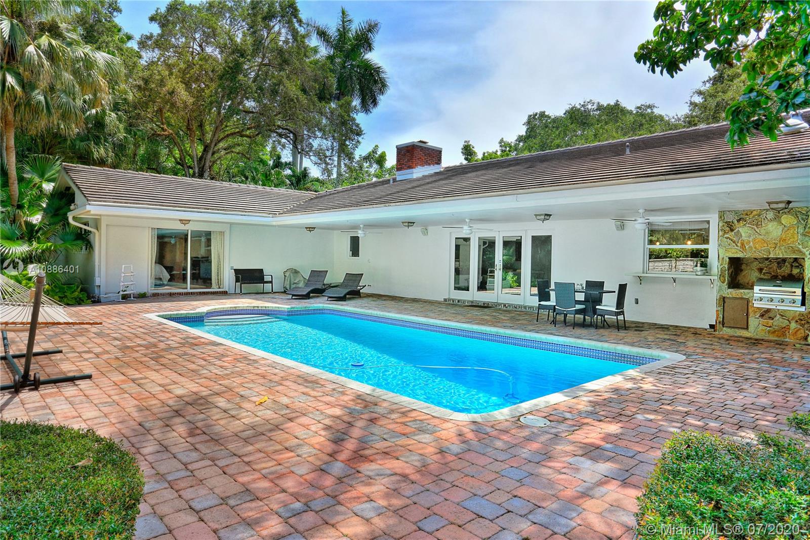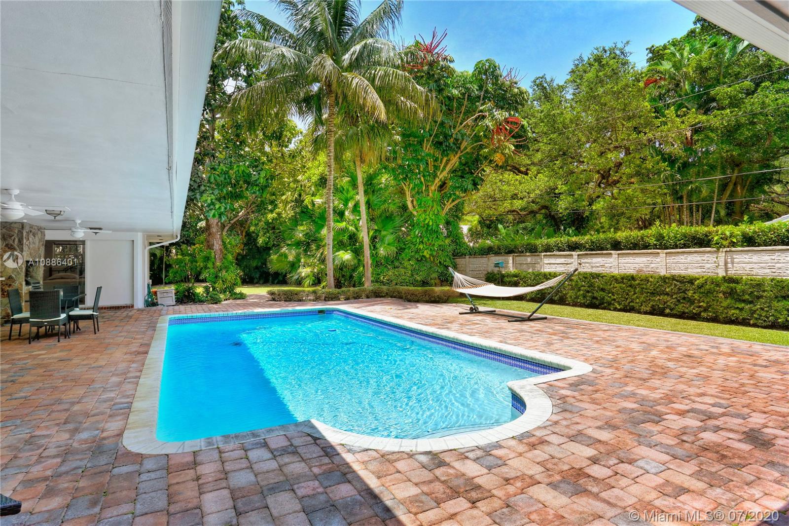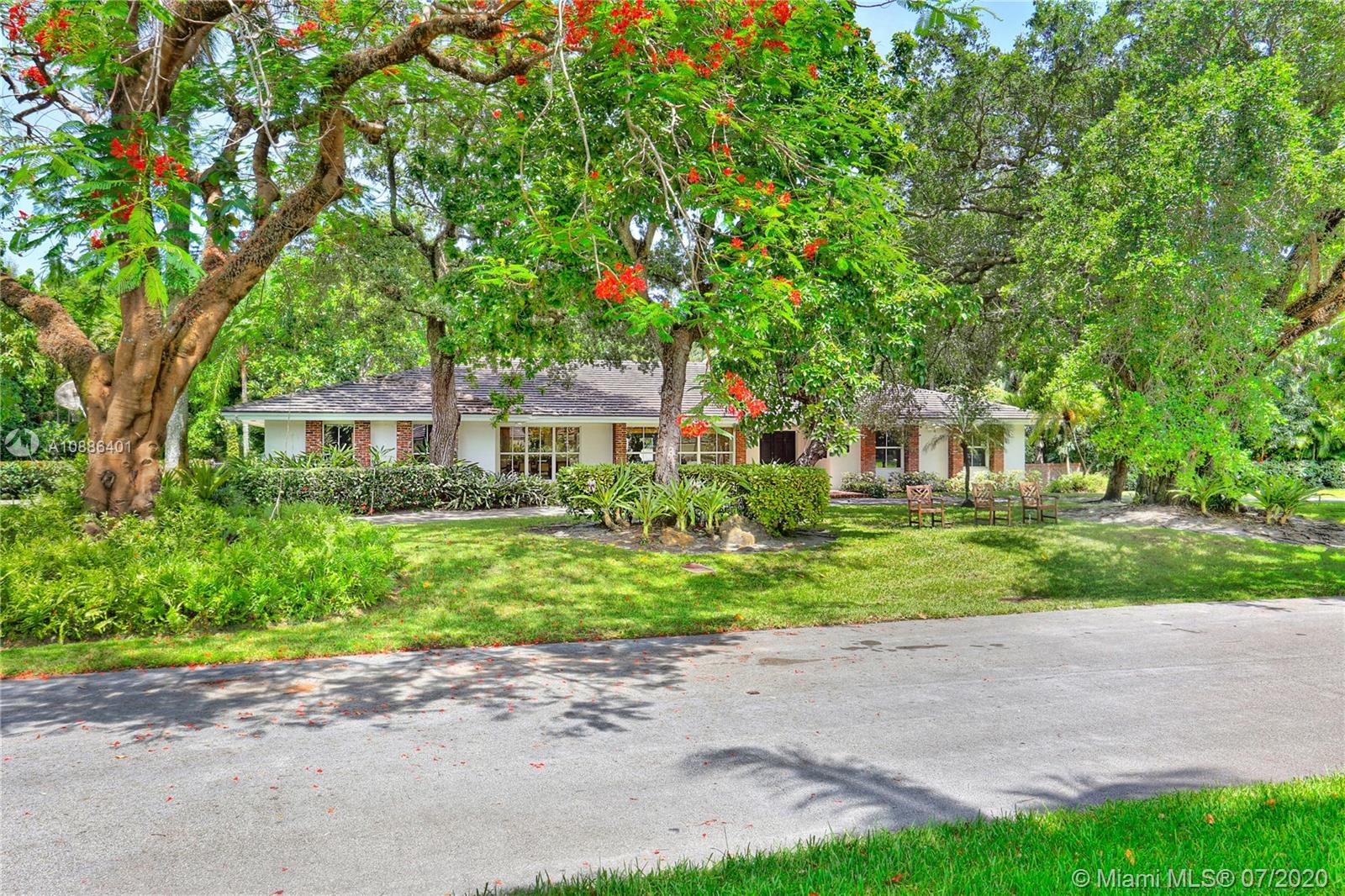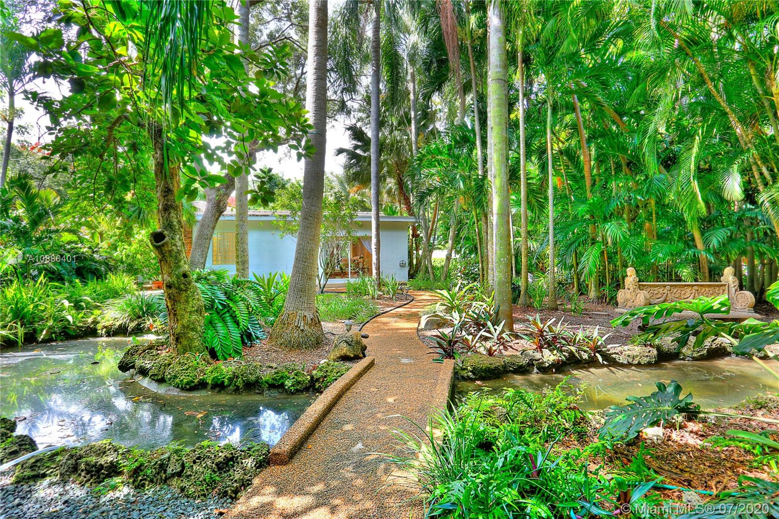 Absolutely beautiful & updated builder’s acre home on gorgeous S. Gables cul de sac! This 5-bd, 4-ba home features an open floor plan w/ large picture windows, lots of light, sophisticated modern finishes, & new roof. Offers a gorgeous living, dining & family room, porcelain tile floors & recessed lighting. The new modern kitchen sets the stage for this special property, anchored w/ a large island facing the pool, SS appliances, quartz countertops, & walk-in pantry. The master suite features lovely views & access to pool patio, oversized sitting area w/ access to serene garden, 2 walk-in closets, & master ba w/ open shower, Jacuzzi, double vanity, garden & privacy wall. True backyard oasis w/ Zen garden, koi pond, meditation space, covered terrace w/ grill. Large driveway & 2-car gar.