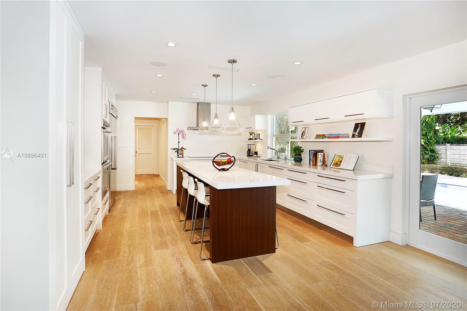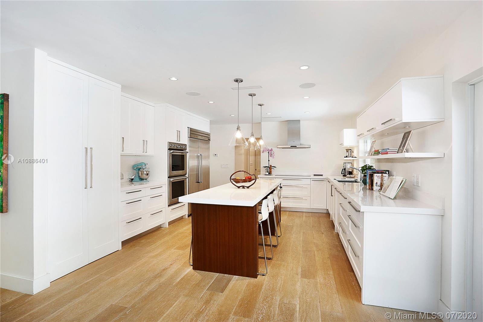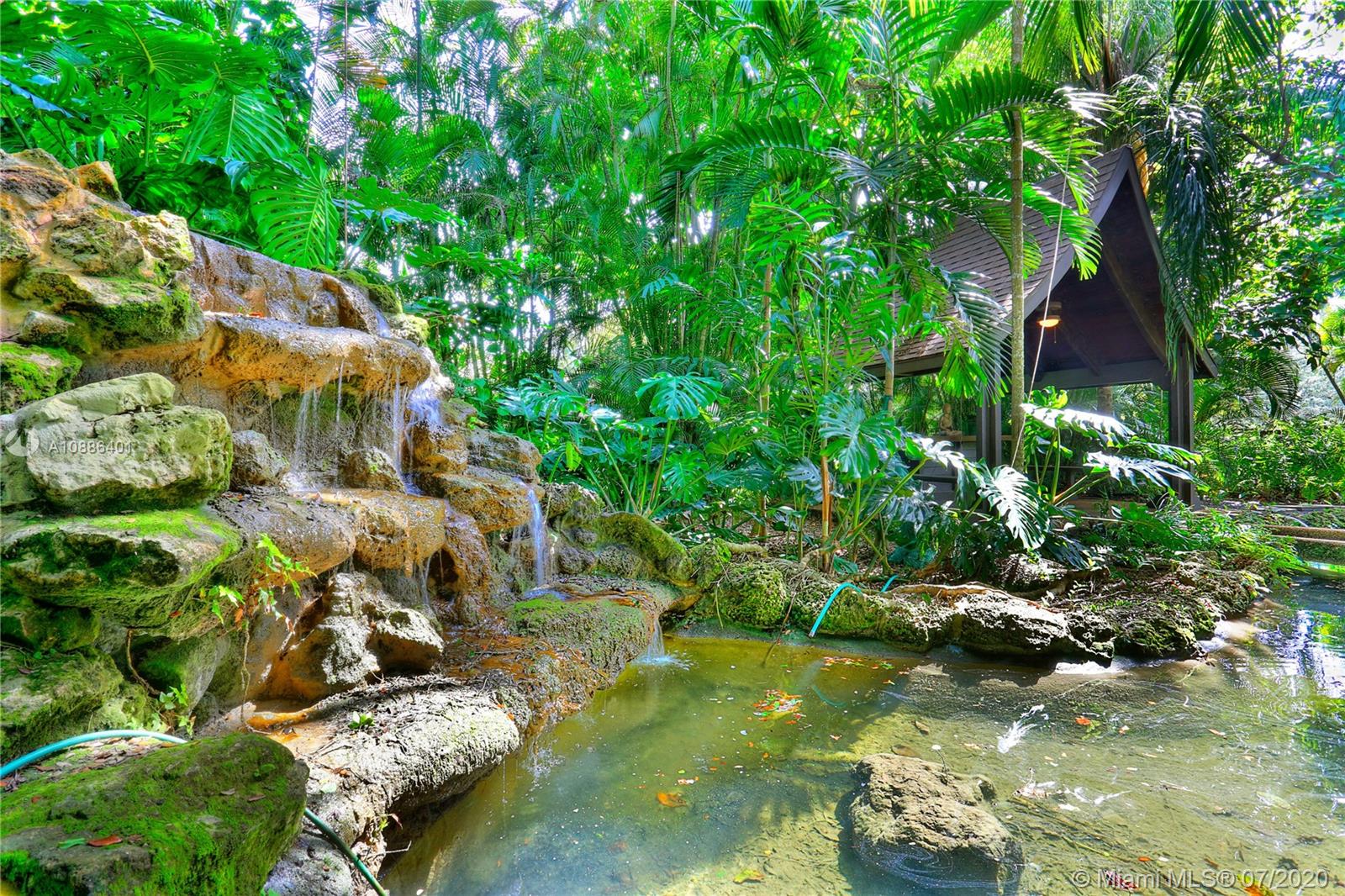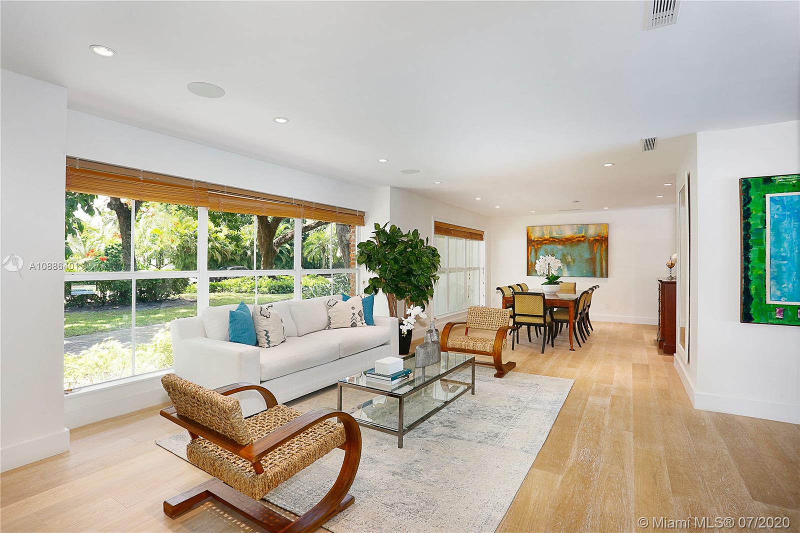 Absolutely beautiful & updated builder’s acre home on gorgeous S. Gables cul de sac! This 5-bd, 4-ba home features an open floor plan w/ large picture windows, lots of light, sophisticated modern finishes, & new roof. Offers a gorgeous living, dining & family room, porcelain tile floors & recessed lighting. The new modern kitchen sets the stage for this special property, anchored w/ a large island facing the pool, SS appliances, quartz countertops, & walk-in pantry. The master suite features lovely views & access to pool patio, oversized sitting area w/ access to serene garden, 2 walk-in closets, & master ba w/ open shower, Jacuzzi, double vanity, garden & privacy wall. True backyard oasis w/ Zen garden, koi pond, meditation space, covered terrace w/ grill. Large driveway & 2-car gar.