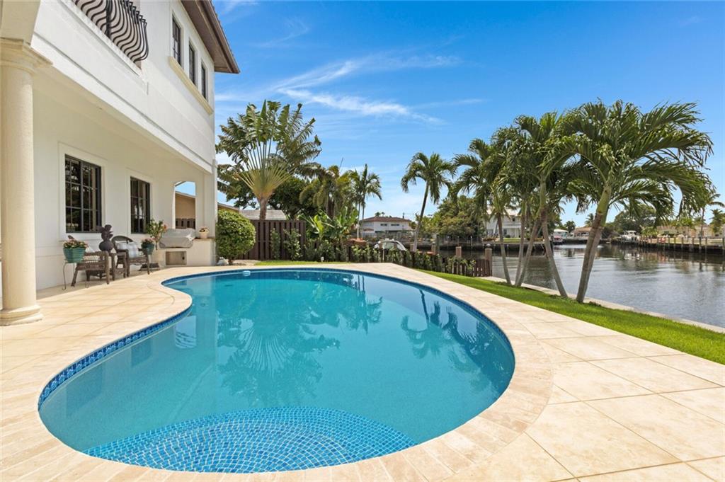 Stunning Two Story 4 Bedroom Waterfront Home in Pompano Beach! Breathtaking Water Views greet you as you walk in the door! Spacious Living Room with Volume Ceilings overlooking wide open Water view! Open floor plan & Marble Flooring. Impact windows and doors throughout. Gourmet Kitchen has granite countertops and large island, Miele built in appliances including warming drawer, steamer, gas convection oven, microwave & dishwasher. Large Family & Dining Room! Upstairs Master Bedroom has expansive views on one of the largest canals, & double balcony access, Master Bathroom has Jacuzzi Tub! Two spacious Guest Bedrooms Upstairs, and One Bedroom & Full Bathroom downstairs. Step outside to a tropical oasis with upgraded pool & perfect for boaters, 80ft of Waterfront! This home has everything!!