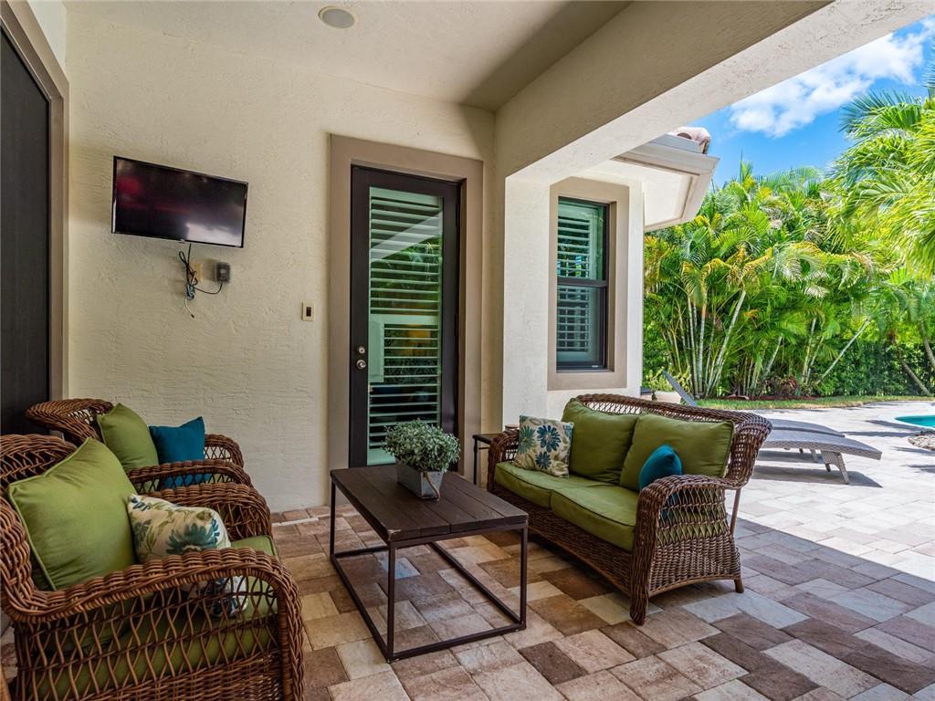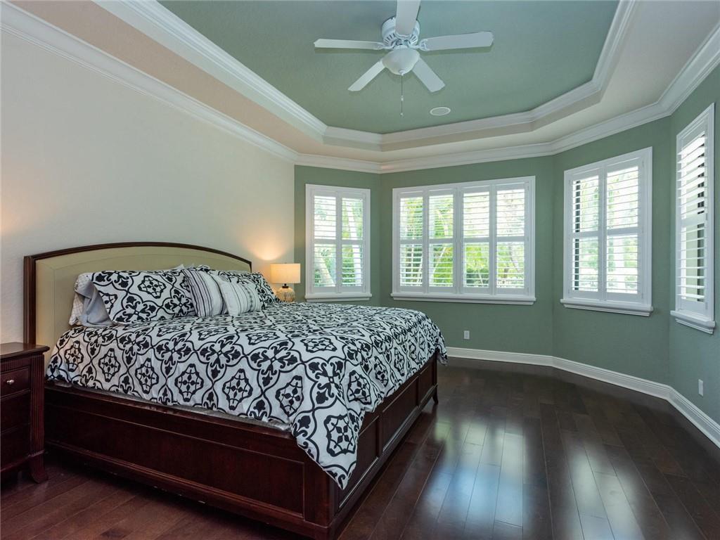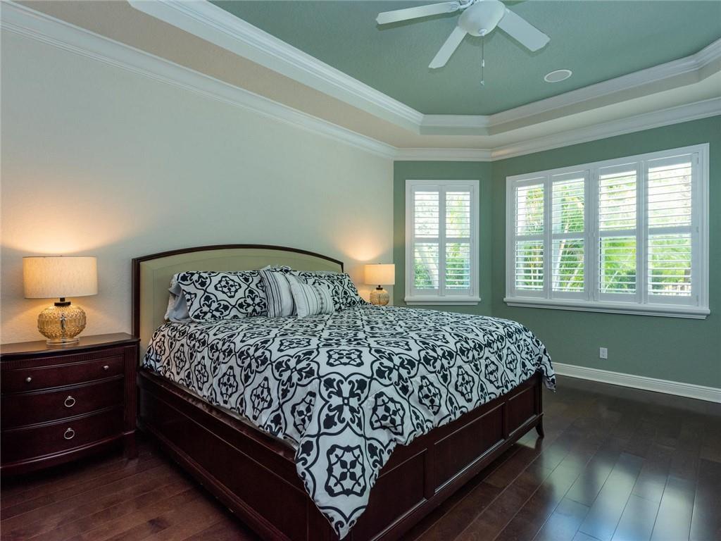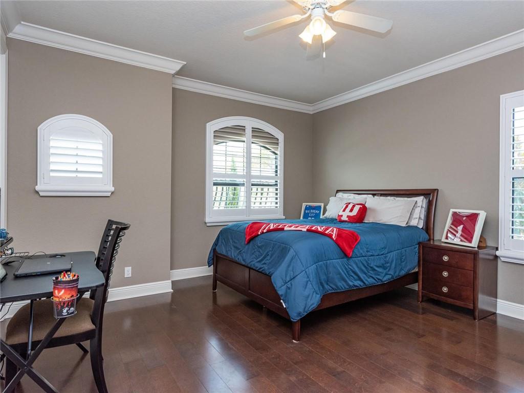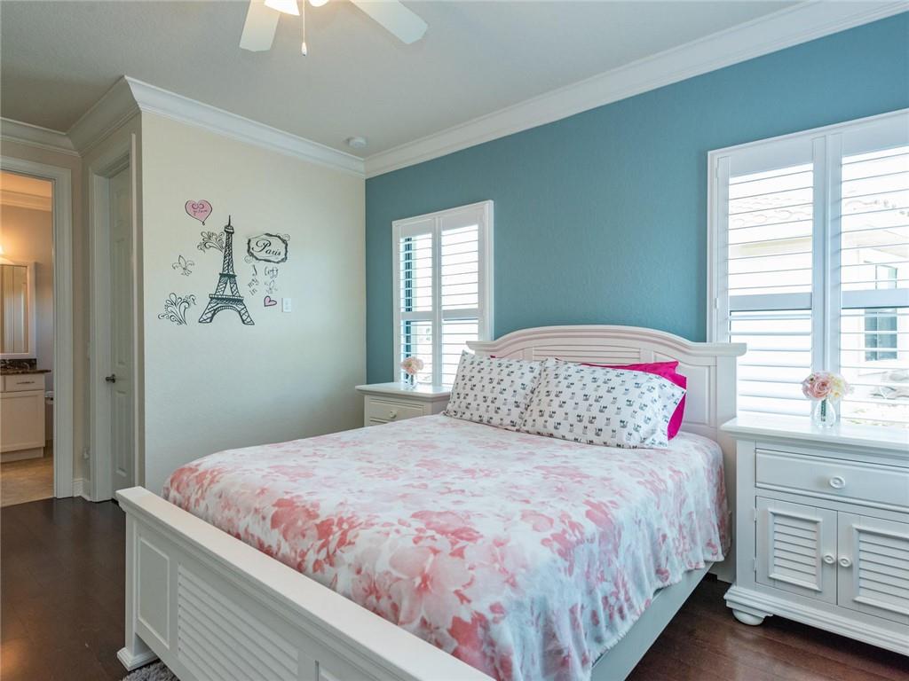 Model Perfect Savior model featuring 5 bedrooms, 4 bathrooms and an office. Stunning upgraded kitchen, w SS appliances, granite, wood cabinets, built in pantry. Wood floors and porcelain tiles throughout the home, crown moldings, elegant glass front doors, plantation shutters and beautifully appointed upgraded bathrooms. Surround sound inside and outside, Built-in custom unit and a wet bar in family room. The tropical private back yard features a saltwater free formed pool and a hot tub with separate heating system, beautiful landscaped. Security system with cameras throughout. This immaculate move in ready home is on a quiet double cul-de sac street.