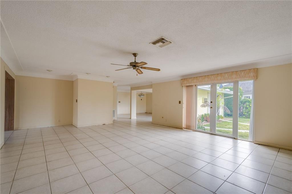 NEW PRICE! PRICED TO SELL! Welcome to the exclusive neighborhood of Coral Ridge Country Club. This very spacious 3 bedroom home with open floor plan is situated on a large corner lot. As you walk in the double front doors, your eye is drawn to the backyard through the french doors where there's plenty of room for a pool. The breakfast nook brings you into the kitchen featuring a generous granite counter top area and cabinets for storage.The spacious bedrooms have ample closet space, a split bedroom plan and are accessorized with multiple windows that bring natural light into this home. Additional features: accordion shutters, circular drive, over sized 2 car garage, mature landscaping and newer garage door. Home needs TLC, make IT your own with fresh updates and improvements.