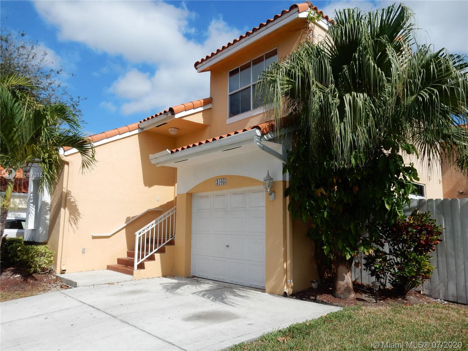 Beautiful 3 bedroom 3 full bath home in private Emerald Hills development of L'ETOILE- One bed room and full bath on first floor, kitchen with granite counter top, stainless steel appliances, tiles in first floor laminated on 2nd floor, huge closets in master bed and plenty of closet space throughout home, roof is original and garage needs repair***THIS PROPERTY IS ELIGIBLE FOR A RENOVATION STYLE LOAN*** community gym&pool-Low HOA fee, that includes basic cable & HBO,tot lot for kids to play -quiet and safe neighborhood-walking distance from house of worship-close to school major highway& beach