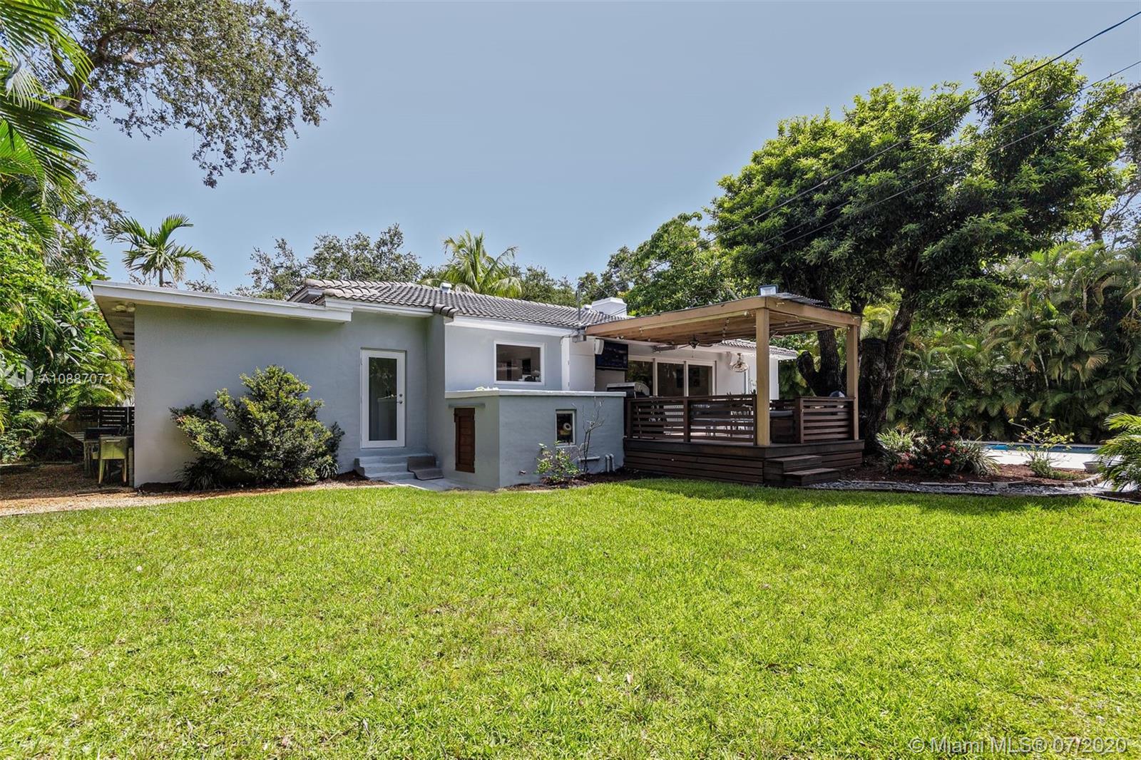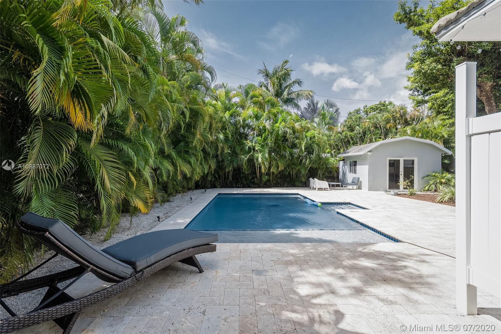 2198 sq ft of indoor/outdoor living at it's best! Welcome to this 4 bed, 3 bath + detached studio home located on a cul-de-sac in Miami Shores. Situated on a beautifully landscaped oversized lot, this home has vaulted ceilings and an open floor plan. Enjoy the sunny kitchen updated with granite countertops and stainless steel appliances. The living area opens to a covered deck overlooking the pool with outdoor shower-perfect for pool parties! 4 full bedrooms, 3 generously-sized bathrooms and spacious closets allow plenty of room for family and friends, and the detached studio w/AC is the perfect space for a home office, pool cabana or gym. Updated electric/plumbing, 2-zone AC system and impact windows throughout. Located near desirable schools and all the amenities of the Upper East Side.