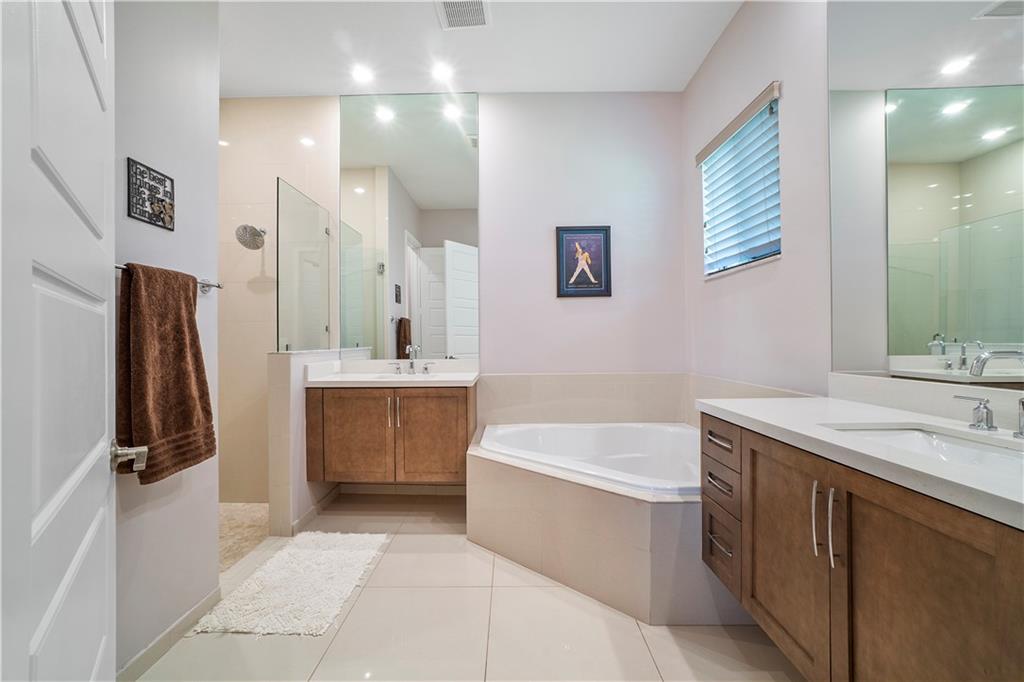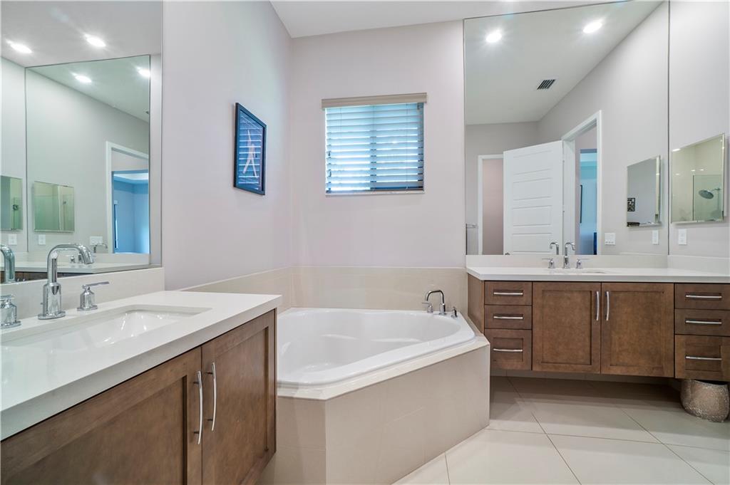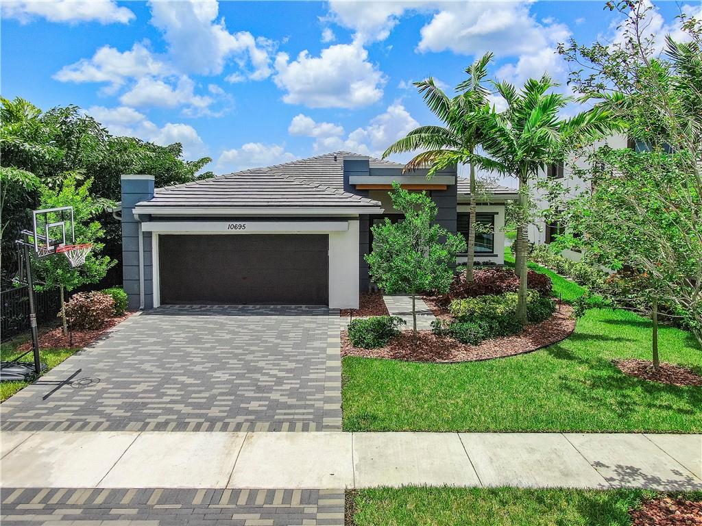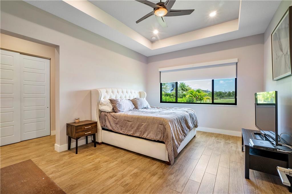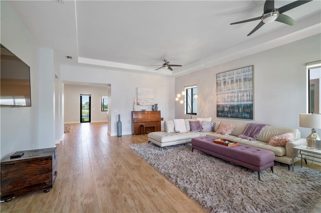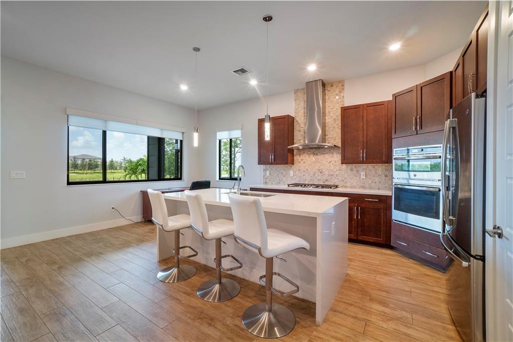 Move right into this newly constructed 3 bedrooms, 2 1/2 bathrooms home in Cascata. Home boasts double door entry to open floor plan. Engineered wood floors throughout. Gorgeous kitchen with quartz counter tops, center island, 5 burner gas stove, SS appliances and soft closed wood cabinets and drawers. Master bedroom has 2 closets, one large walk in and second for additional storage. Master bath has separate tub and shower, raised vanities and double sinks. Home is equipped with surround sound, ring door bell and has smart house feature. Fenced yard with room for a pool, beautiful lake view, screened lanai and all impact doors and windows. Cascata Clubhouse will be completed shortly. Mira Lago and Cascata residents have full access to both clubhouses.