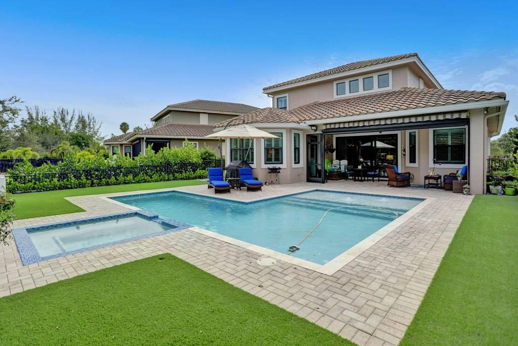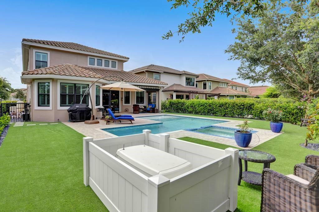 Parkland Golf and Country Club Saviero model featuring 5 full bedrooms and 4 full baths plus library/office. Interior features include open floor plan with large cathedral ceilings, marble floors, spacious kitchen with wood cabinets, granite countertops, stainless steel appliances, new refrigerator. Lots of natural light, window treatments, plantation shutters, built in entertainment center and bar. Master suite with two walk in closets, built ins. Exterior features include upgraded pool with spa and pentair system, full house generator, astro turf lawn, lush private landscaping, fenced in yard, electric patio screen, electric awning, exterior lighting. Newly painted, impact windows and sliders. Resort style amenities, A rated school system. Seller Financing available.