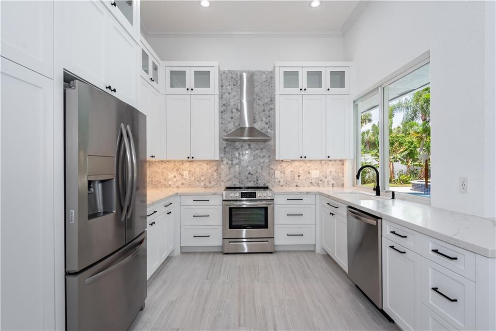 Spectacular, renovated home with pool and indoor basketball court in sought after Estancia! This spacious home features two master bedrooms, two additional bedrooms, a huge den and a bonus room off of one of the masters that would make a great office, nursery or exercise room. The fully remodeled kitchen features brand new stainless steel appliances, quartz counters & island. Volume ceilings, neutral paint, recessed lighting & porcelain wood plank tile flooring throughout the home. Enjoy the privacy of your own pool and spa in the spacious fenced yard or play in the air conditioned, indoor basketball court. Indoor laundry room with sink. New roof and impact glass. Excellent location near shopping, dining, golf courses and entertainment. Located in an "A" rated school zone. A true must see!