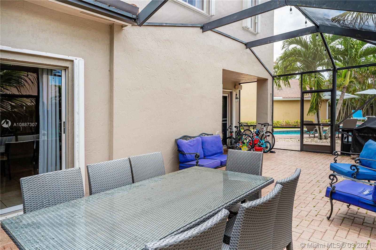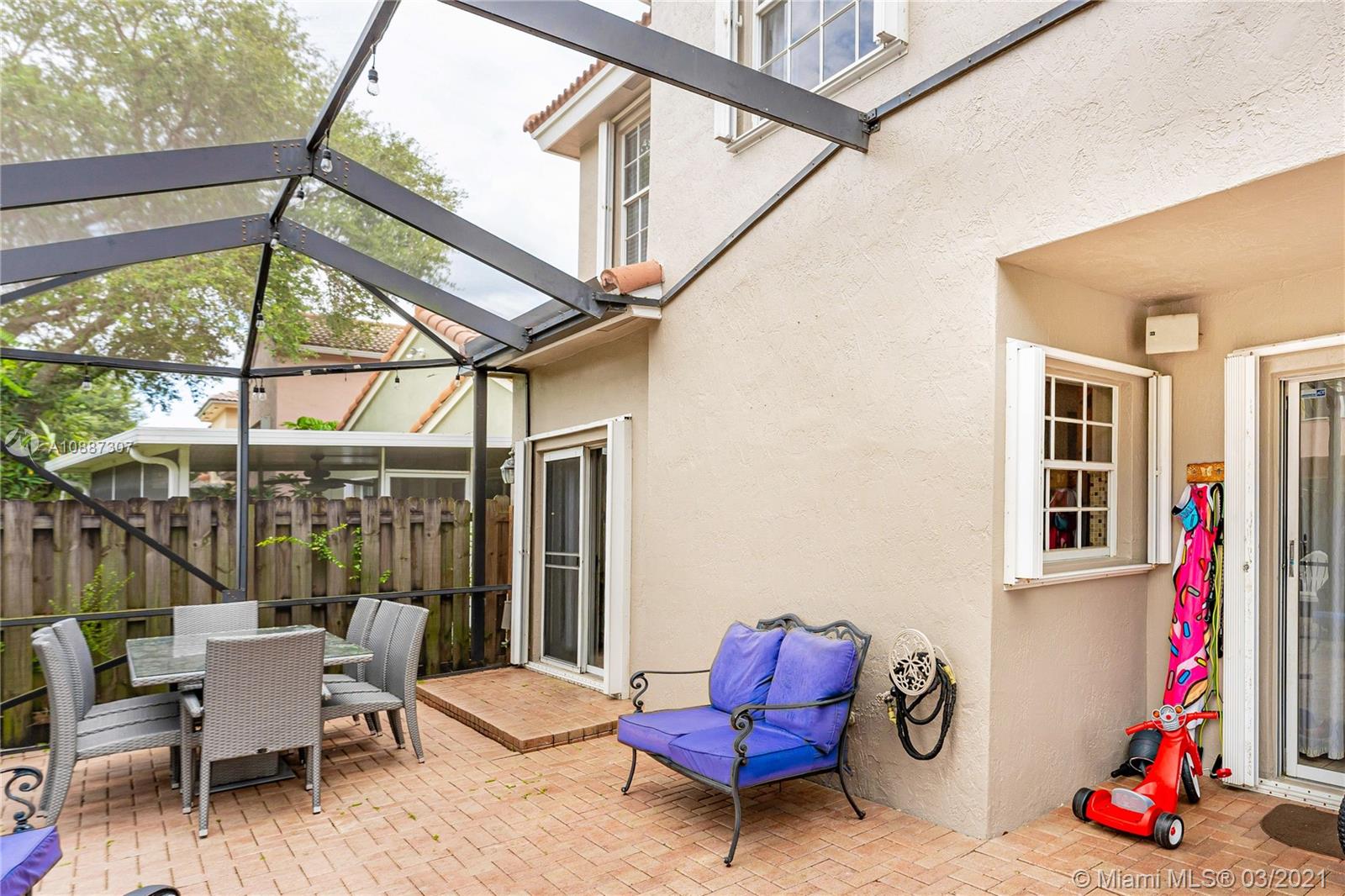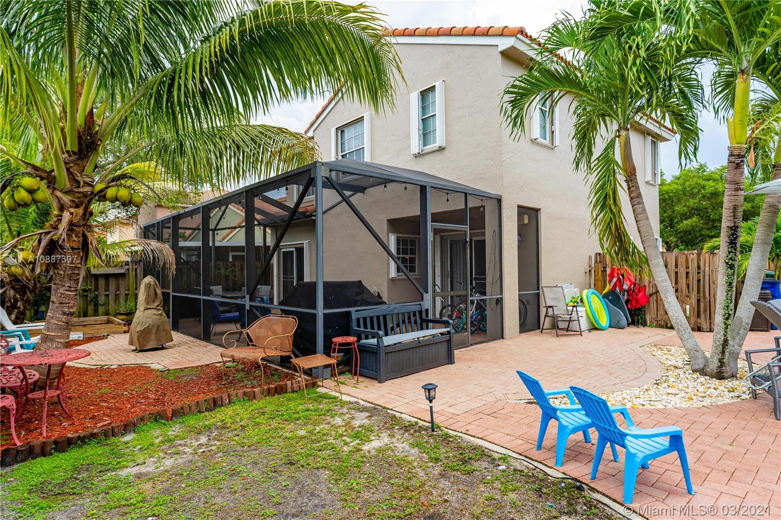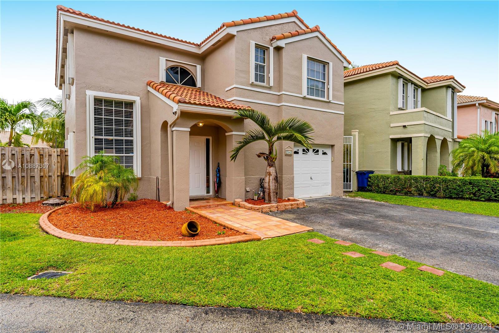 Beautiful two-story home in highly sought after Trellises at Embassy Lakes. 3 bedrooms and 2 bathrooms upstairs, one half-bath downstairs. Updated kitchen with granite countertops, large cooking island and stainless steel appliances. Remodeled master and half bathrooms, neutral floor tiles throughout and laminate wood flooring on second floor. Oversized corner lot has ample space for relaxing and entertaining with a completely fenced-in yard, bean-shaped pool with waterfalls and a screened enclosure. Accordion hurricane shutters, roof tiles four years old. Exterior of the home repainted last year. Amenities include clubhouse with Olympic pool, gym, tennis, playgrounds and bike/run paths. Best A rated schools around, just a short walk to Embassy Creek Elementary, shops and restaurants.