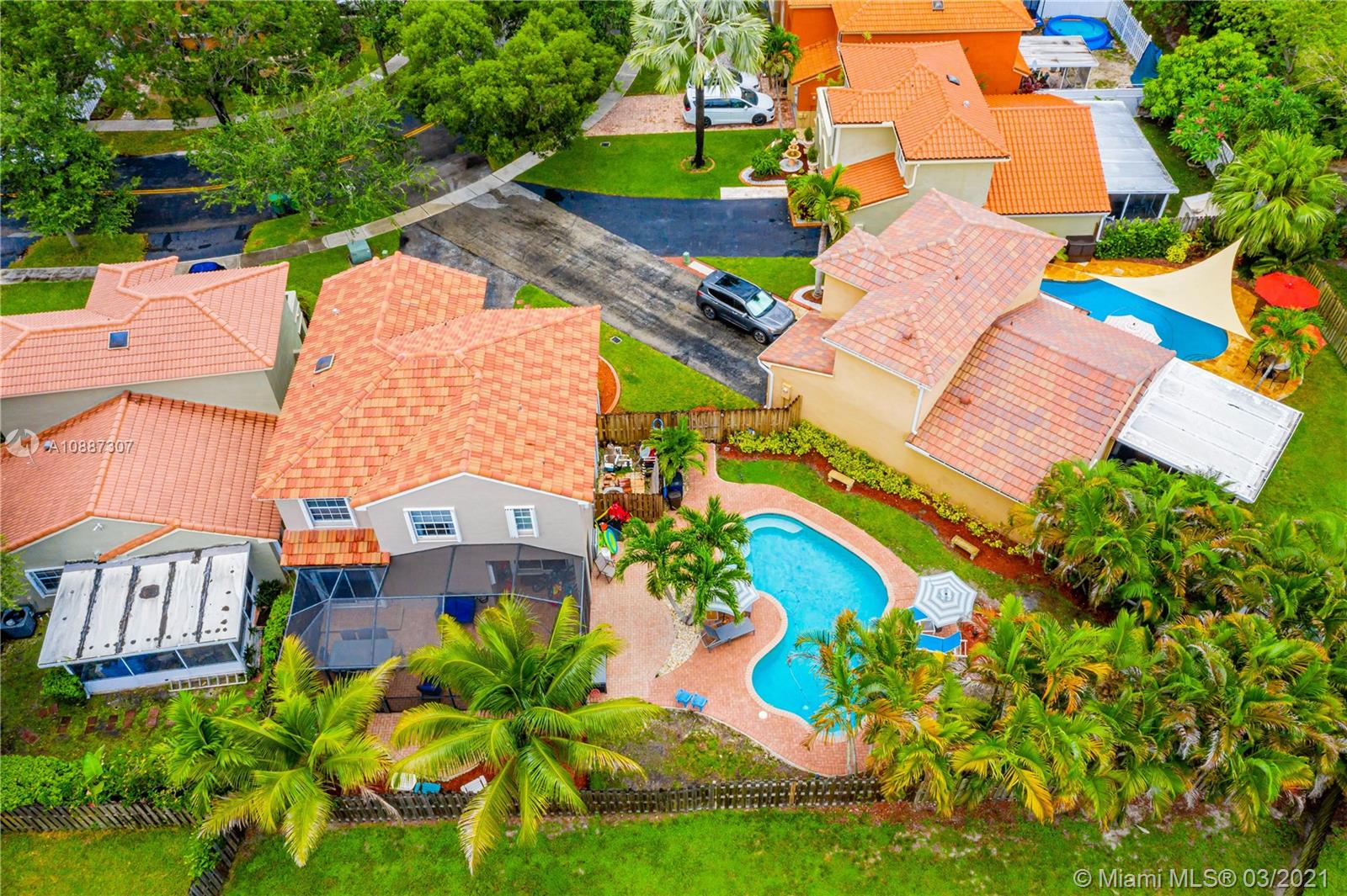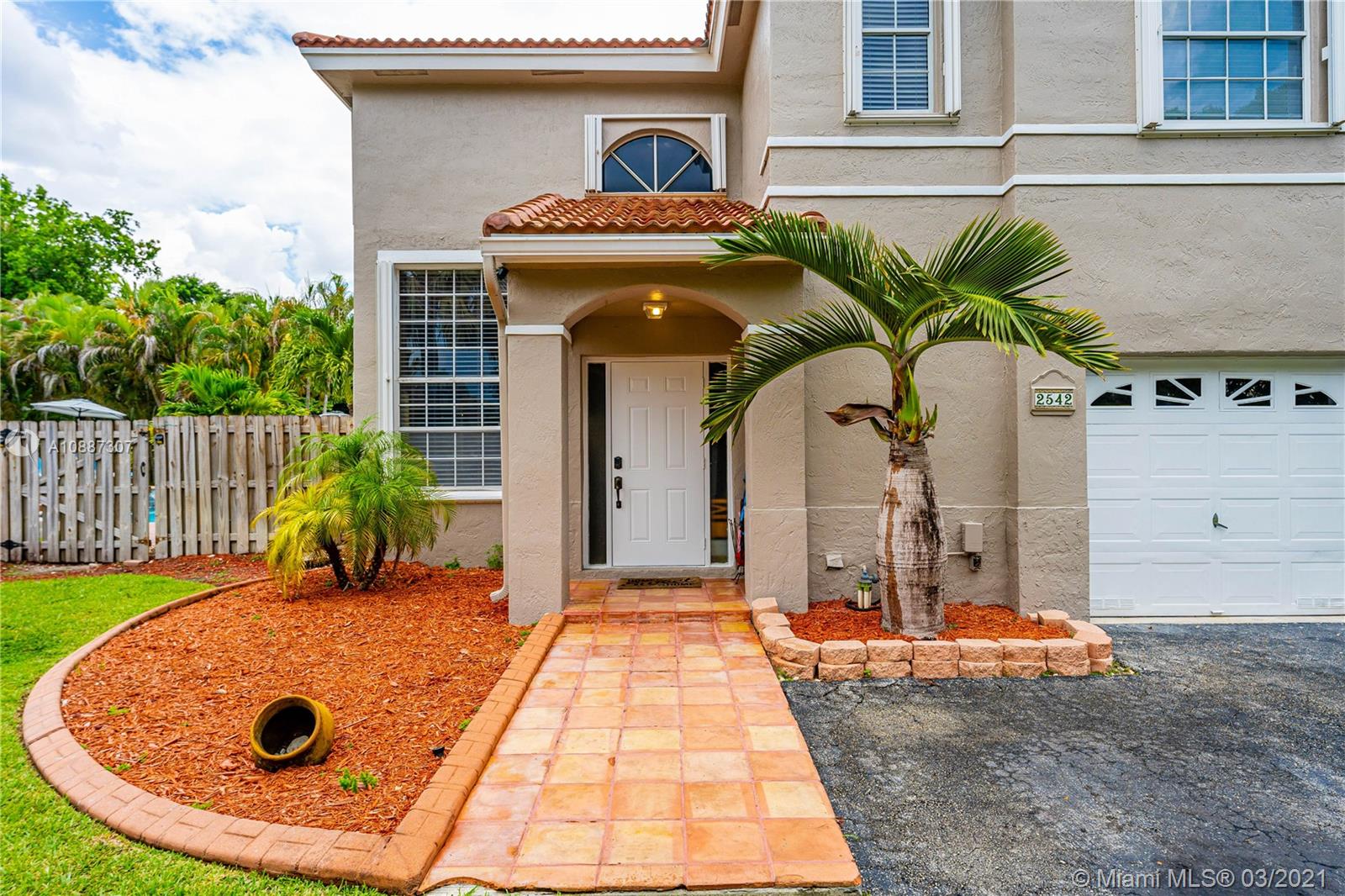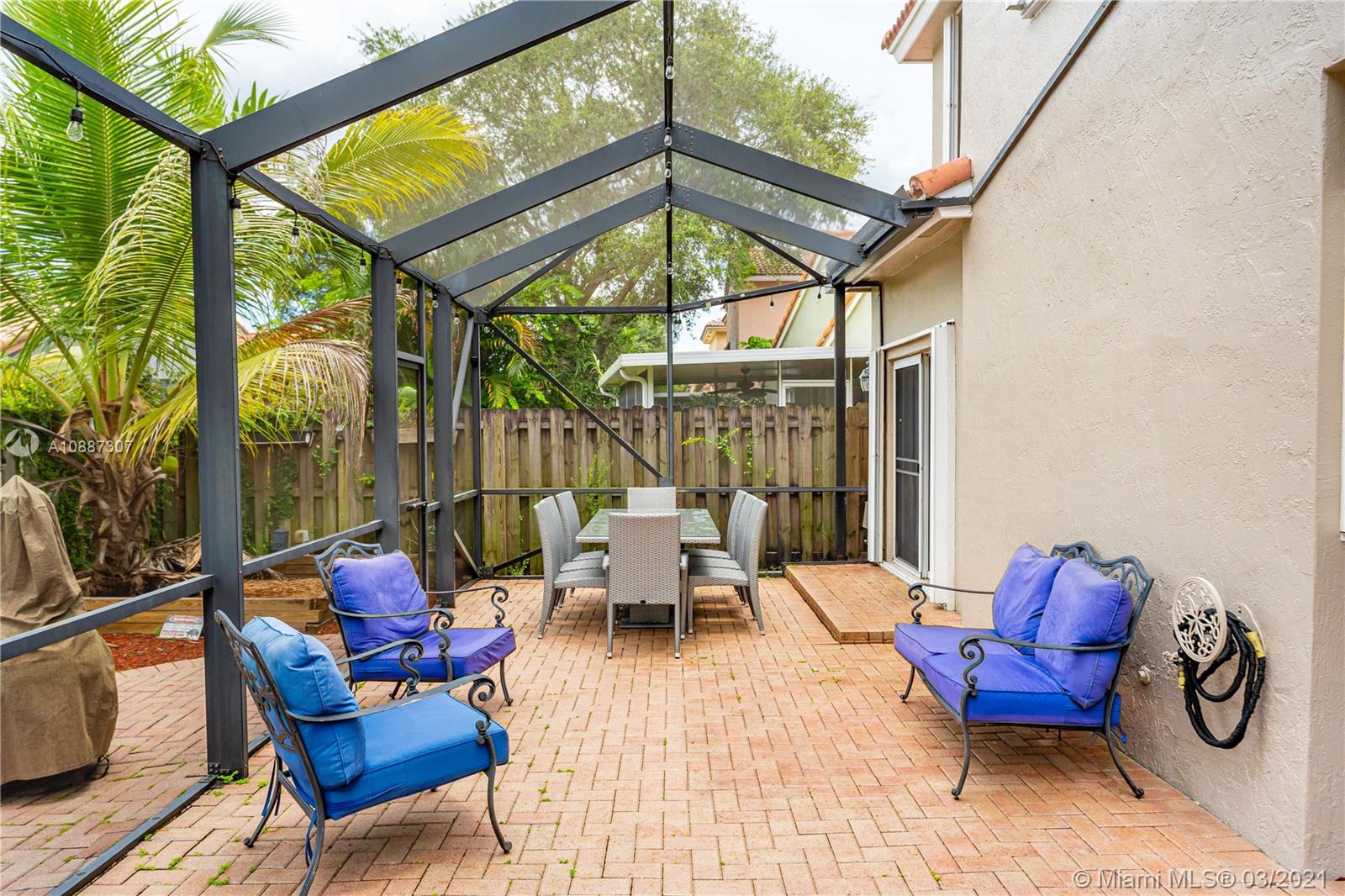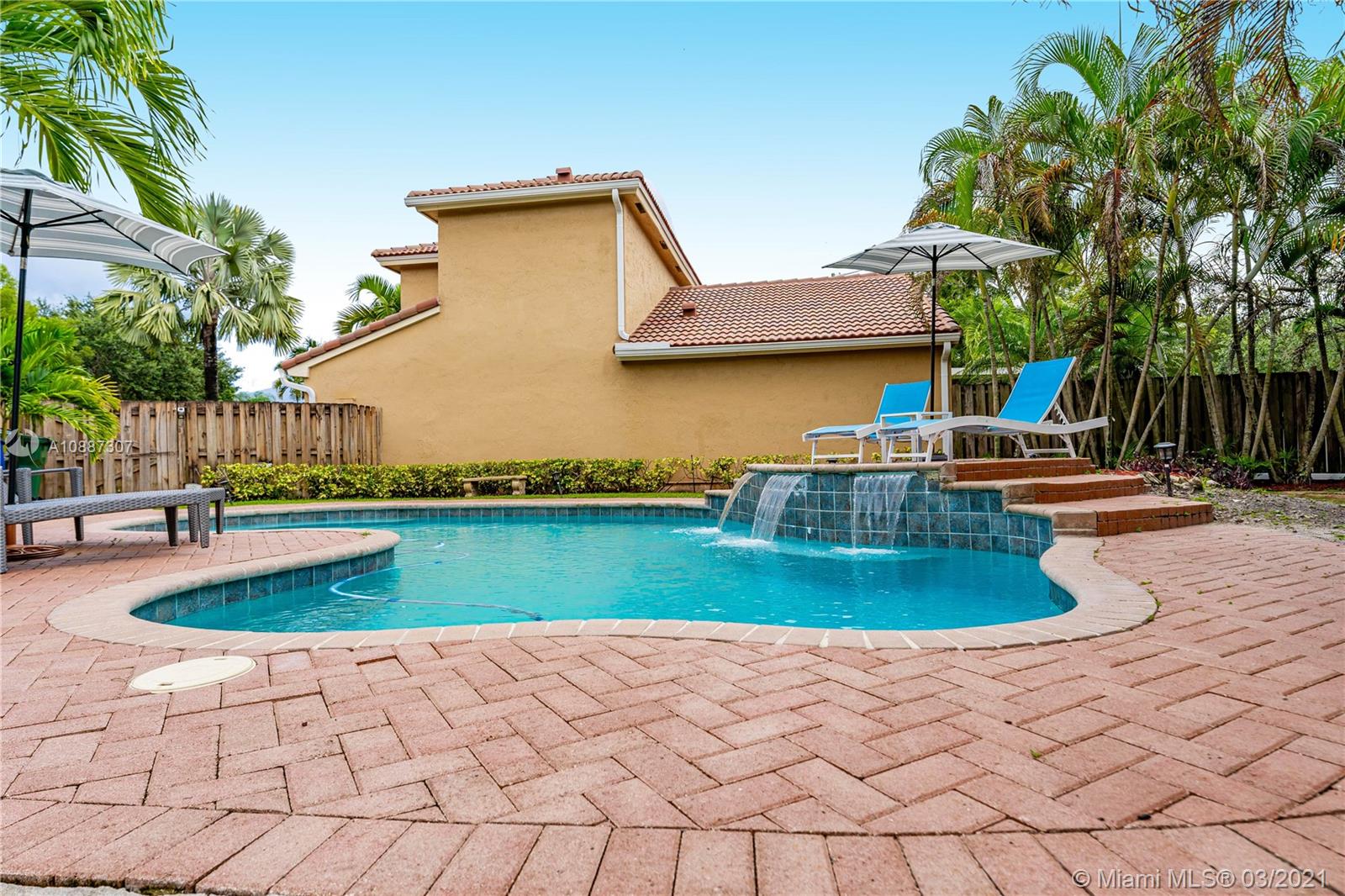 Beautiful two-story home in highly sought after Trellises at Embassy Lakes. 3 bedrooms and 2 bathrooms upstairs, one half-bath downstairs. Updated kitchen with granite countertops, large cooking island and stainless steel appliances. Remodeled master and half bathrooms, neutral floor tiles throughout and laminate wood flooring on second floor. Oversized corner lot has ample space for relaxing and entertaining with a completely fenced-in yard, bean-shaped pool with waterfalls and a screened enclosure. Accordion hurricane shutters, roof tiles four years old. Exterior of the home repainted last year. Amenities include clubhouse with Olympic pool, gym, tennis, playgrounds and bike/run paths. Best A rated schools around, just a short walk to Embassy Creek Elementary, shops and restaurants.