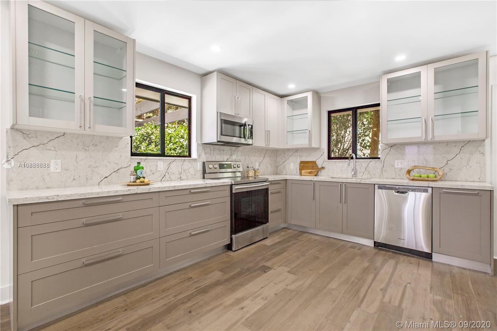 Remarkable single-family house in of Coral Gables best neighborhoods. Fully renovated and professionally designed. New Kitchen, baths, flooring, PVC Plumbing, AC, and updated electrical. Impact windows and doors. Inviting courtyard patio with wet bar. A must-see.