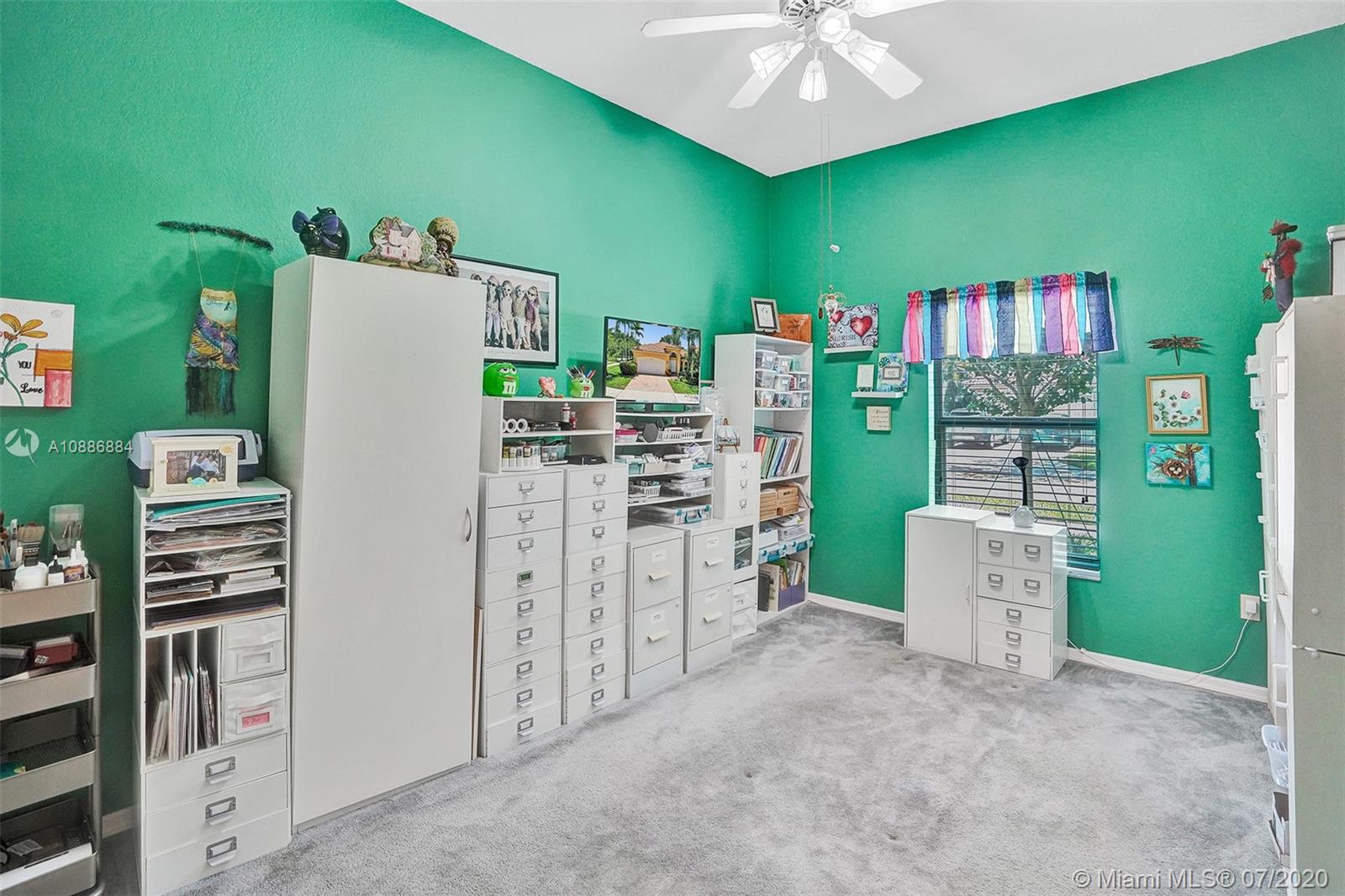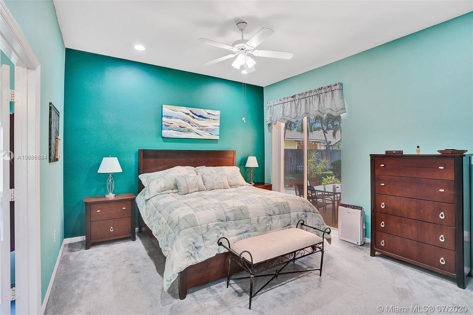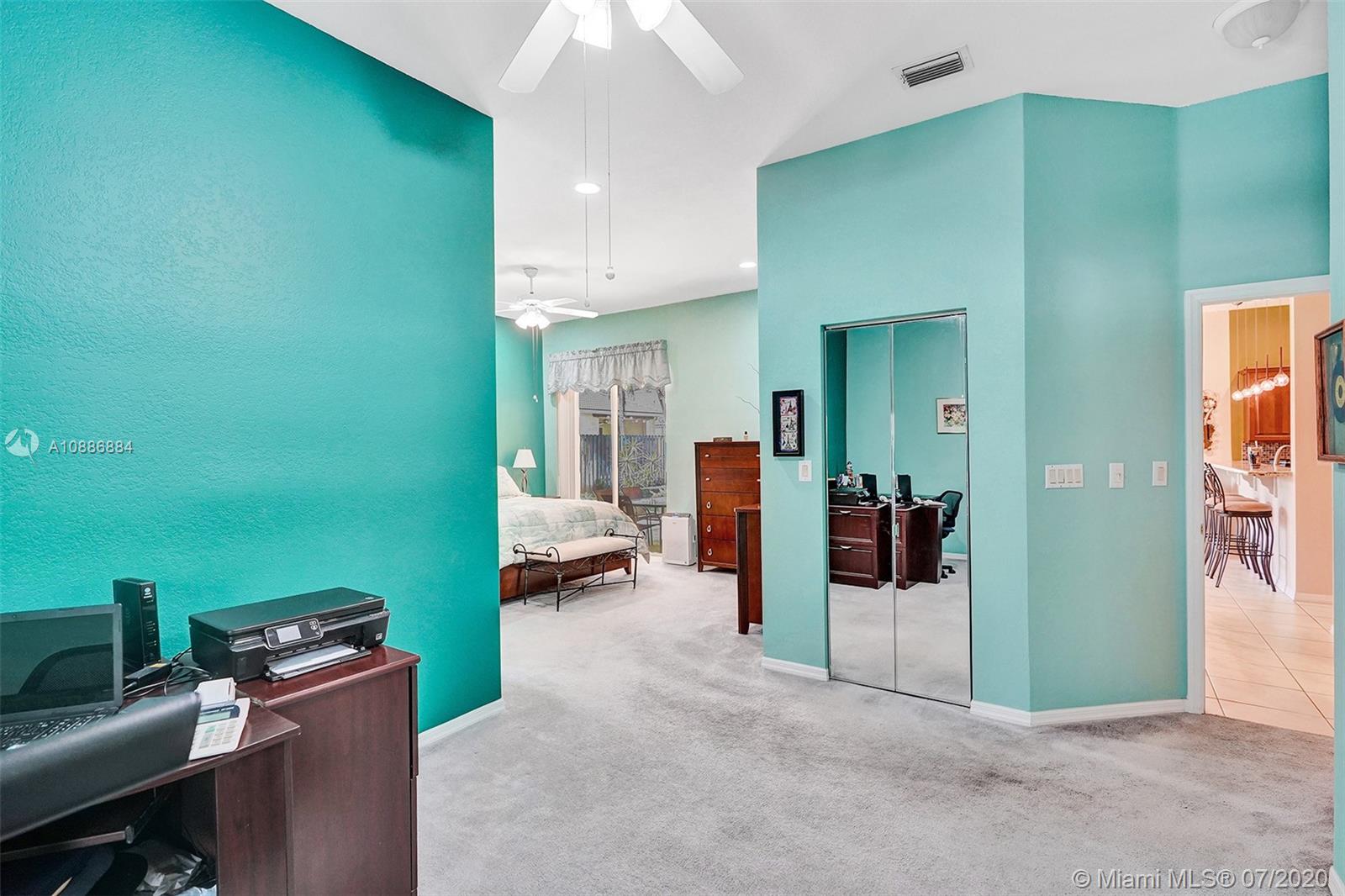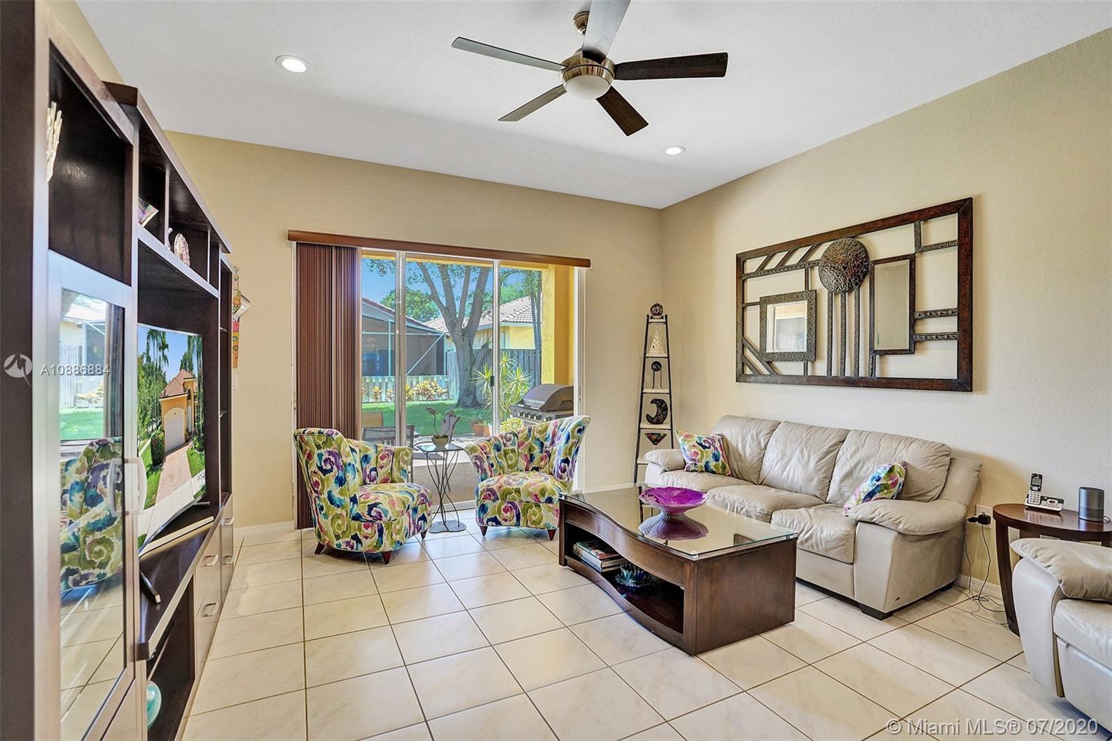 Builder modified 3 Br + Den; ideal for nursery, office or exercise. Meticulously kept home on fantastic corner lot with option to fence. Unique & spacious floor plan boasting 10 ft ceilings, updated interior shows pride of ownership featuring a recent custom-built, maple wood & cherry finish kitchen cabinetry with deep storage, soft close & pull-out drawers, beautiful stone counters & stainless appliances. New bathrooms, quality wood cabinetry, stone counters, hardware & tile work. Additional features include; Led lights in the living area, blown glass light pendants, blinds, storm panels, impact garage & front door, 1 year old exterior paint. Best amenities; pool, gym, 24/7 gated access & security. Maintenance includes lawn irrigation & cutting, cable TV+ Internet @ 1 GB speed