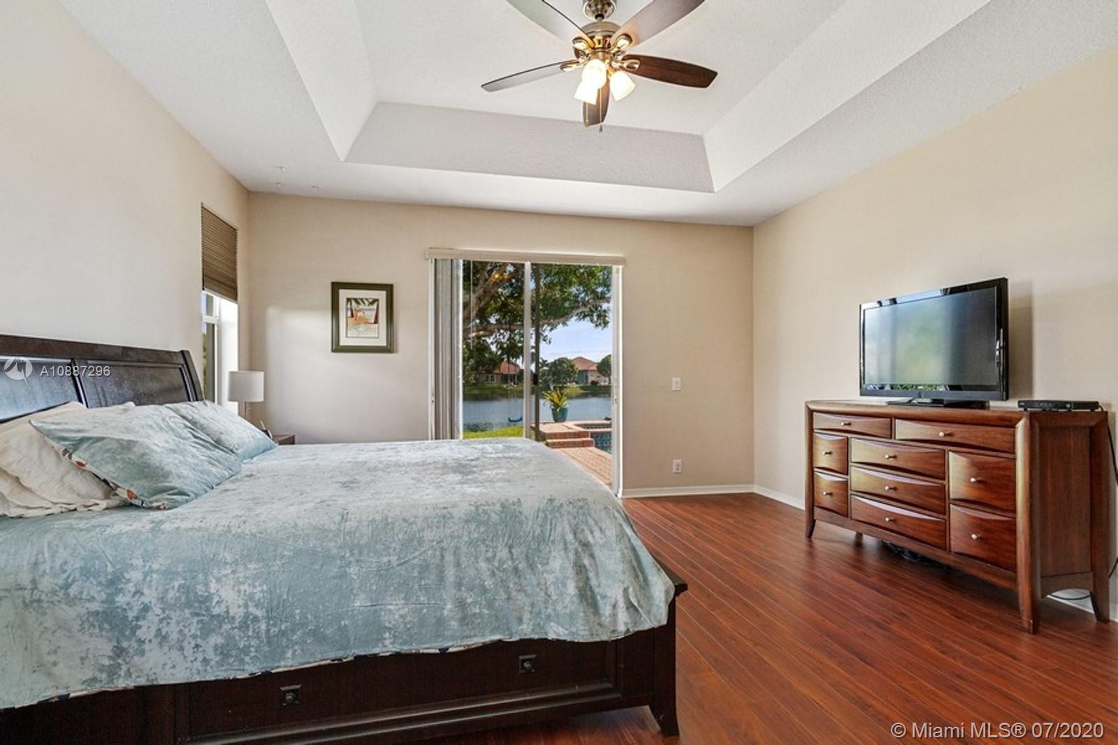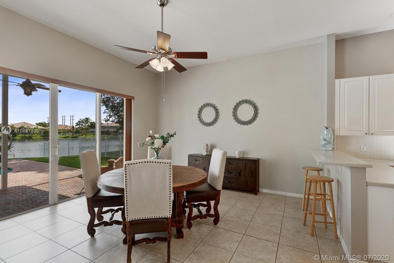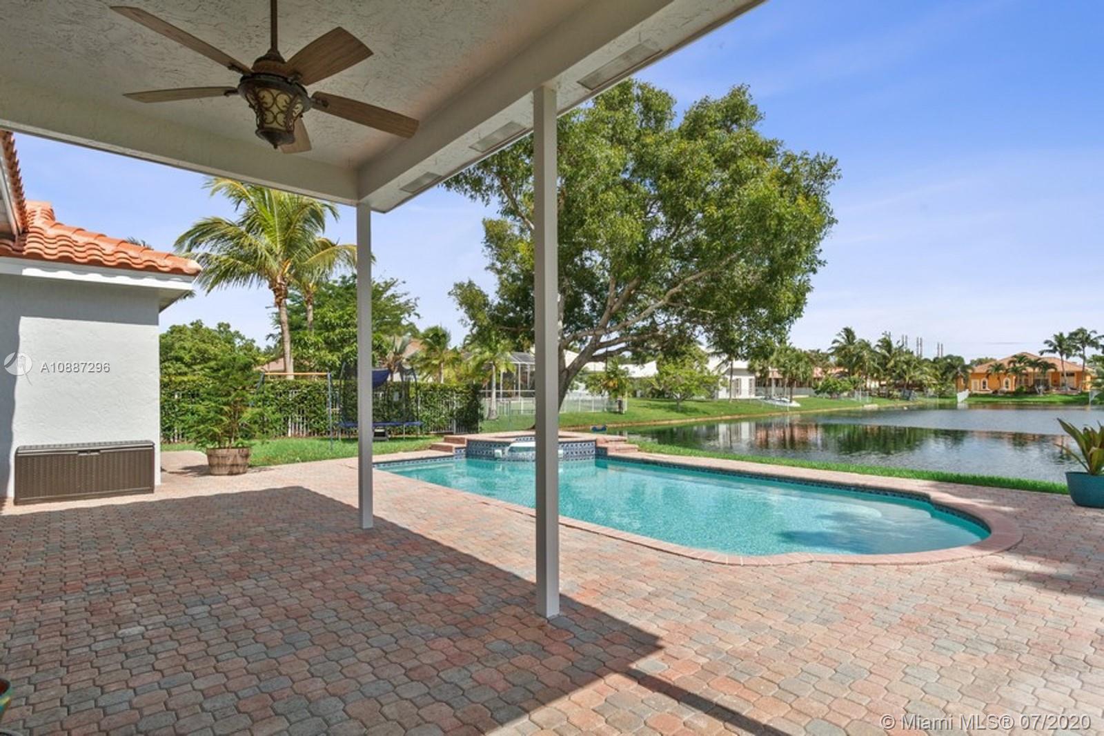 Looking for a prime located single home with pool, lakefront views,& priced to sell? Say no more, this wonderful one story featuring a 4 bedroom 3 bath house on an oversized lakefront lot, features a stunning backyard with pool in which to enjoy morning sunrises, gatherings, and tranquil evenings. Brand New Roof! This home has an expansive triple split floor plan, ceramic tile and new faux wood flooring throughout. NO Carpet! The large kitchen provides plenty of storage with SS appliances, kitchen island, space adjacent to dining room,living room, are perfect for entertaining, & provide a clear view of the lake. With a low monthly HOA,amenities include manned gate, basic cable, alarm, playground and tennis courts! Don't miss the chance to make this gorgeous house, your home!