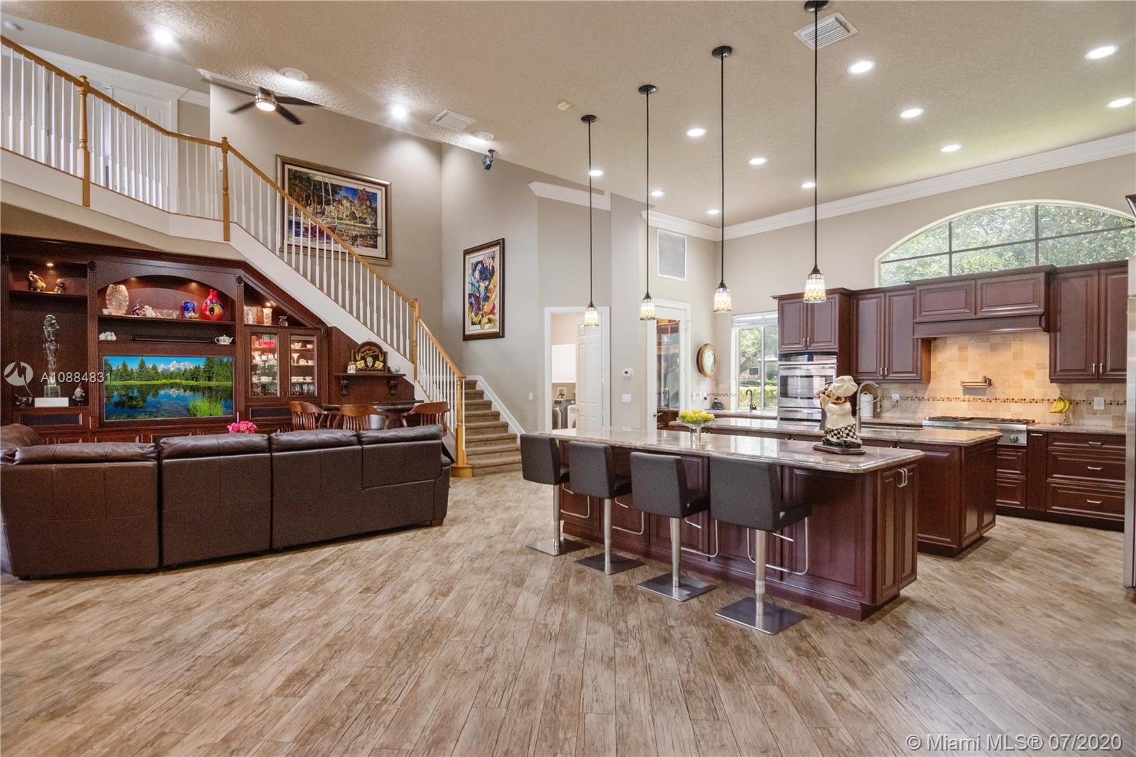 Take the Video Virtual Tour! Live large in Hollywood Oaks on over 1/2 acre in this expansive Mediterranean Villa. Enjoy unsurpassed privacy and serenity. An enclosed tropical courtyard features a pool with panoramic lakeside vistas. The adjacent Guest House has 1 bedroom and 1 bath. The Main House contains 4 bedrooms and 3.5 baths with a recently remodeled gourmet kitchen and culinary-grade appliances, gas range and twin ovens. All-stainless steel island dual-sink, separate countertop bar sink and dishwasher. The formal DR, sunny breakfast alcove and ample bar seating are great for any occasion. MBR suite offers direct courtyard access. Amenities: Gas fireplace, Tray ceilings, Den wall unit with built-in media hub, Multi-room sound system, Bar, Enclosed dog run. Houses of worship nearby.