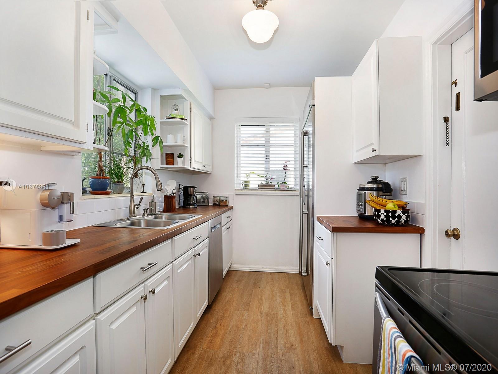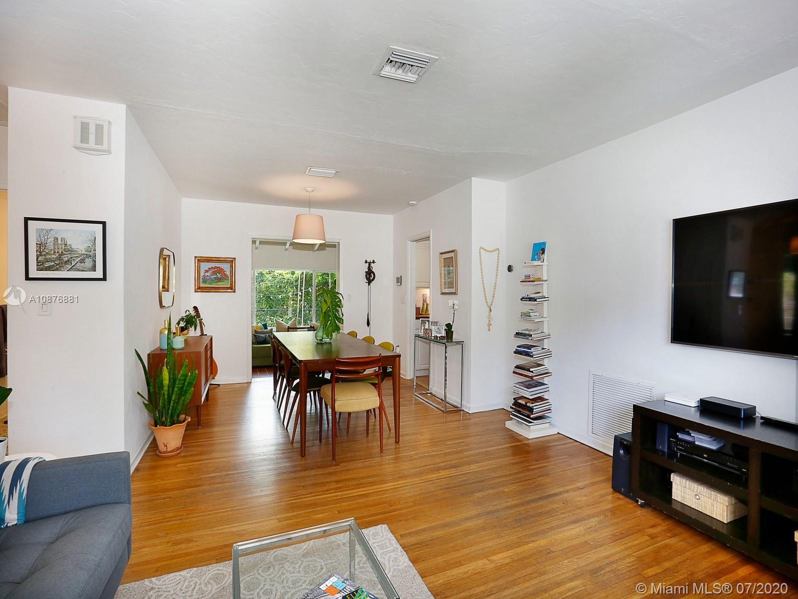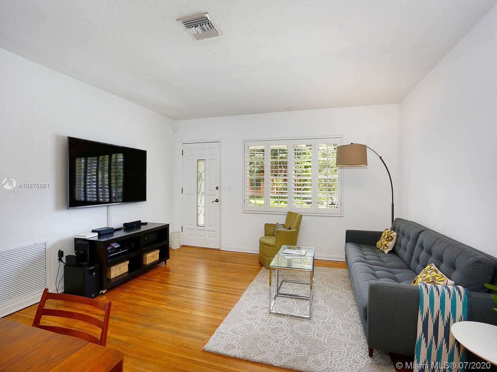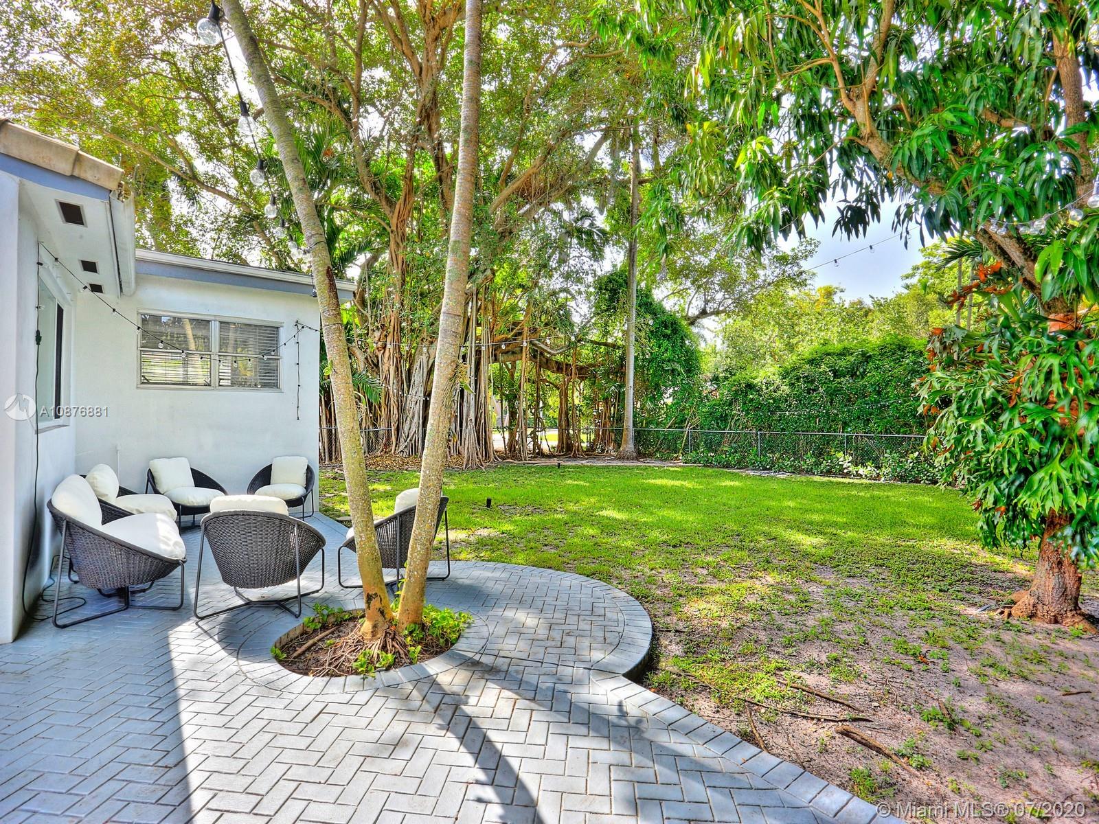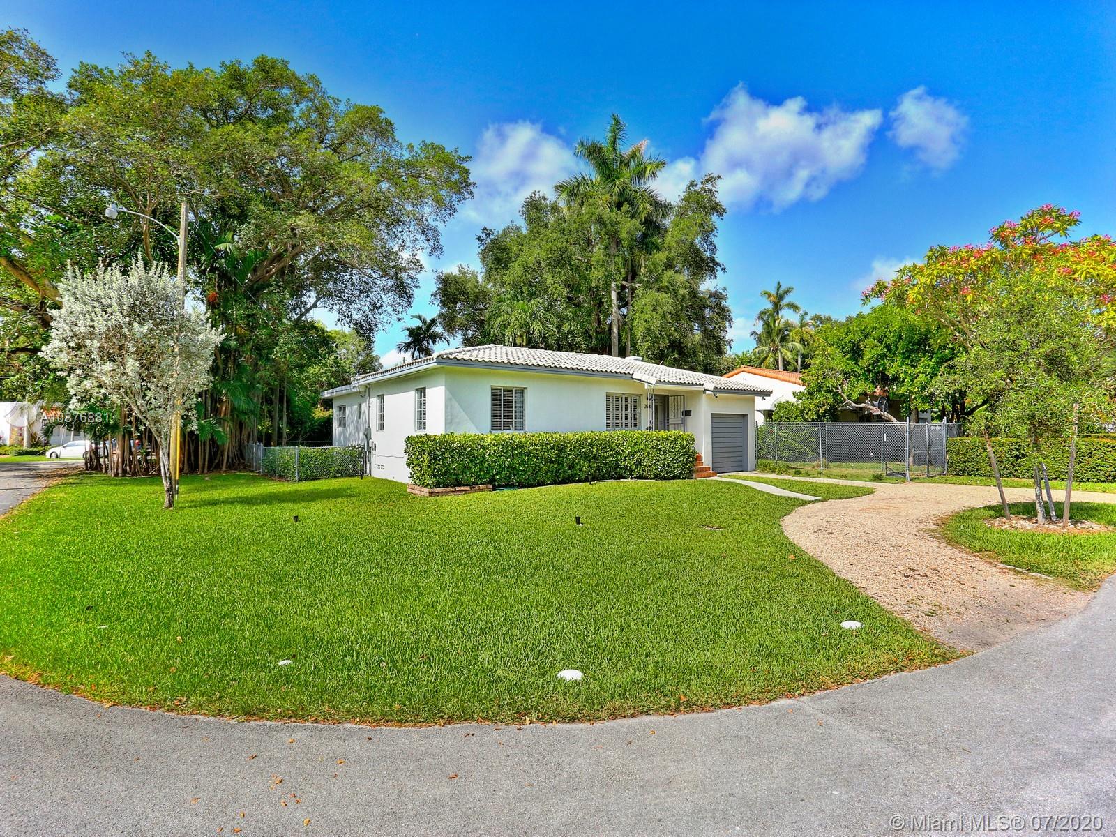 Located in the coveted North Grove, this bright and airy 3 bed, 2 bath home sits comfortably on a large, private corner lot of 8,606 sf. It features original oak floors and millwork throughout. The recently updated kitchen brings modern convenience to this mid-century charmer with new Jenn-Air, Bosch and LG stainless steel appliances. The family room, dining, kitchen, and formal living are all integrated creating a fantastic entertaining area that leads out to the expansive and securely fenced back yard and entertaining patio. Additional features include garage, new high efficiency HVAC system, Nest® thermostat, Ring® doorbell & LED exterior lights. Fully permitted plans for an addition are available for additional cost. Only minutes to the bay, parks, shops and schools of Coconut Grove.